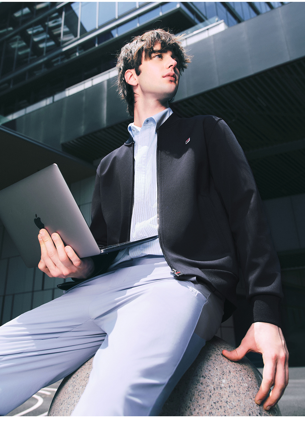 Fila Official Men's Knitted Long Sleeve Jacket 25 Winter New Business Casual Simple Executive Fleece Top