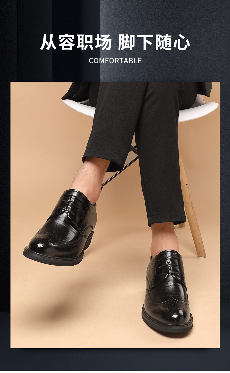 Men's Height-Increasing Leather Shoes 8cm Brogue Genuine Leather Derby Shoes Brown Business Formal Wedding Groom Height-Increasing Men's Shoes