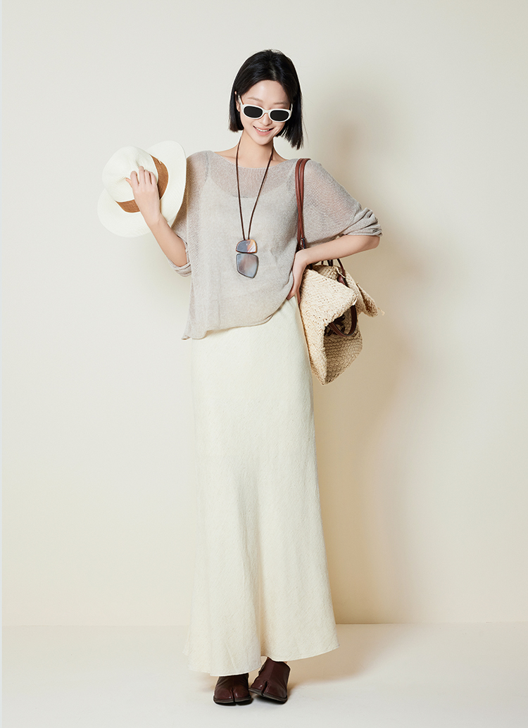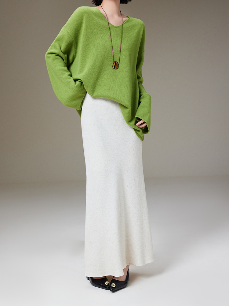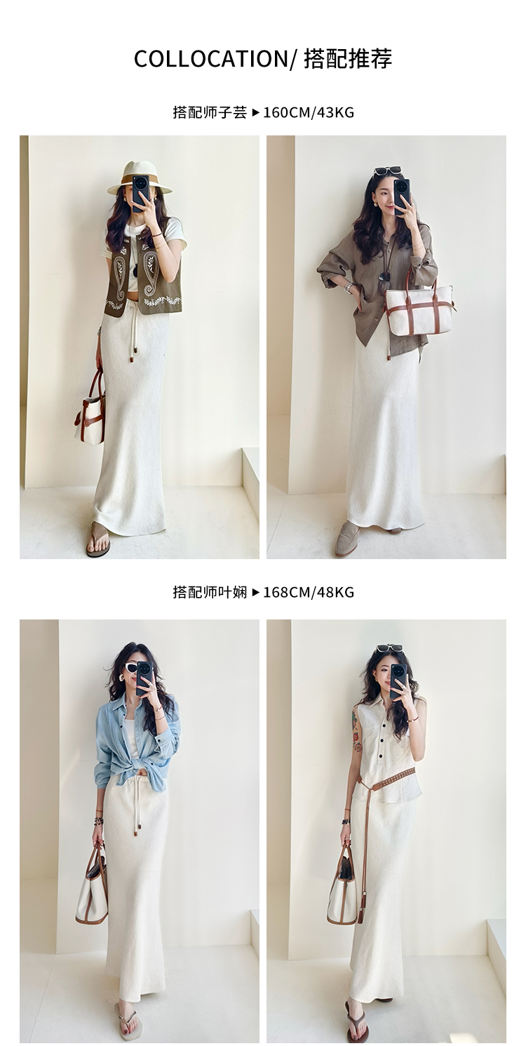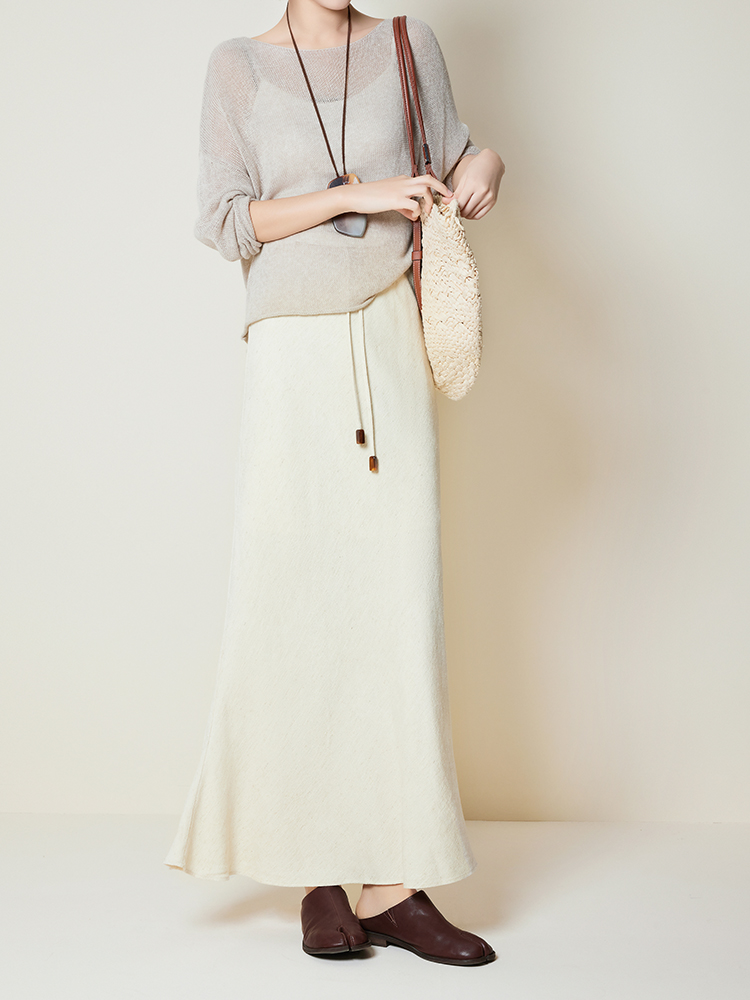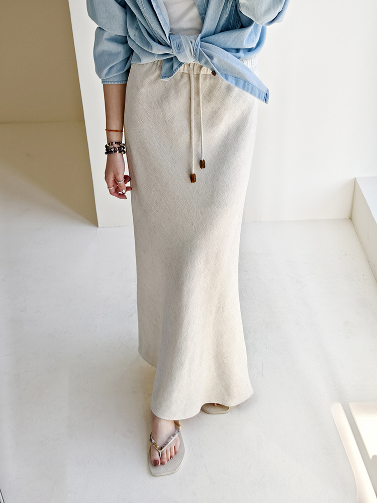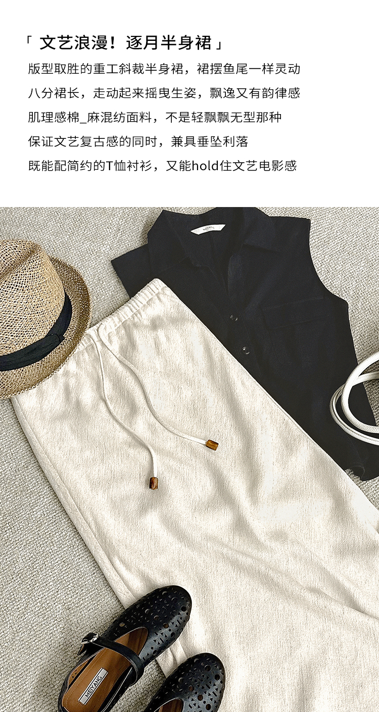 Meiyang【In Stock】Moonlight Skirt Cotton-Linen Blend_Heavy Craft Diagonal Cut Elastic Waist Little Mermaid Tail