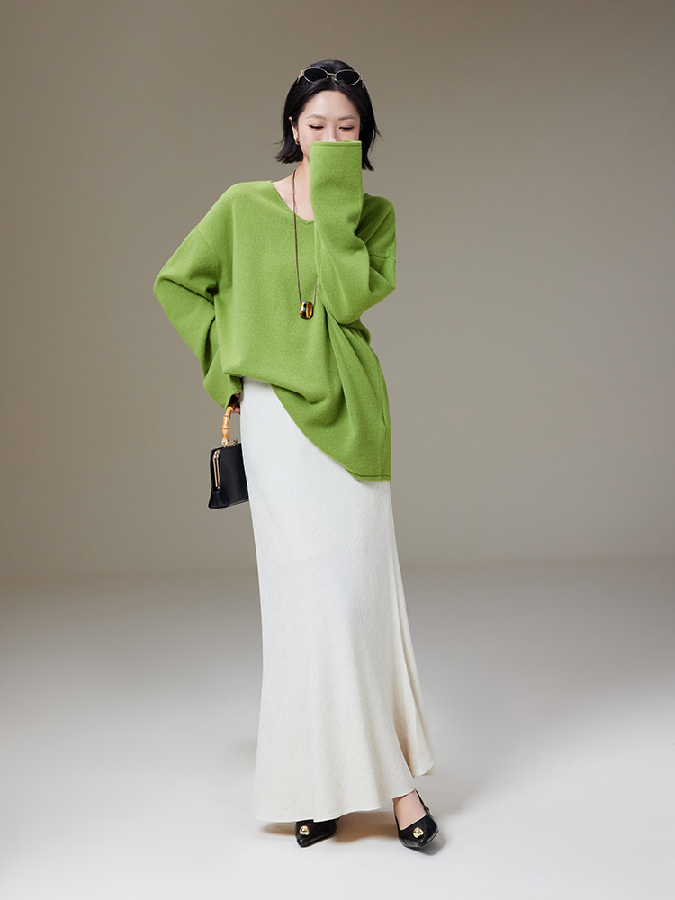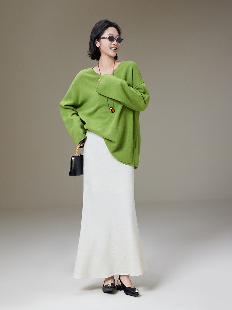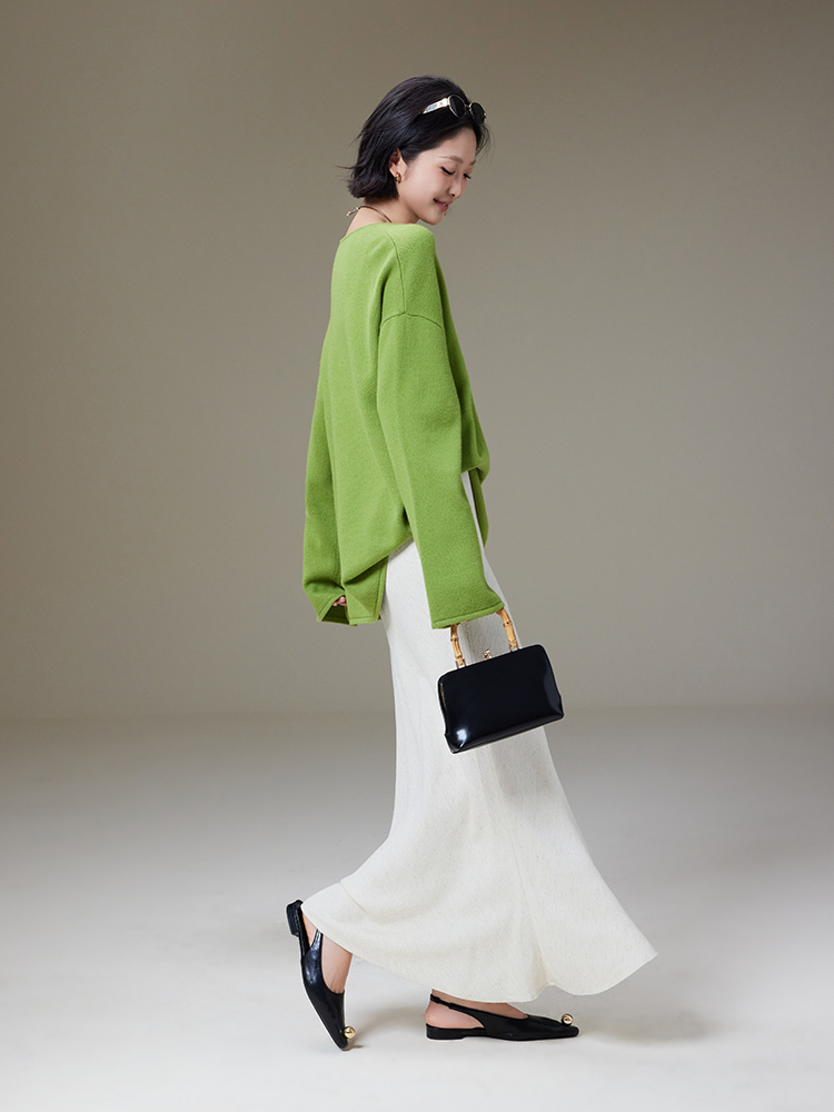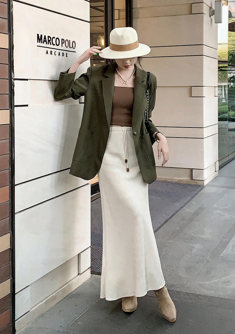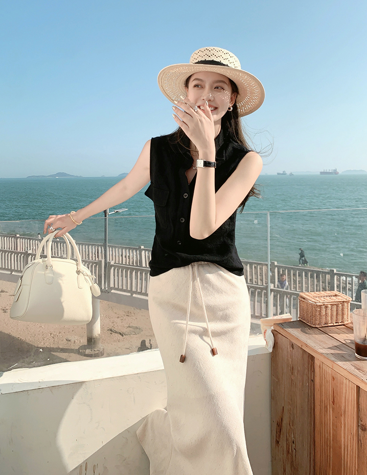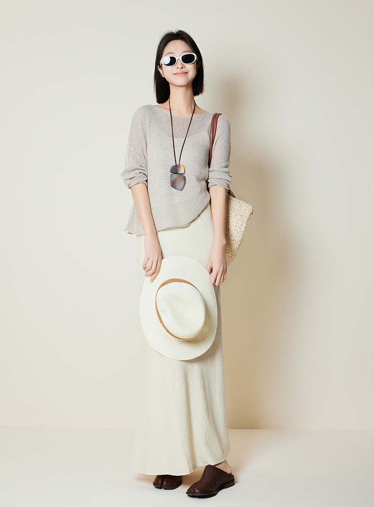 Meiyang【In Stock】Moonlight Skirt Cotton-Linen Blend_Heavy Craft Diagonal Cut Elastic Waist Little Mermaid Tail