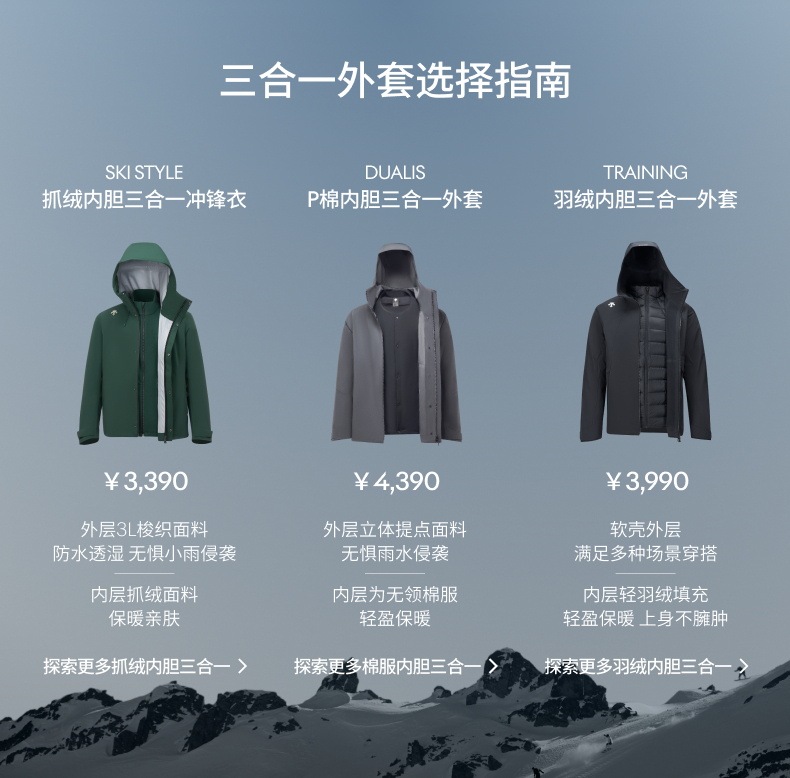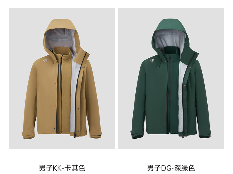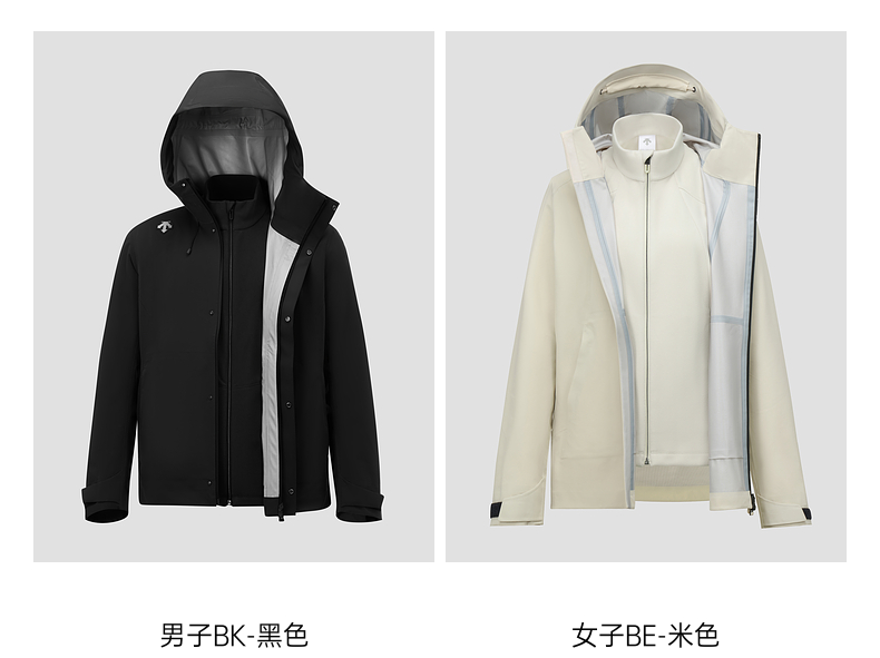 Descente Desante Fleece-Lined Waterproof and Breathable 3-in-1 Jacket Two-Piece Set for Men and Women