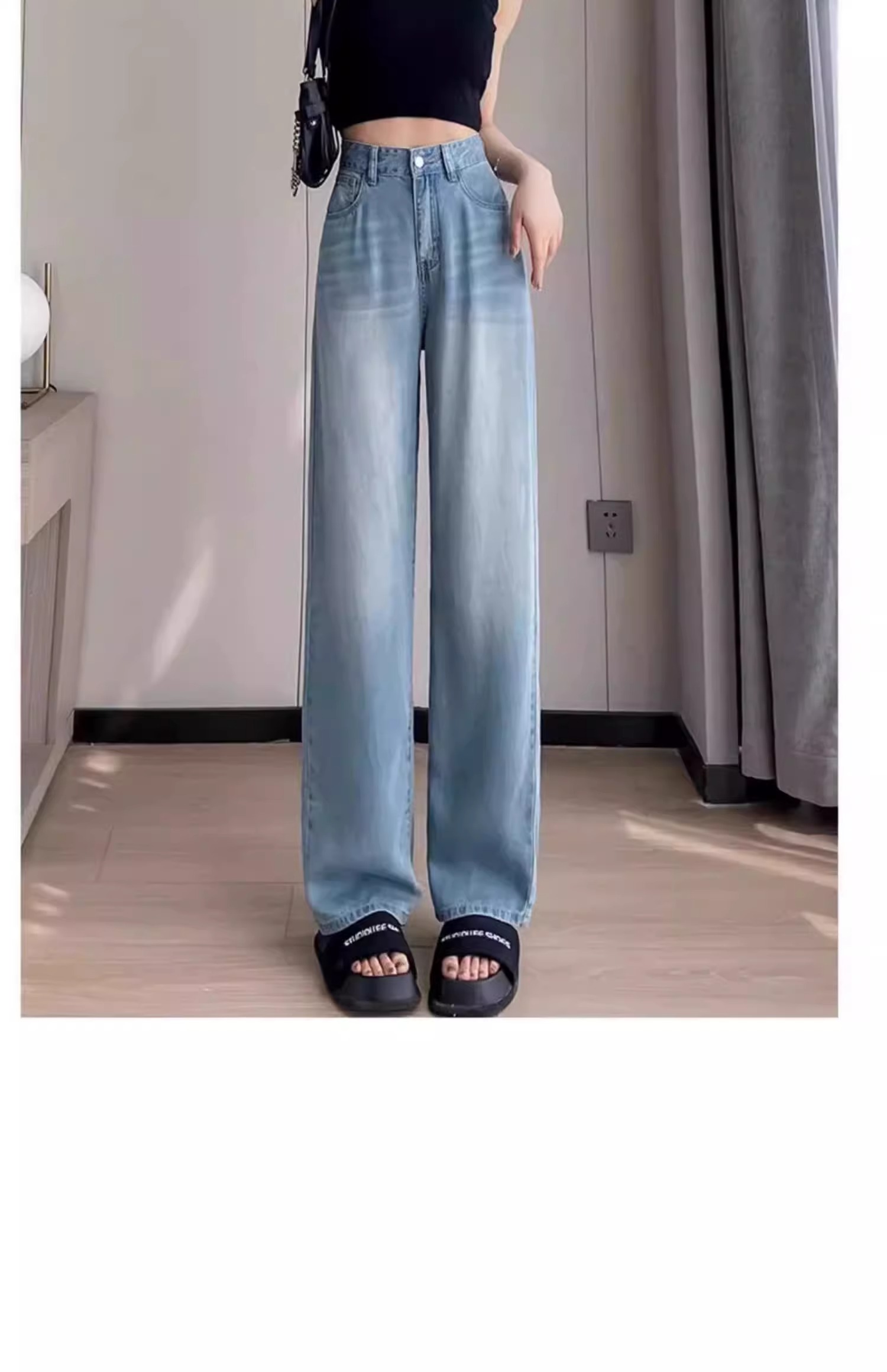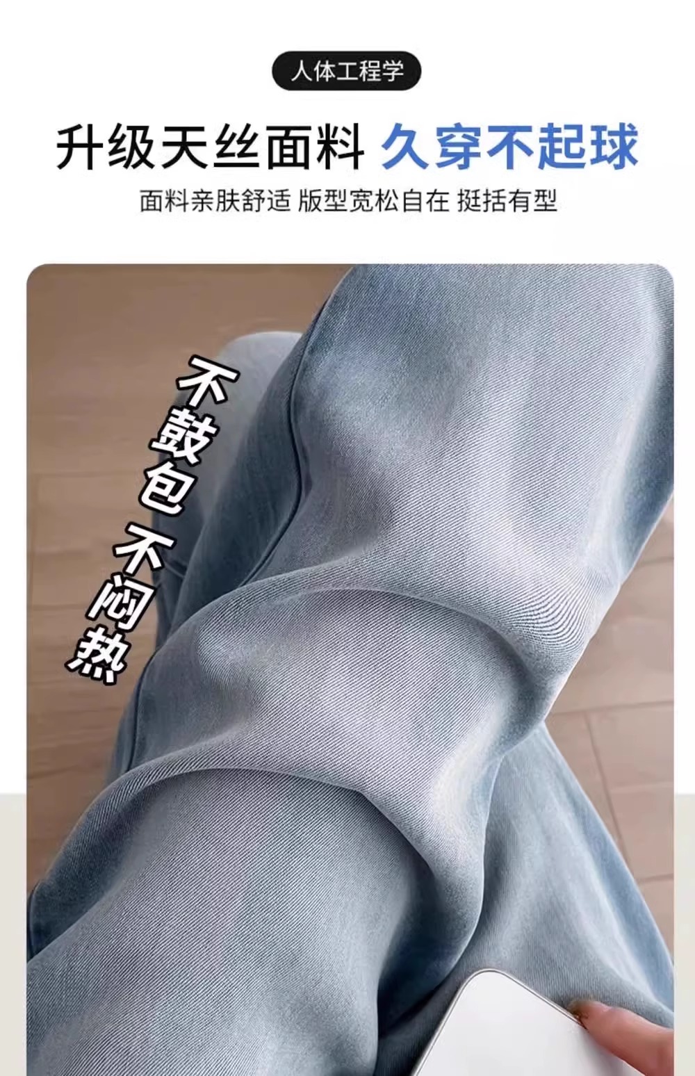 Lyocell Tencel Jeans for Women, Summer Thin Style, Pear-Shaped Body, Plus Size, Loose Fit, Slimming, Ice Silk Straight-Leg Wide-Leg Pants