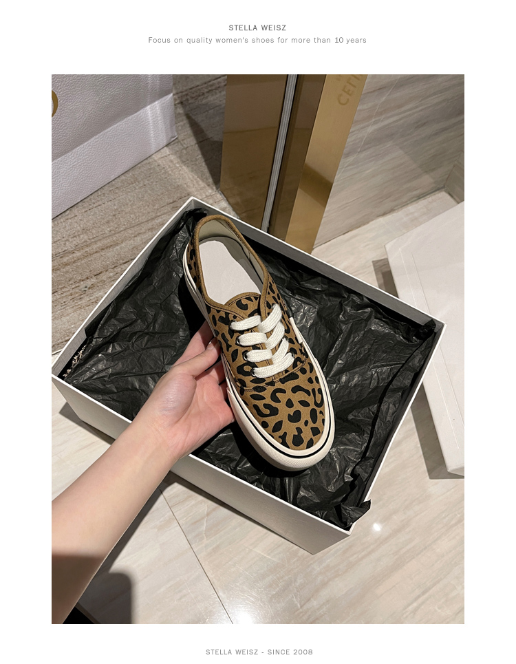 Hong Kong Thick-Soled Height-Increasing Leopard Print Shoes Versatile Canvas Shoes for Women 2025 New Spring and Autumn Niche Casual Slip-On Sneakers