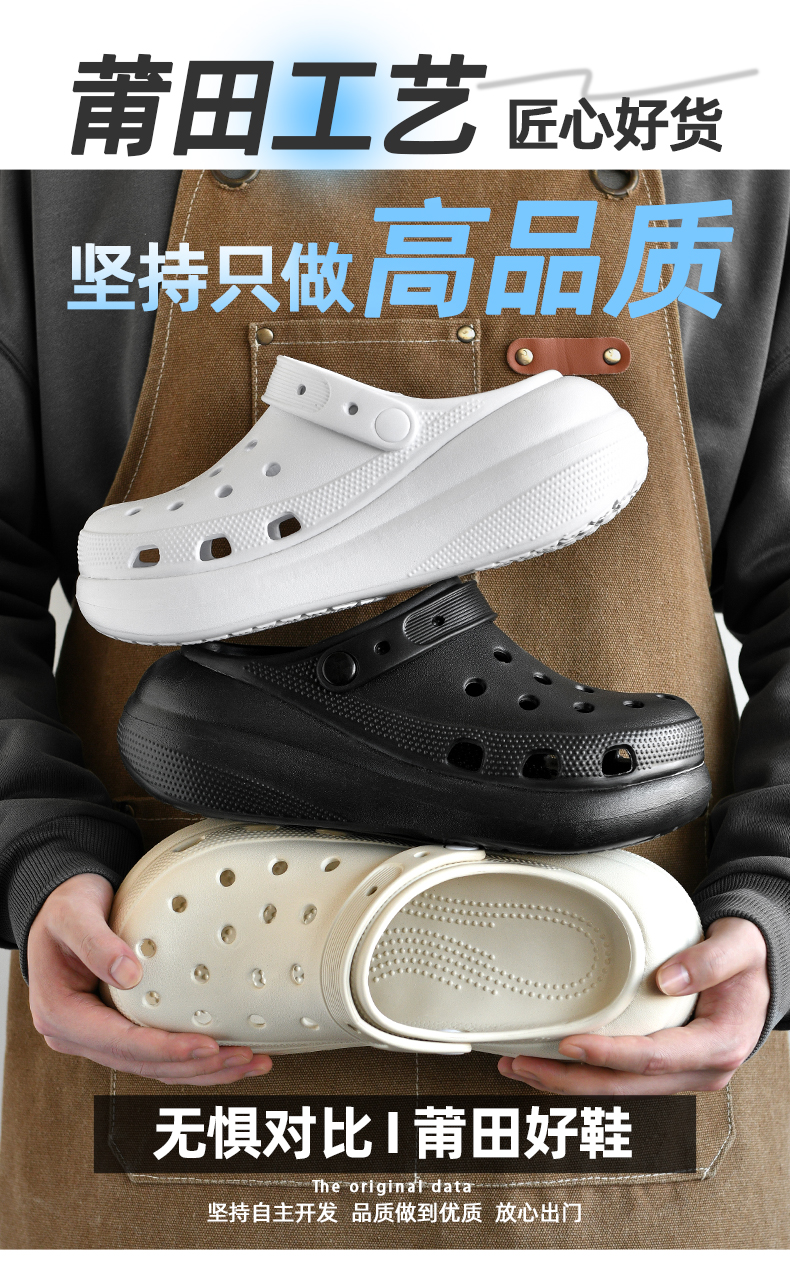 Bai Jingting Style Black Clogs for Men and Women soft sole 2025 New Ultra-Thick Sole Couple Outdoor Closed-Toe Slippers
