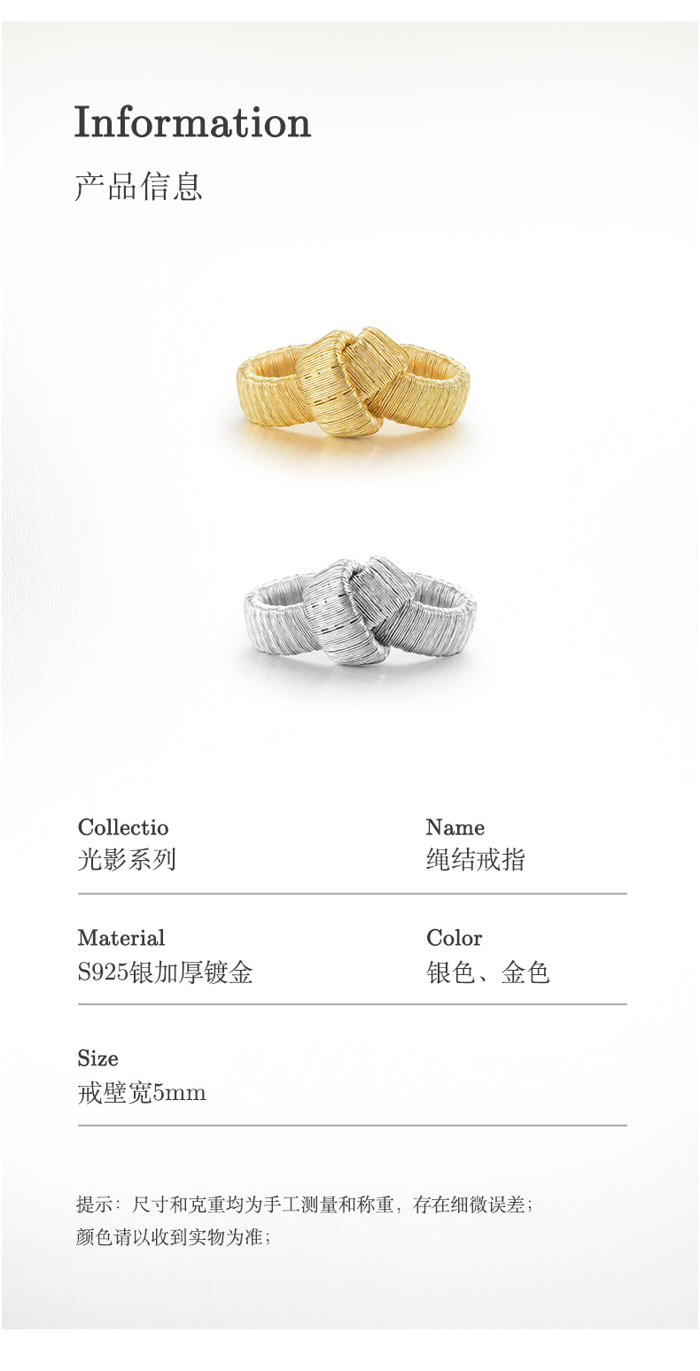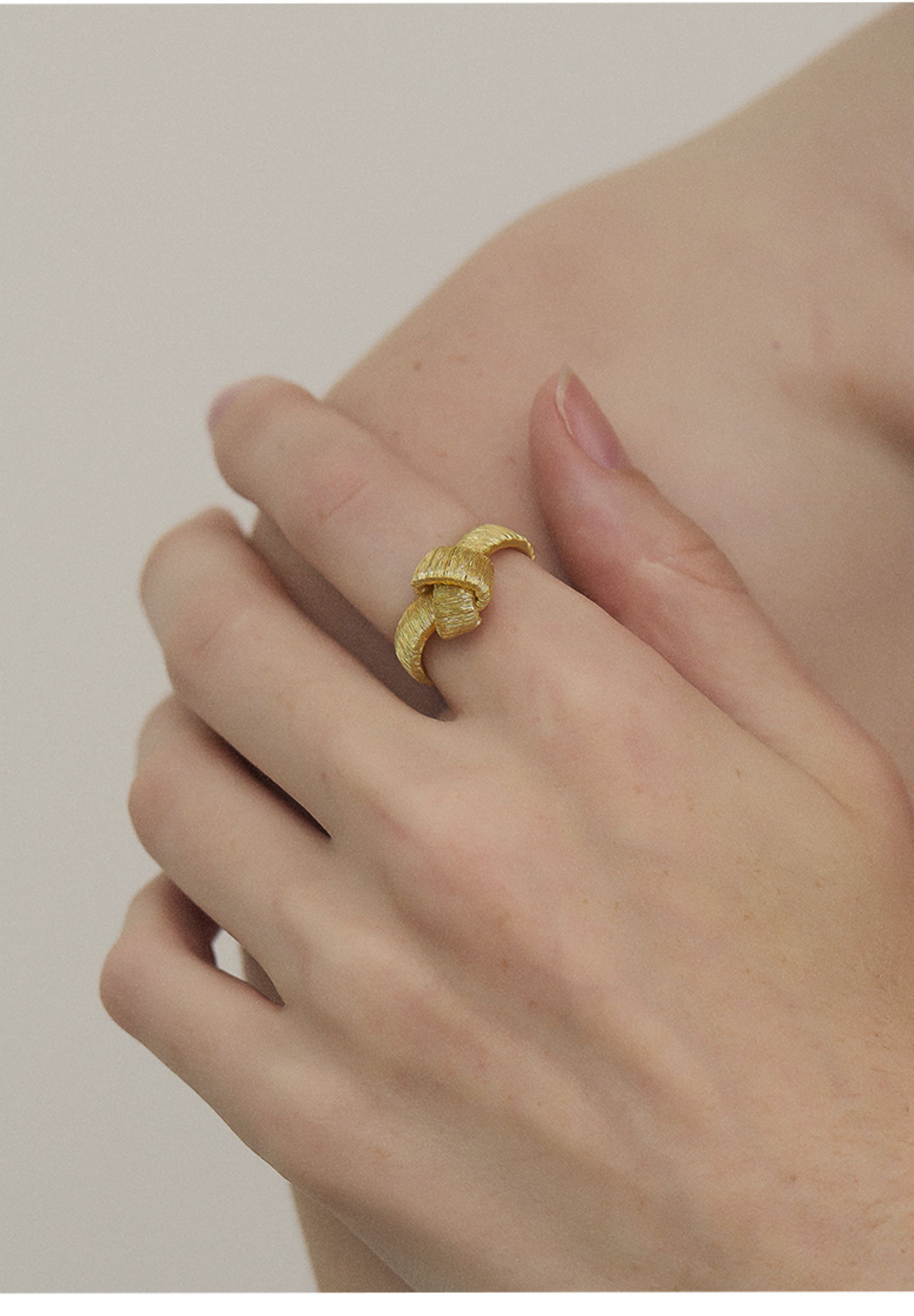 [Celebrity Style] Ikico Jewelry Light and Shadow Knot Ring S925 Silver Gold-Plated Italian Niche High-End