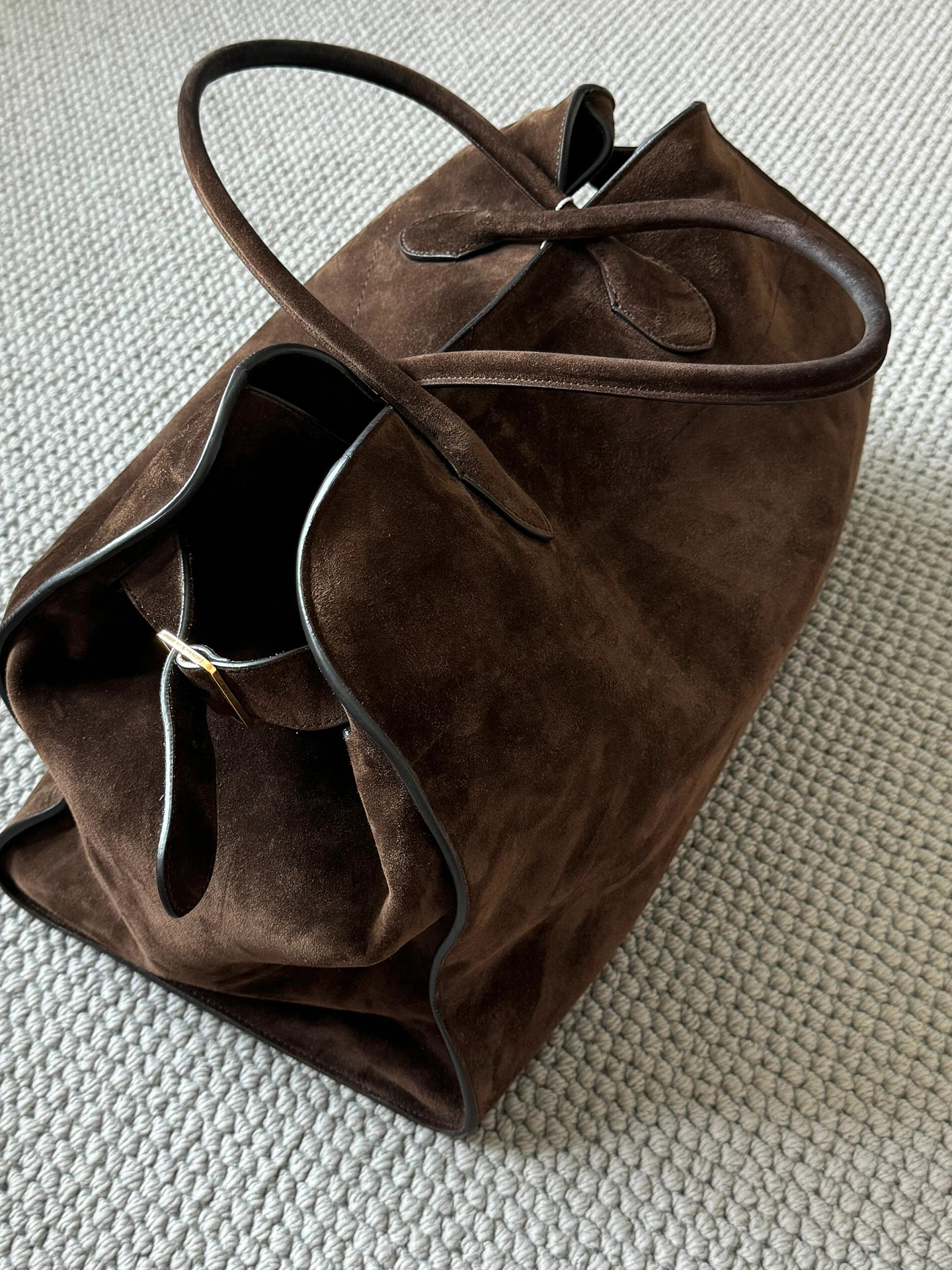 【Kendall Jenner Style】Row-Style Suede Tote Bag, First-Layer Genuine Leather Handbag, Brown Suede Large Bag