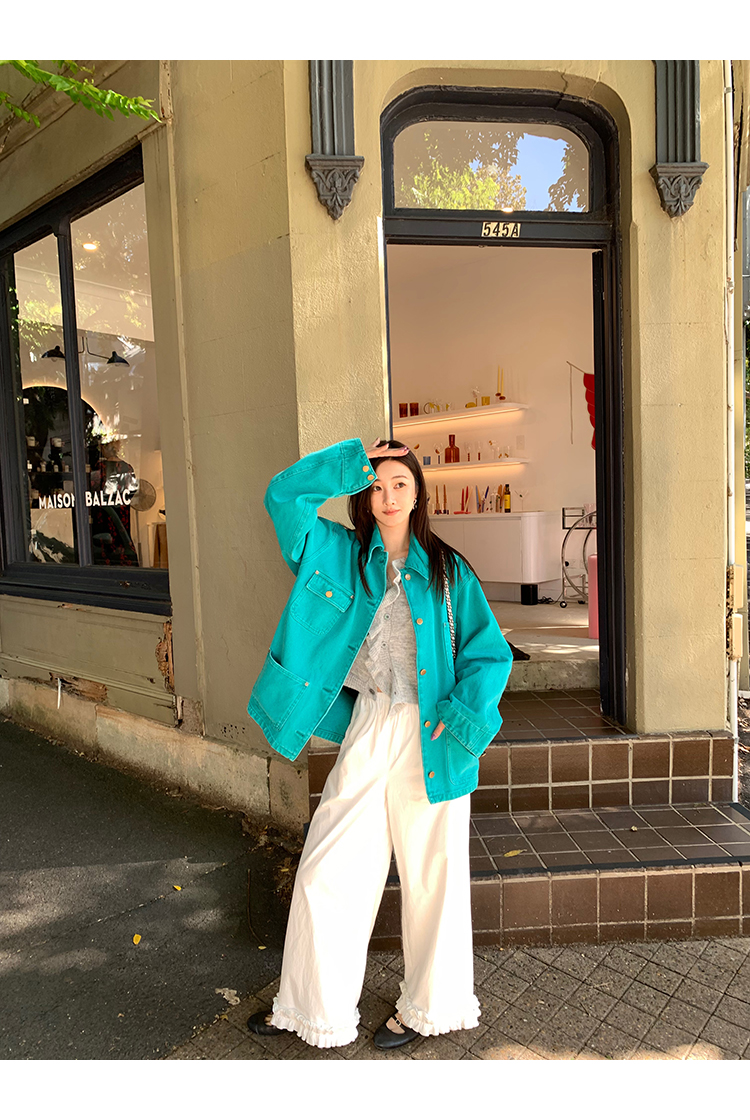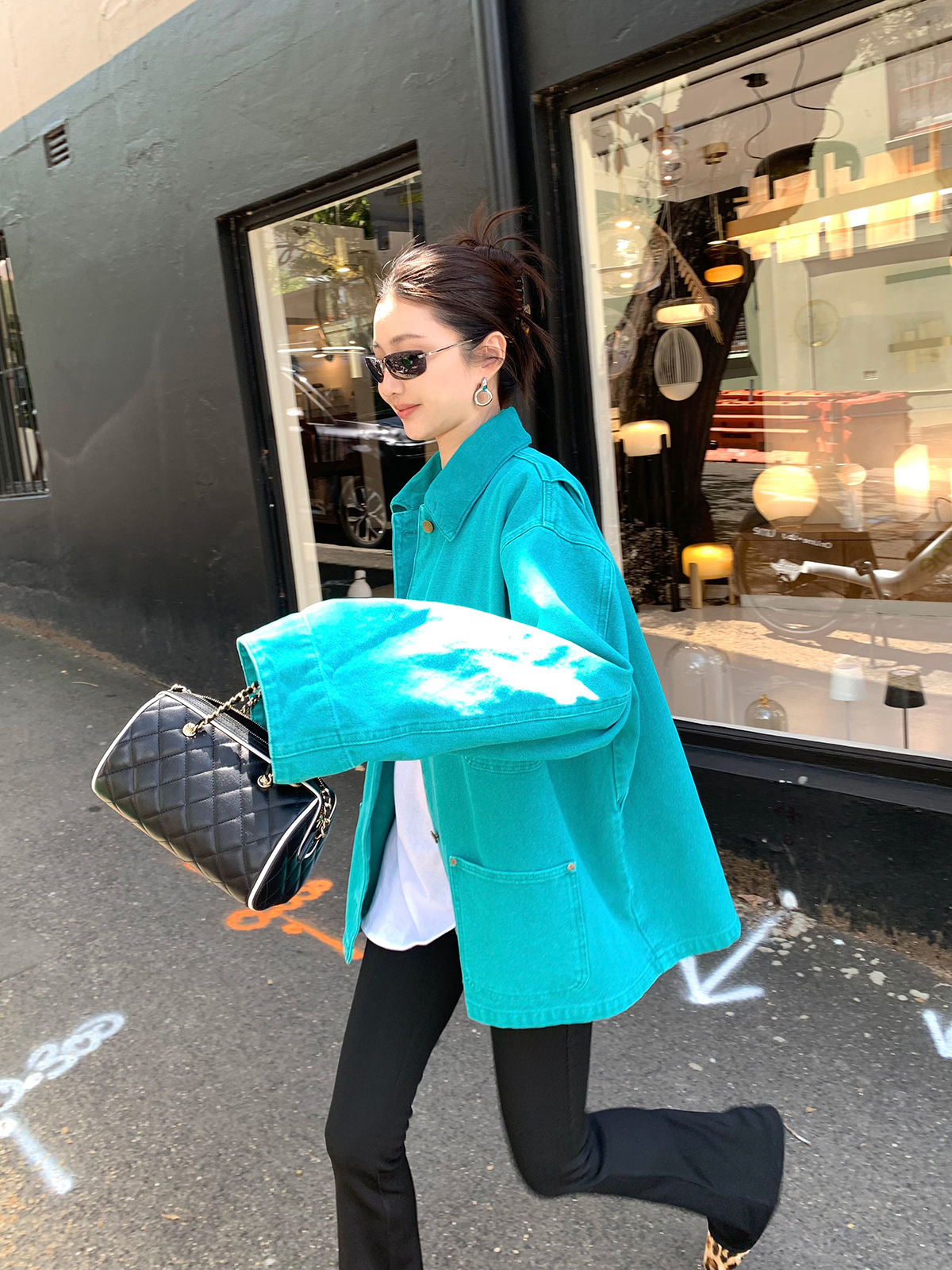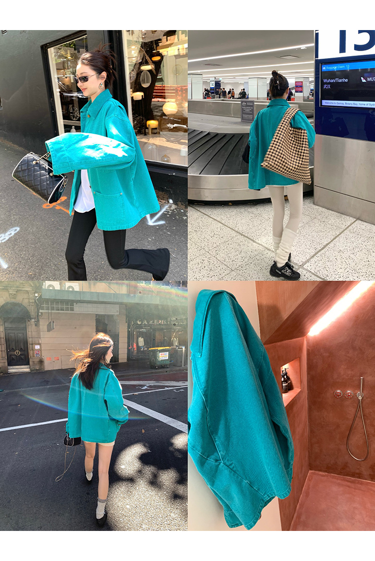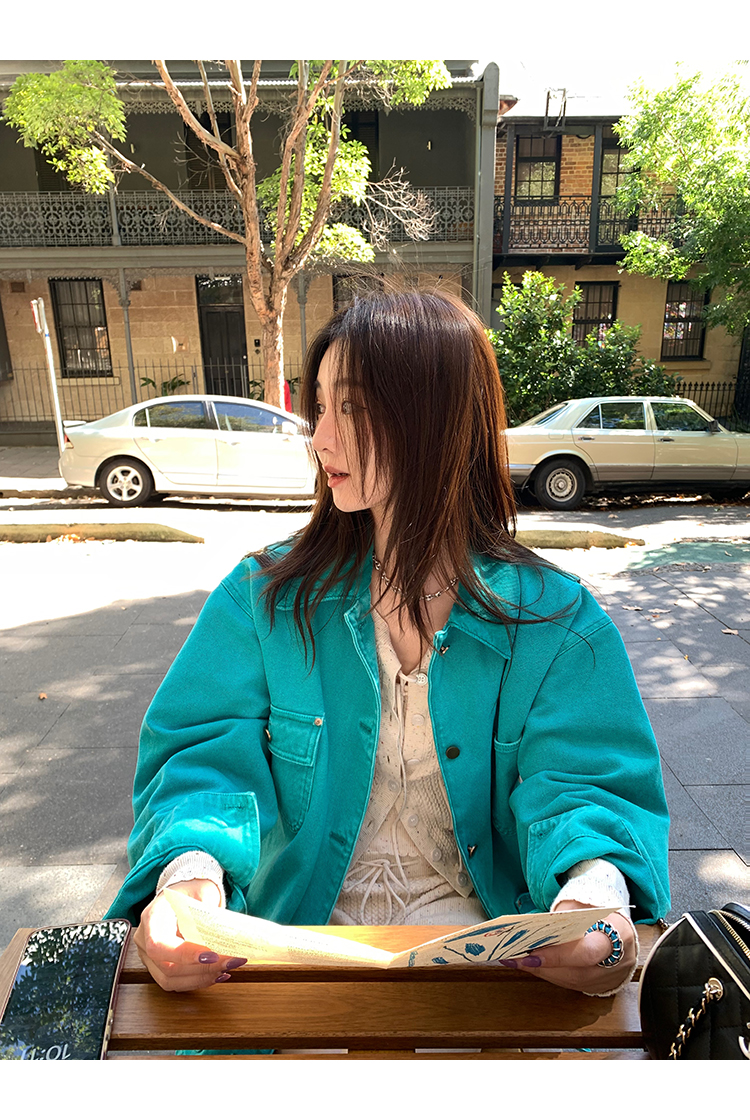 Vcruan Achigo Ruan Series Lake Blue Cardigan with a Cheerful Vibe, Stylish and Casual Workwear Jacket