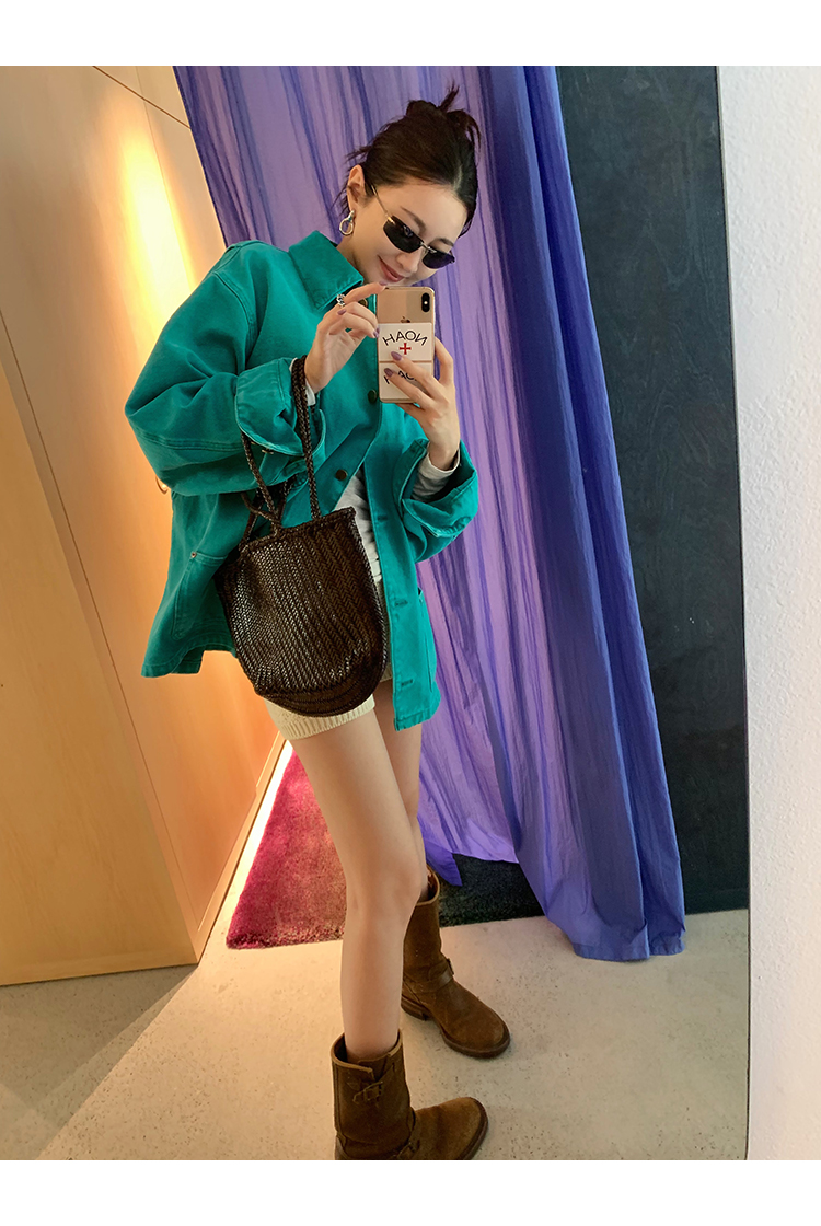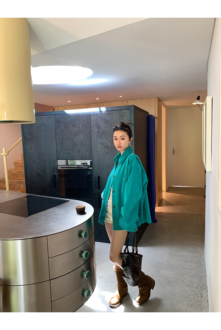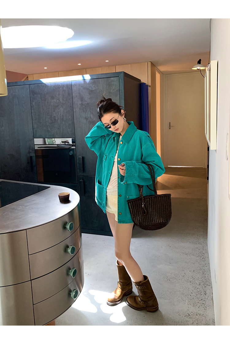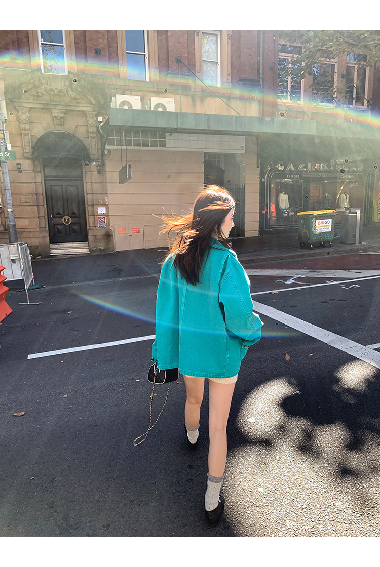 Vcruan Achigo Ruan Series Lake Blue Cardigan with a Cheerful Vibe, Stylish and Casual Workwear Jacket