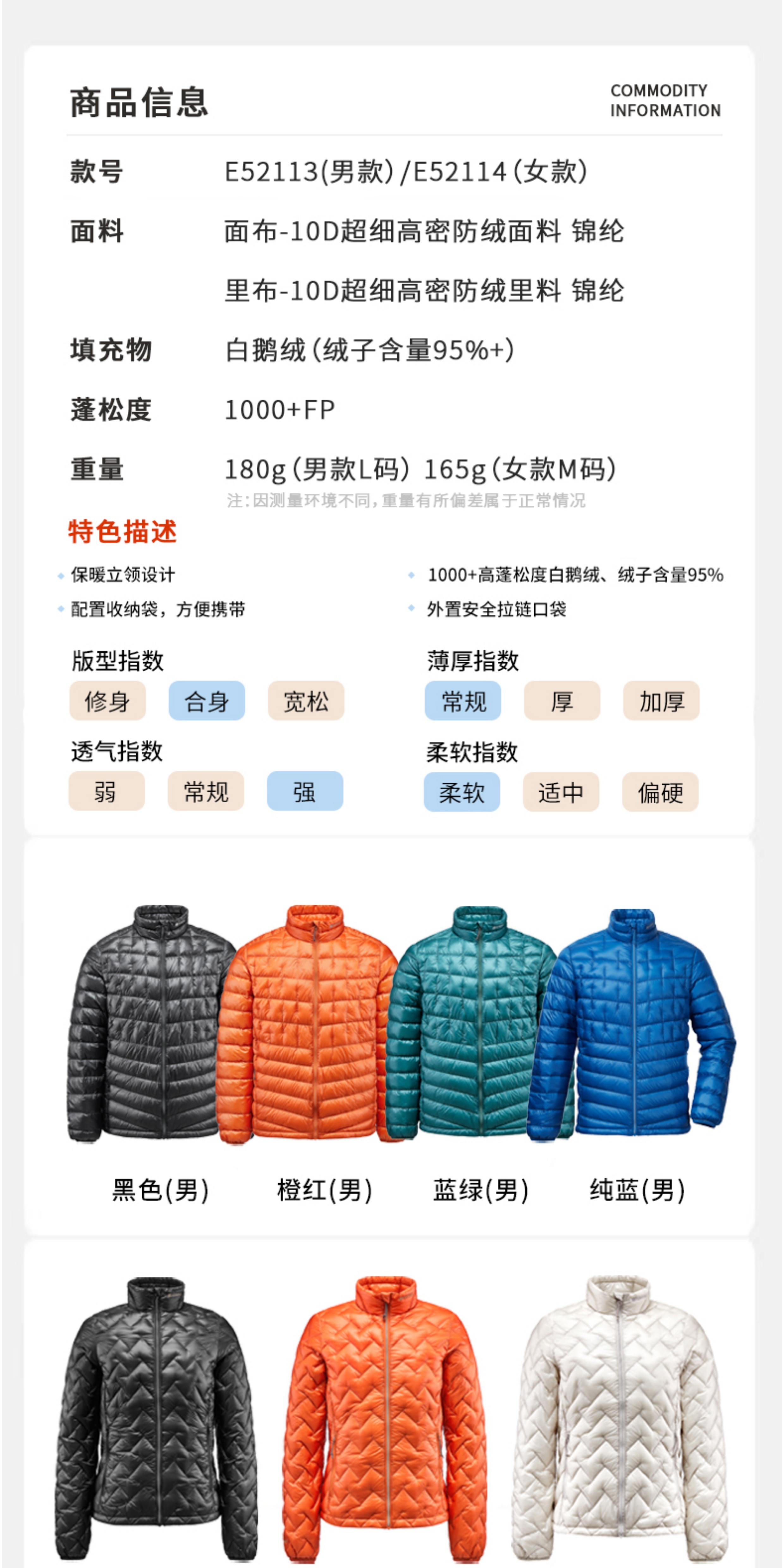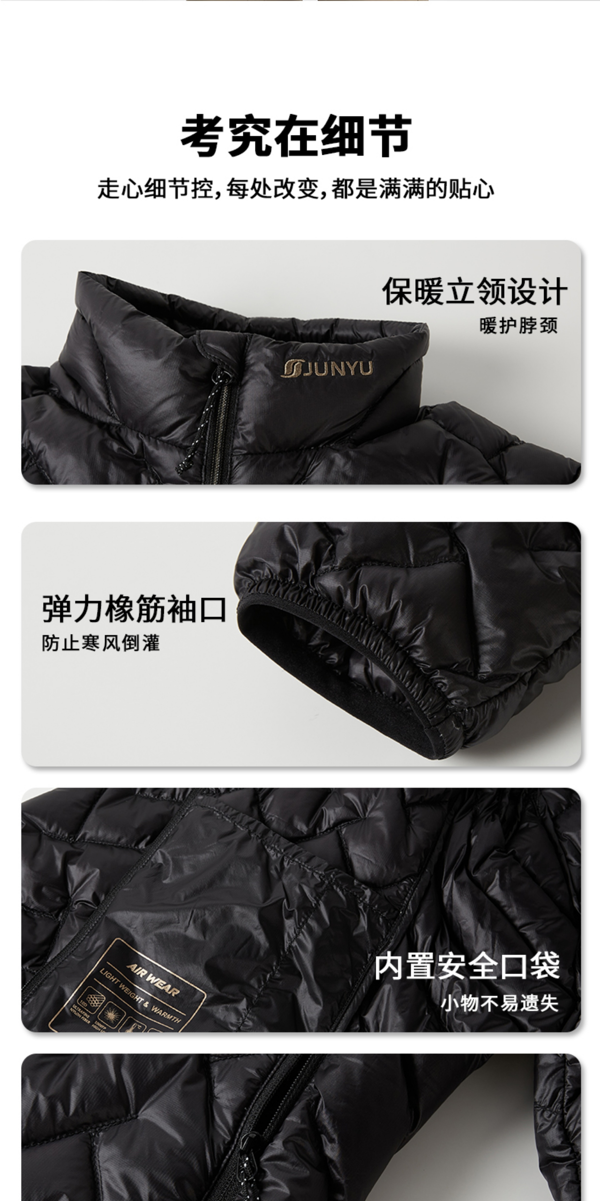 [Black Label] 1000 Fill Power White Goose down Junyu Outdoor down Jacket for Men and Women, Short Style, Stand Collar, Lightweight Winter Model E52113
