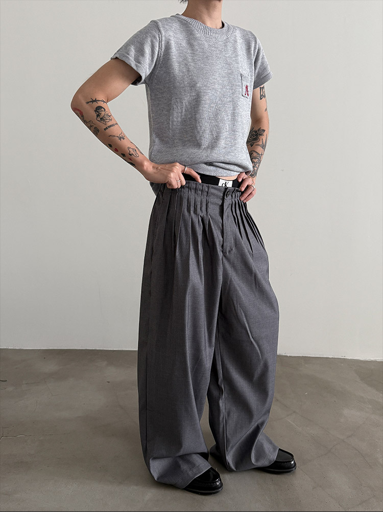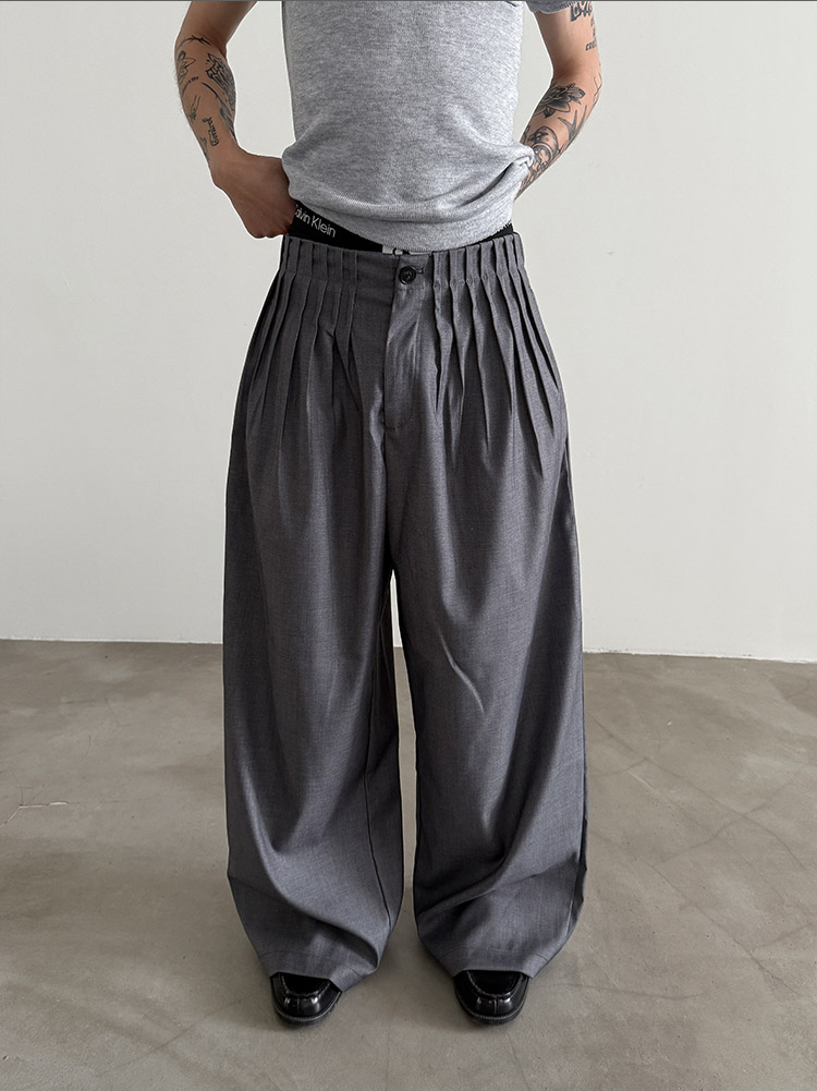 Very Fewest Small Quantity of Pleated A-Line Wide-Leg Trousers with High-End Design and Drape, Loose Casual Pants