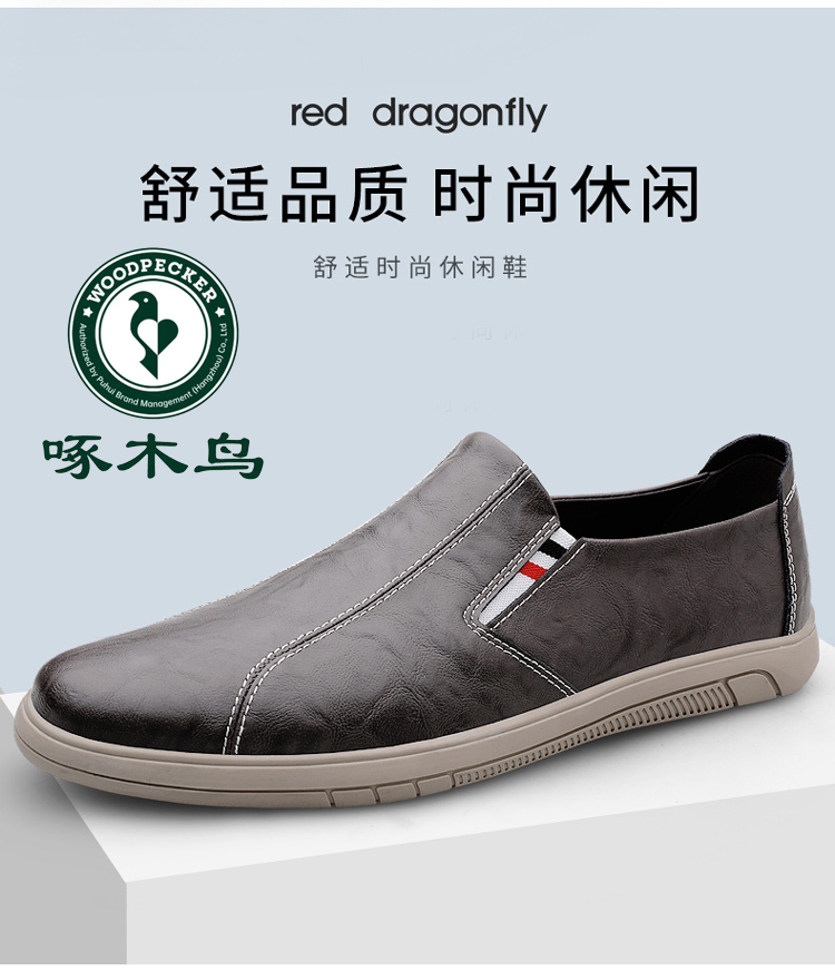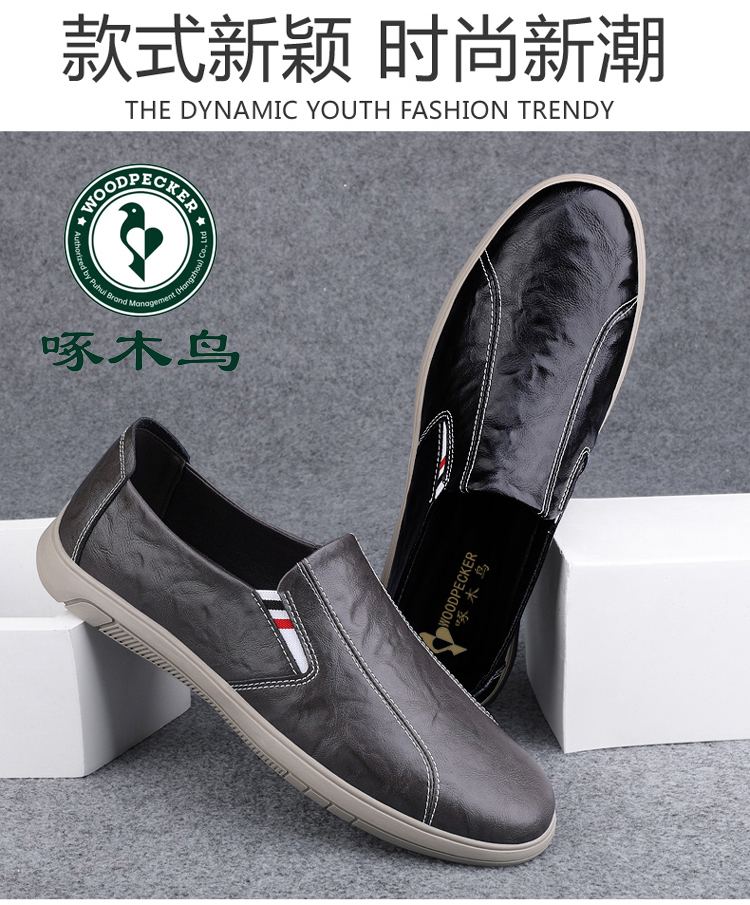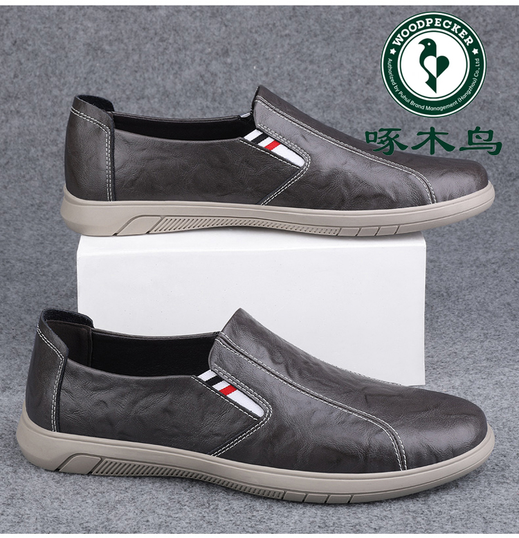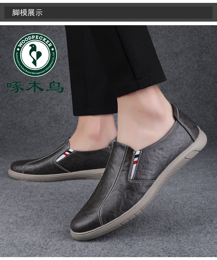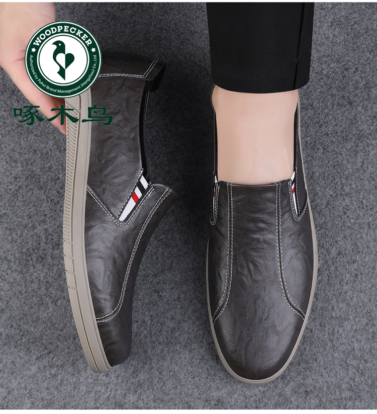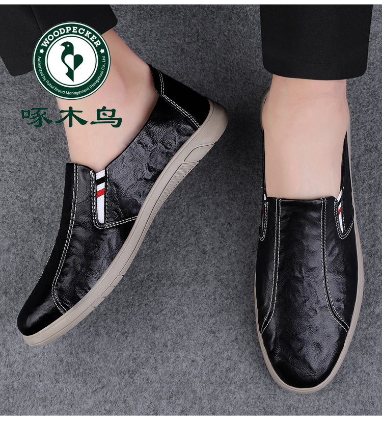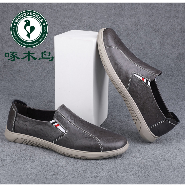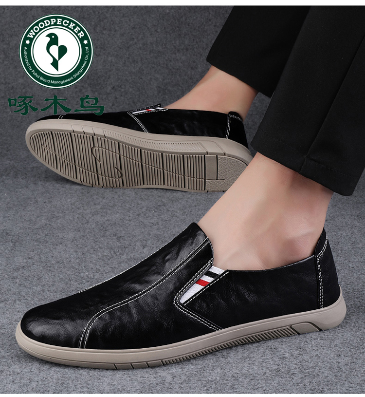 Woodpecker Men's Shoes 2025 New British Style Casual Versatile Slip-On Leather Shoes Men's Genuine Leather Soft Sole Breathable Trendy Shoes