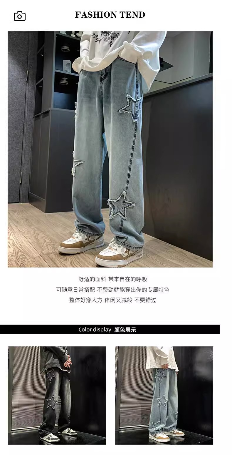 Star American High Street Jeans for Women, Trendy Brand, Loose Straight-Leg, Plus Size, Autumn and Winter Hip-Hop European and American Wide-Leg Pants
