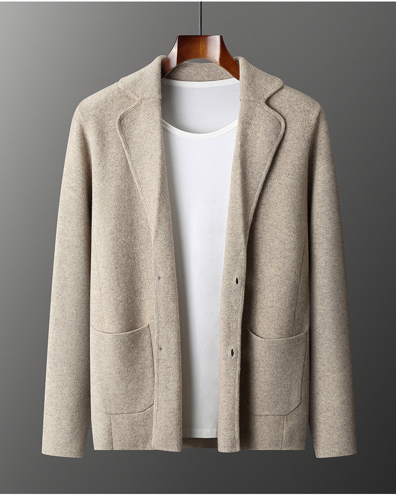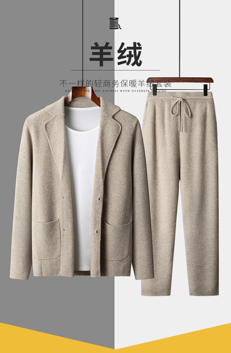Cashmere Cardigan Men's Cashmere Two-Piece Set Fashionable Business Autumn and Winter Classy Casual Sports Suit Collar Suit Jacket