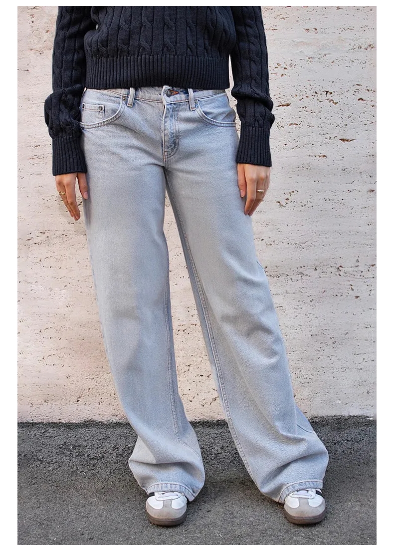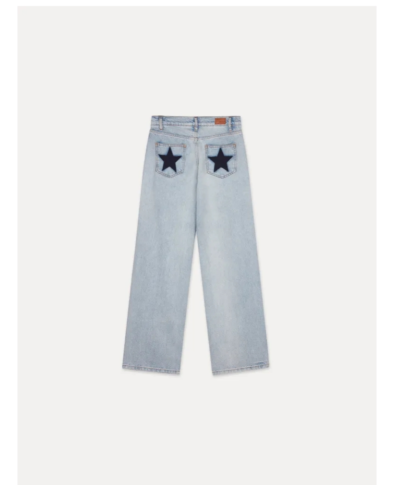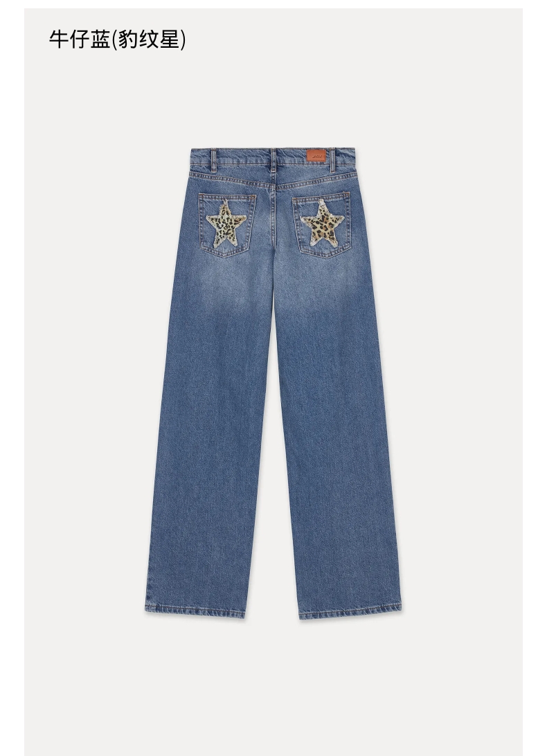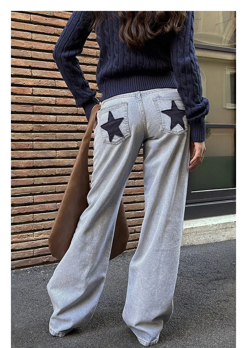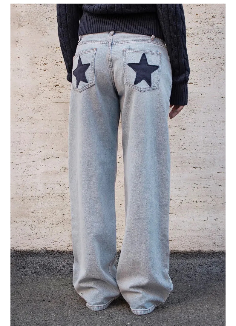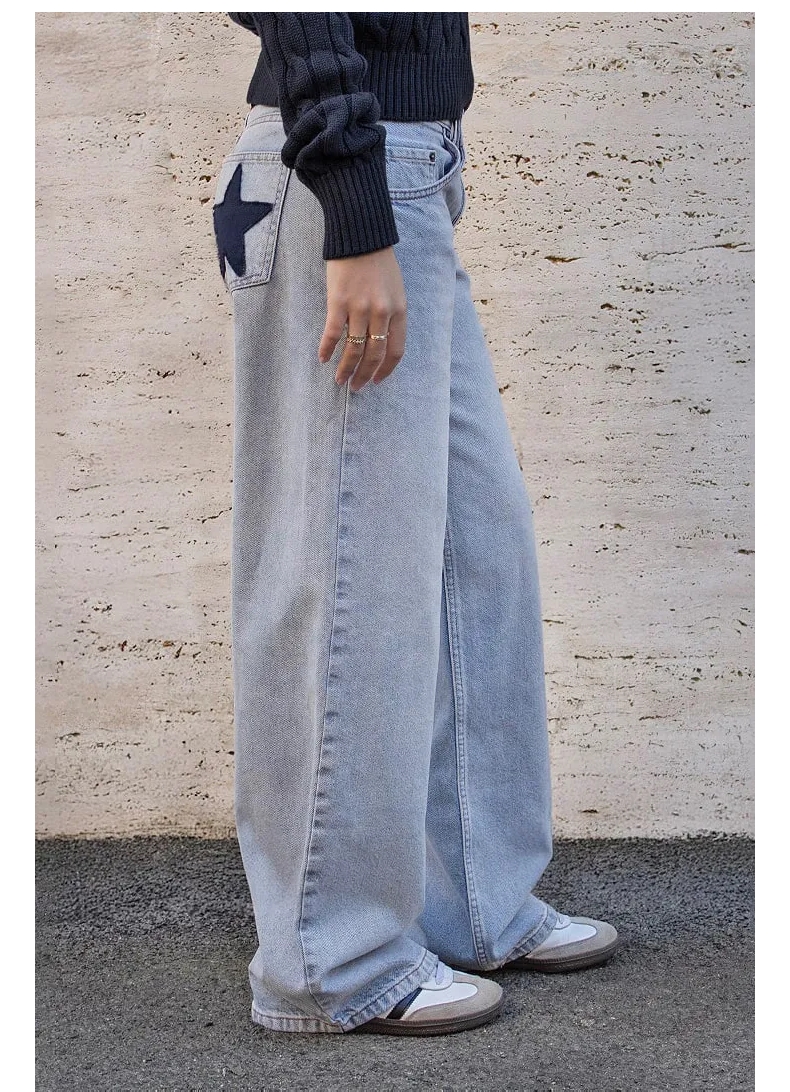 Yellow Full-Length Subdued Jeans, New Women's Loose Low-Rise Style with a Sense of Atmosphere and Star Patches on the Back