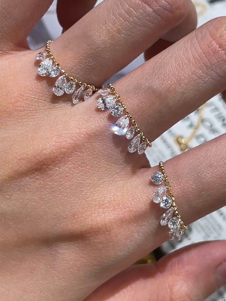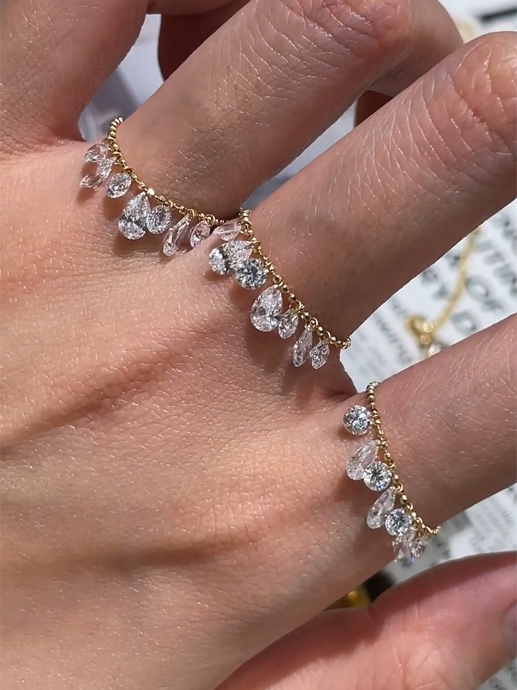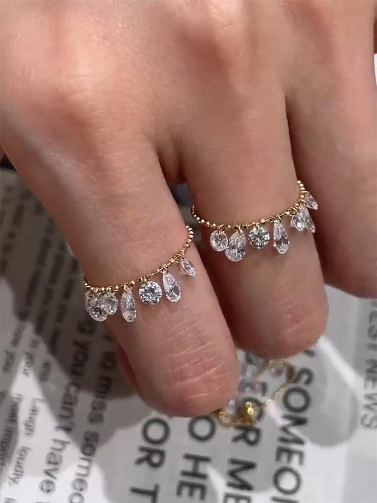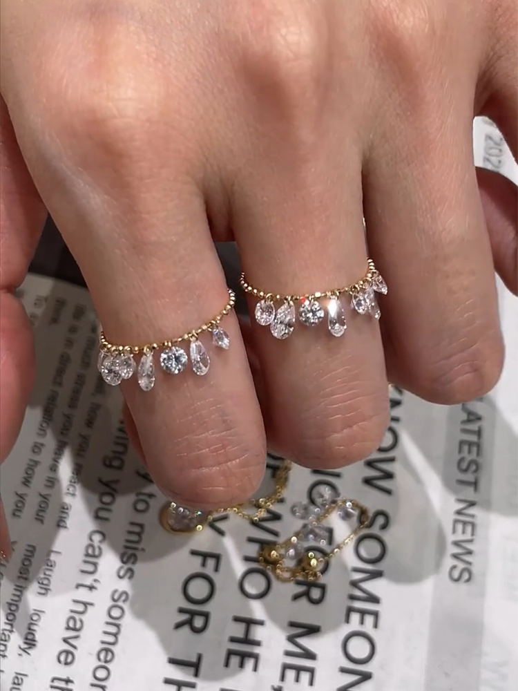 Water Drop Tassel Beaded Ring for Women, Light Luxury Niche Design, Fashionable Ring, Minimalist Style, Stackable Gold Index Finger Ring