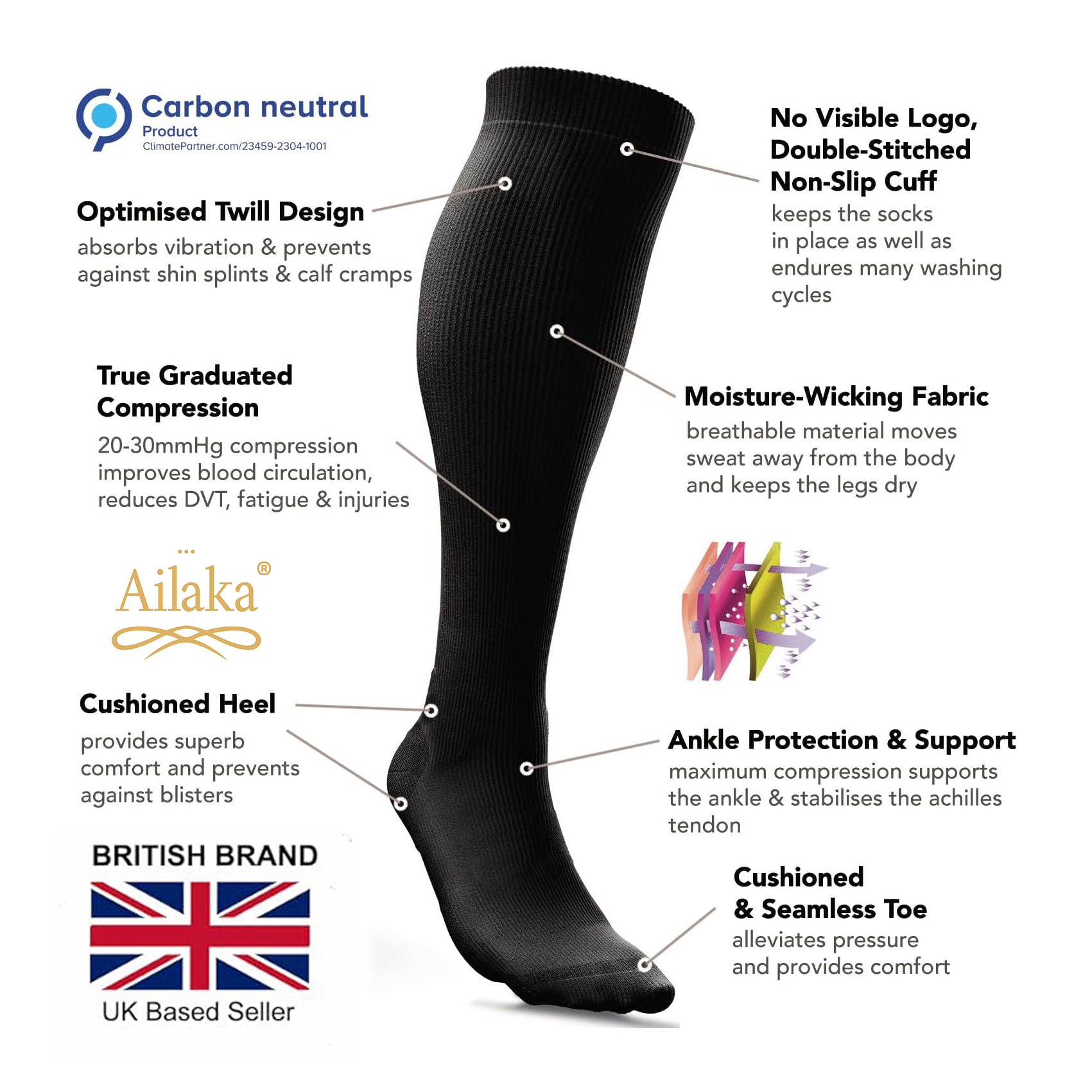 Ailaka British Aviation Essential Item Economy Class Long-Distance Flight Pressure Socks Elastic Compression Socks Leg Protection Socks for Men and Women