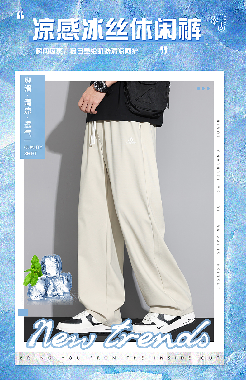 Ice Silk Scimitar Pants for Men, Summer Thin Loose Straight-Leg Men's Pants, Quick-Drying Casual Long Pants for Men in Summer