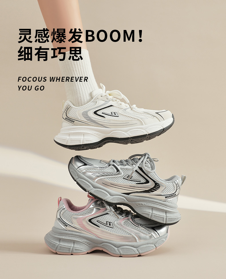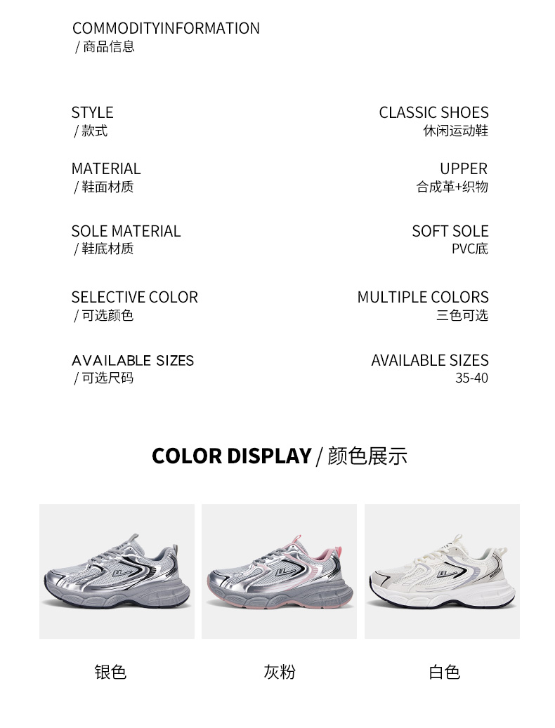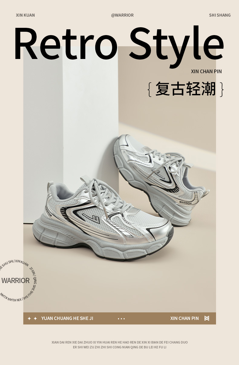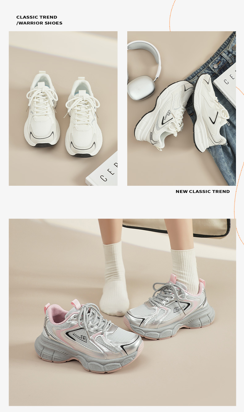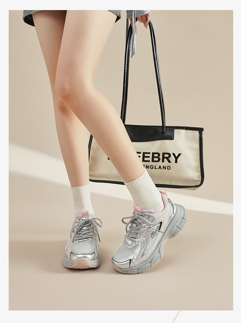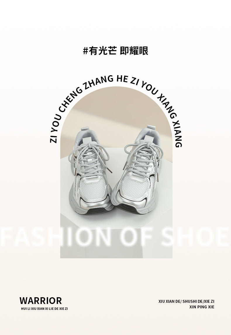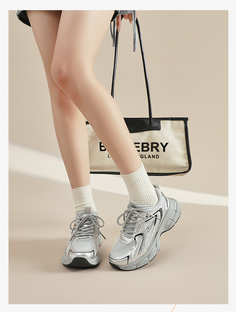 Hui Li Official Flagship Store Silver Dad Shoes Women's 2025 New Autumn Casual Thick-Soled Sports Shoes