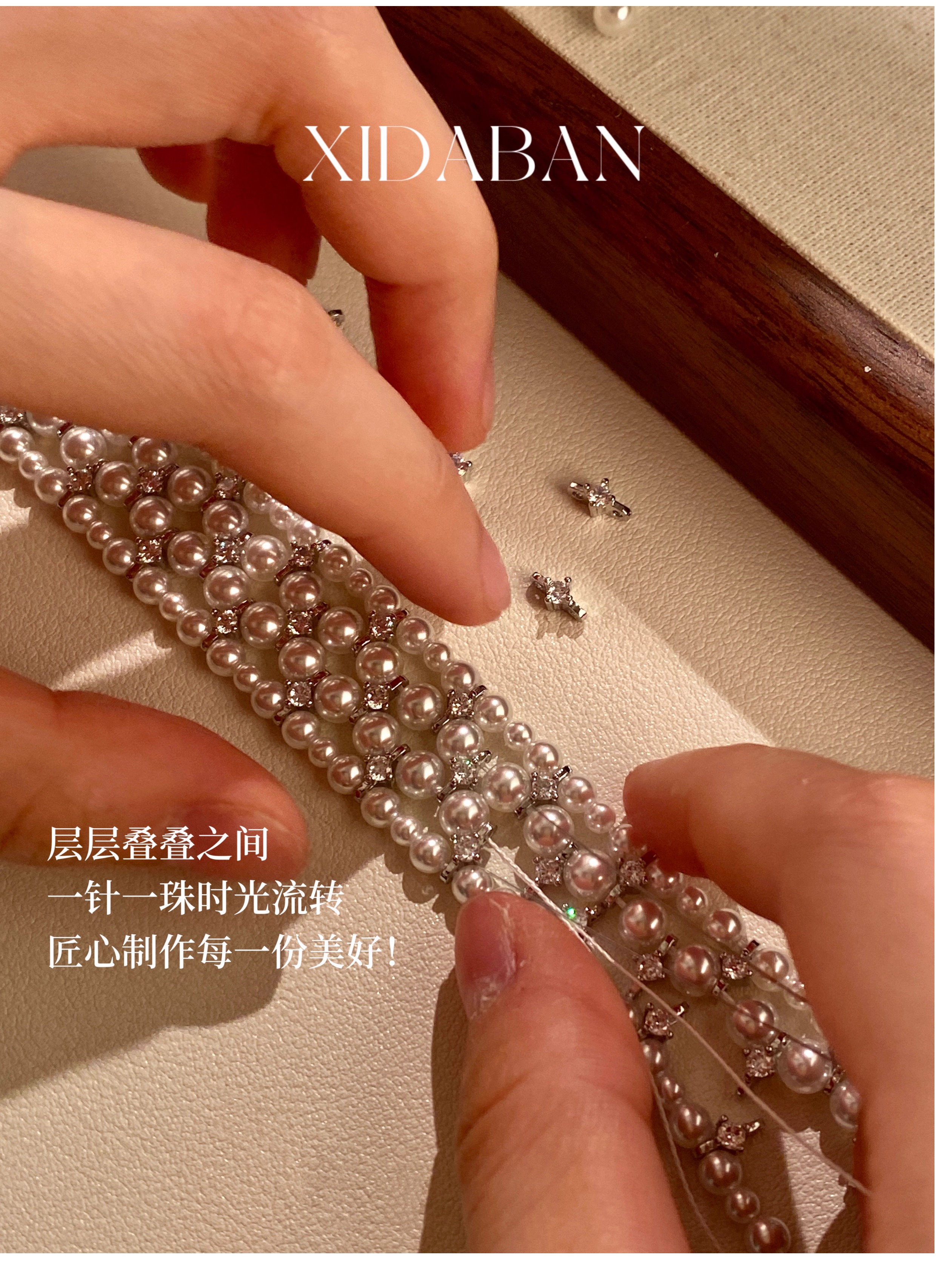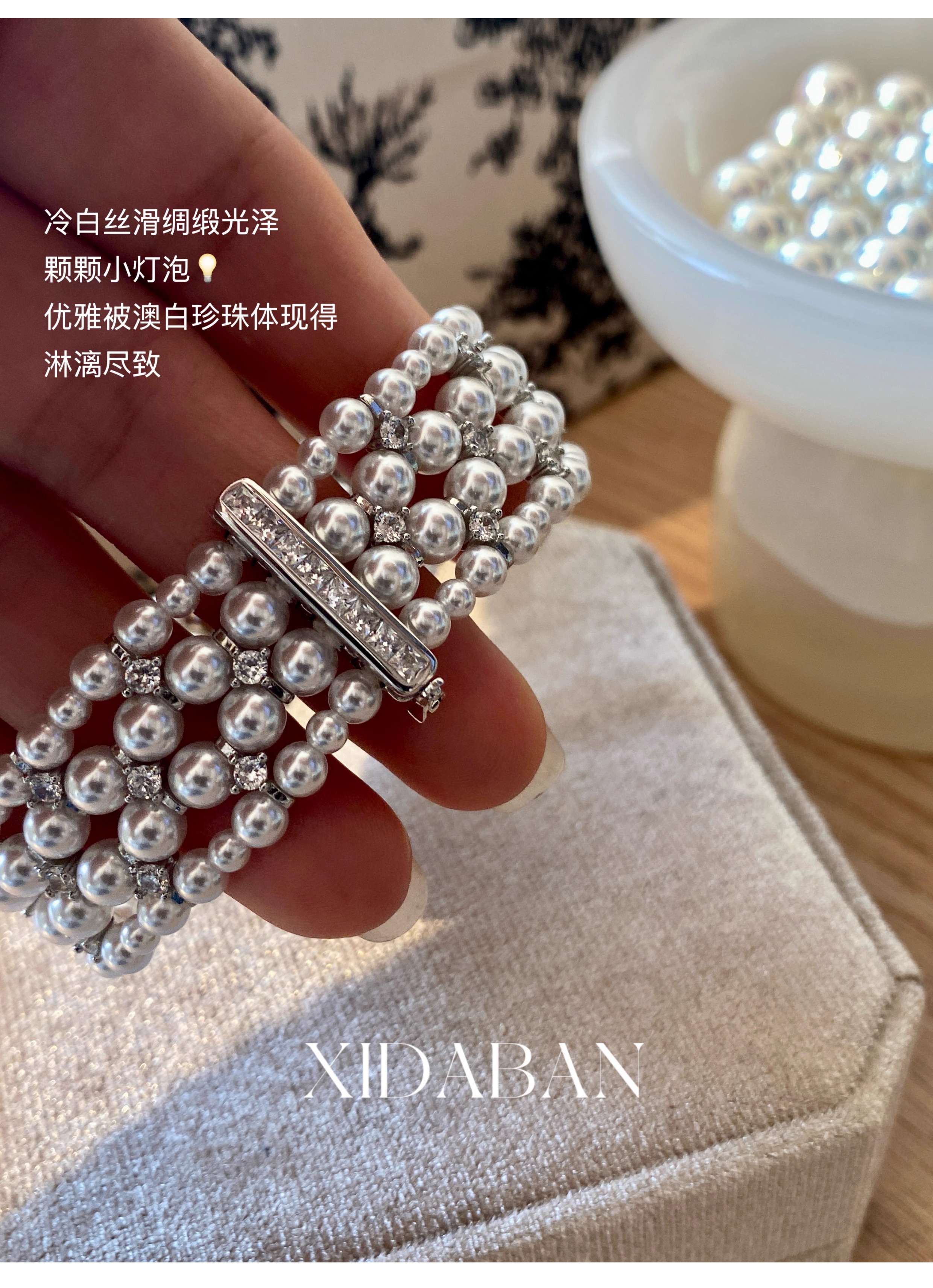 Western-Style Australian White Multi-Layered Pearl Bracelet for Women, 2025 New Model, High-End S925 Silver Niche Design Wide Bangle