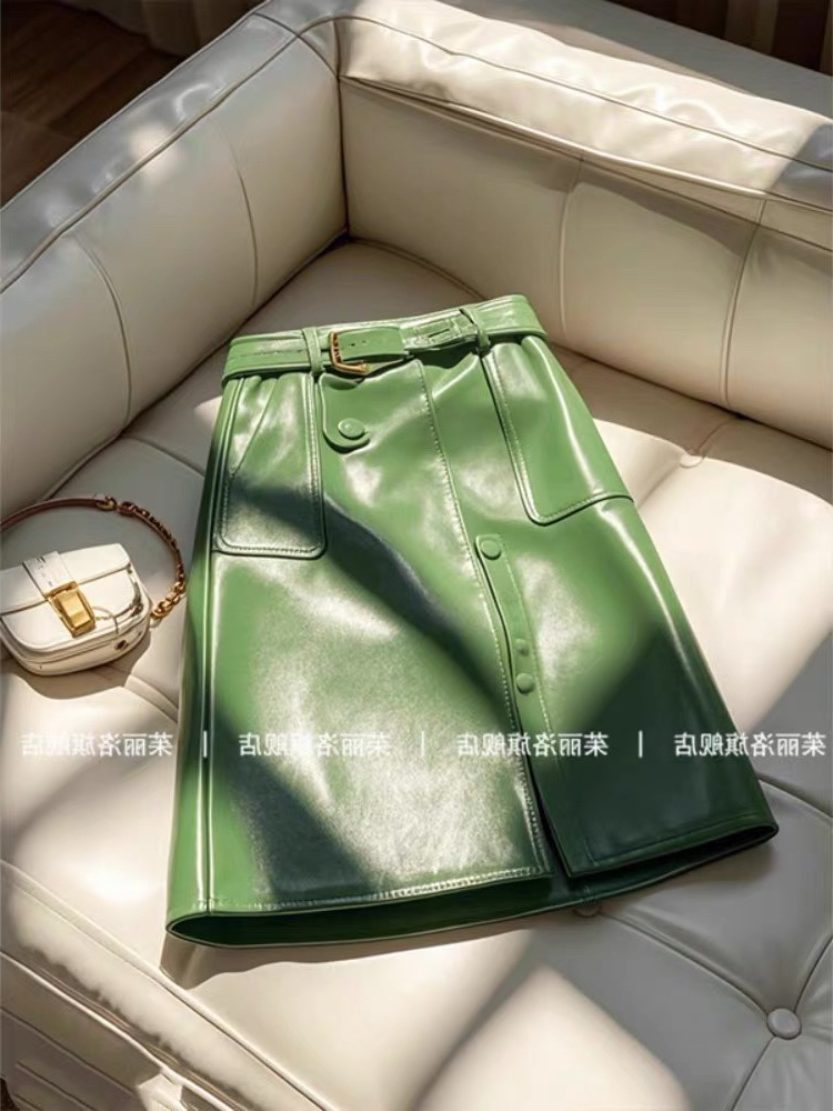The Counter Has Withdrawn Last Order. the Autum Fashionable Skirt Has a High-End Feel and a Super Good-Looking Green Leather Skirt for Small People