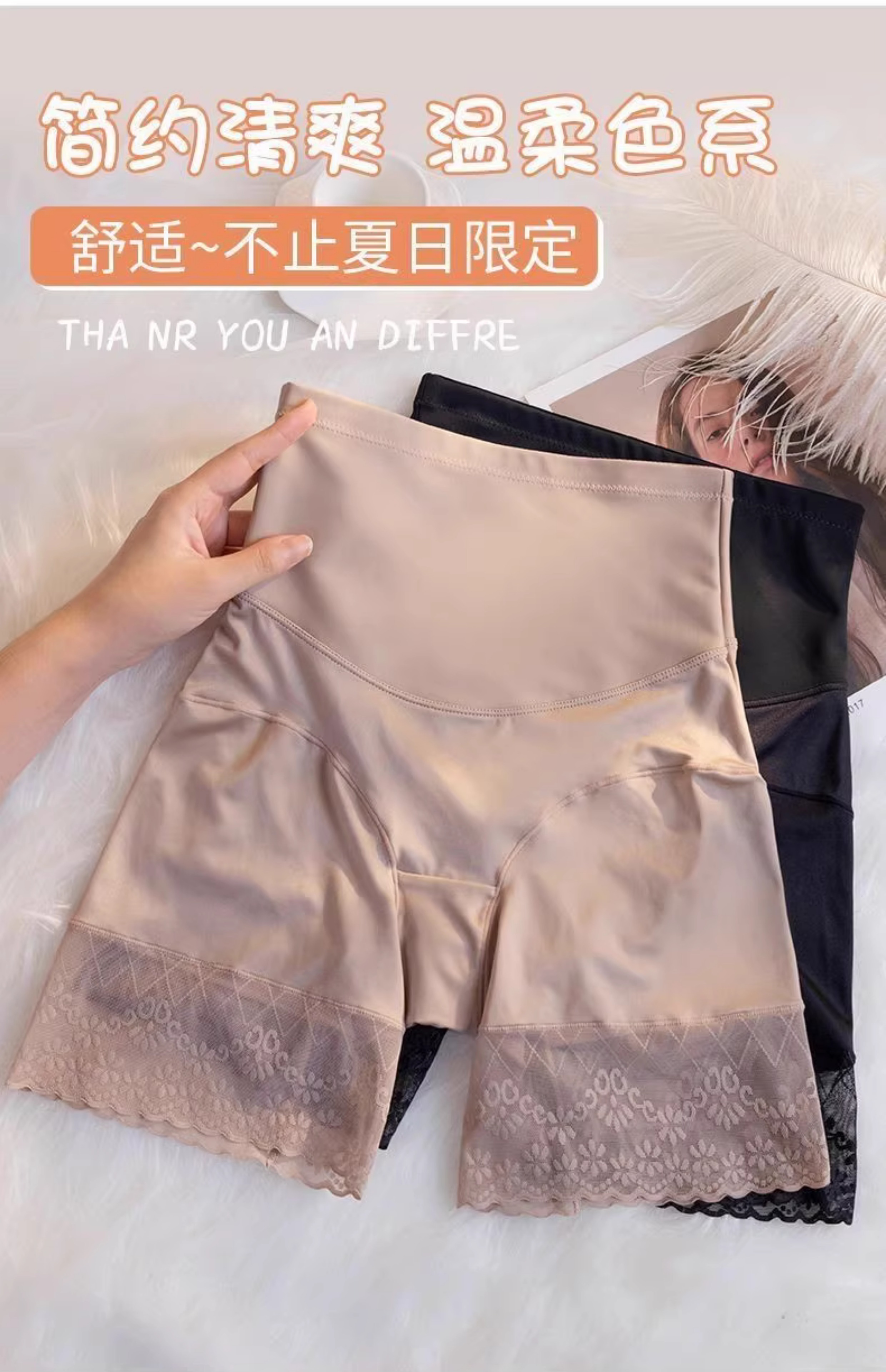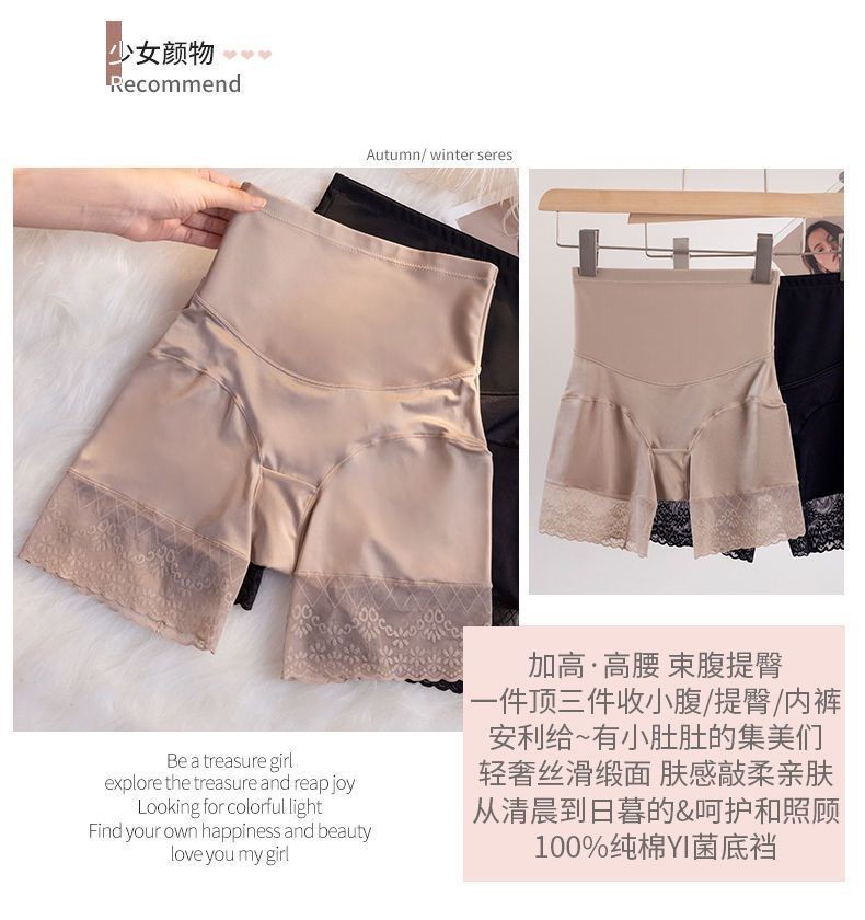 Satin Ladylike Lace Strong Tummy Control Safety Shorts Two-In-One Seamless High-Waisted Pure Cotton Breathable Hip-Lifting Women's Shorts
