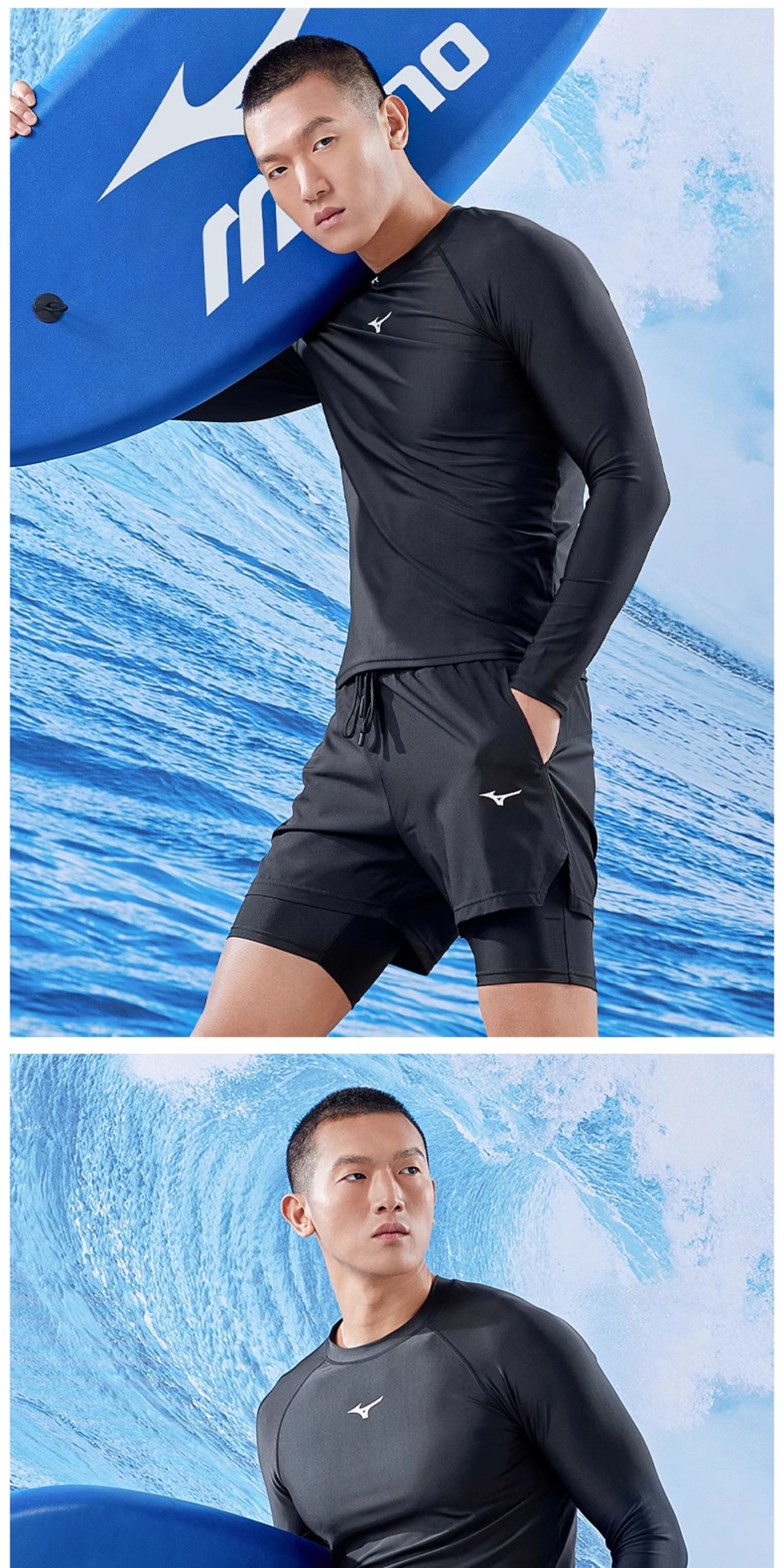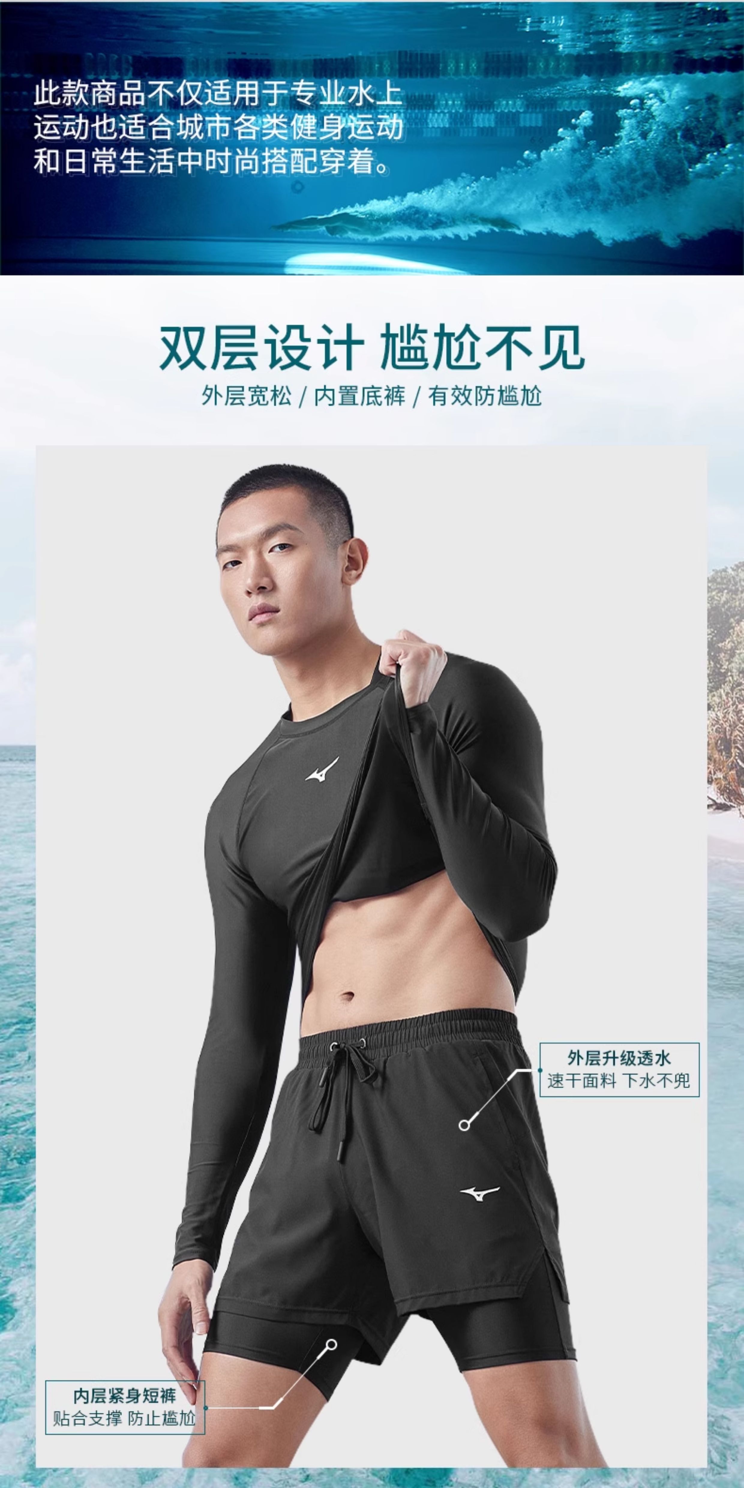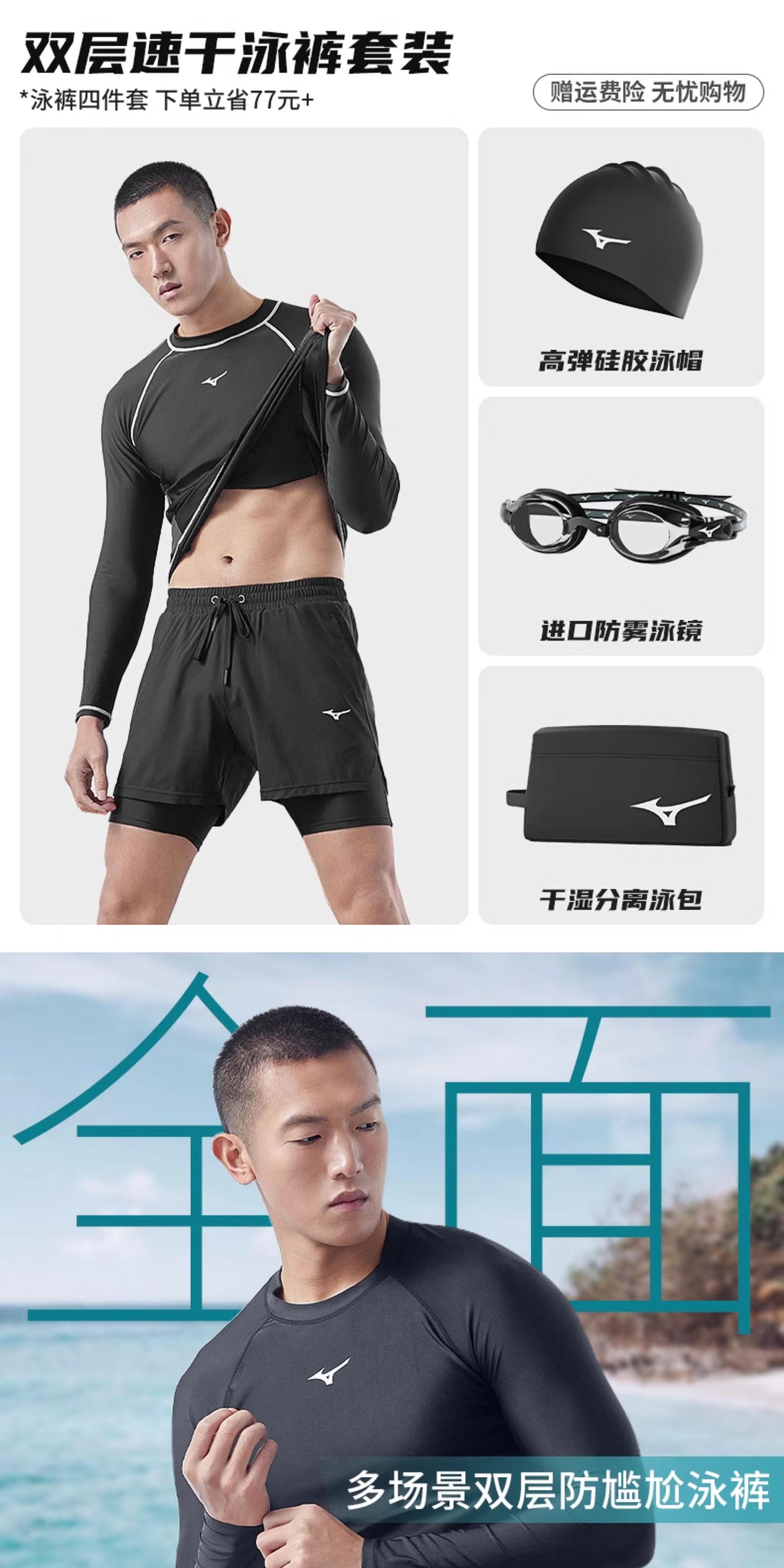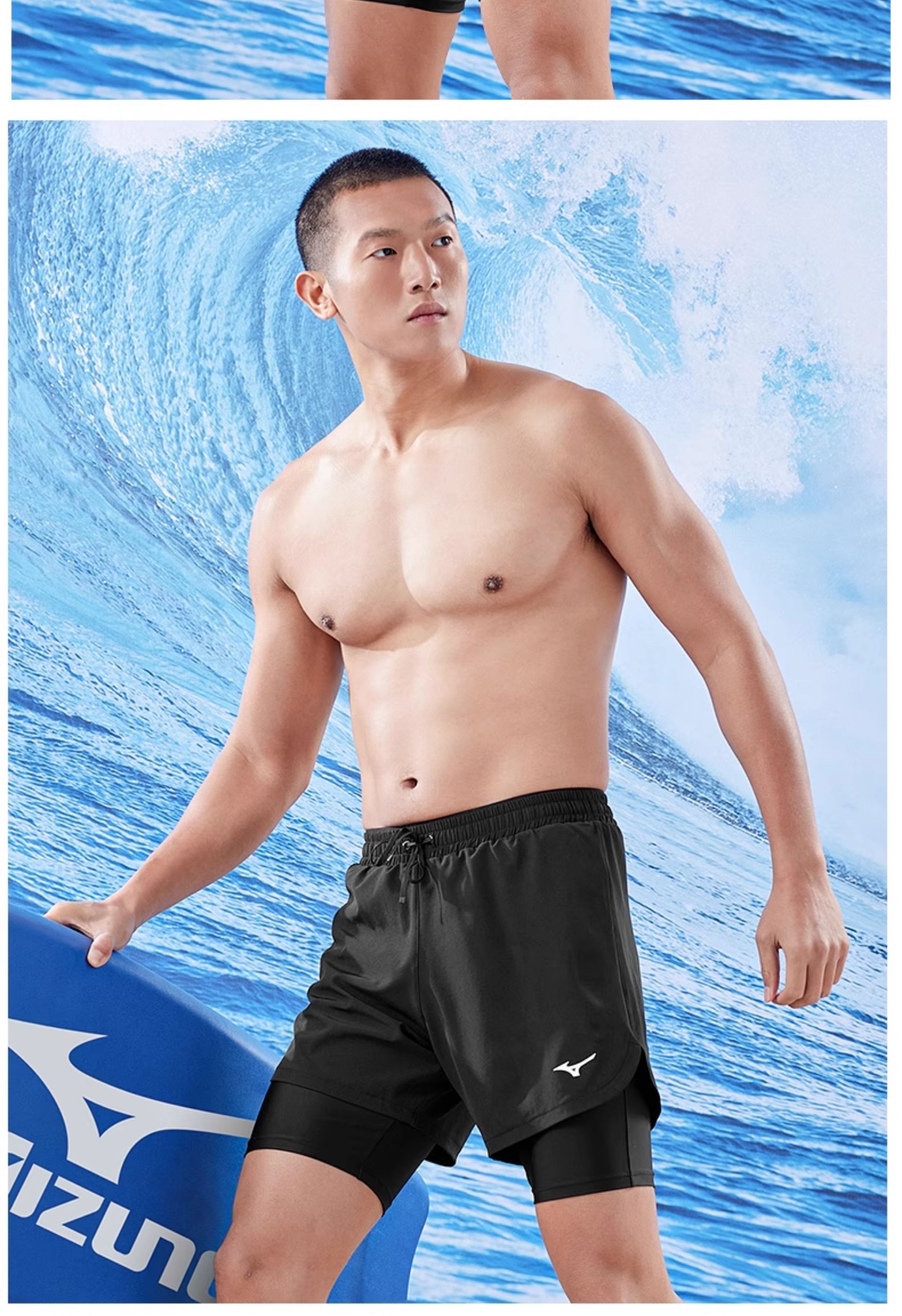 Mizuno Men's Swim Trunks Anti-Embarrassment Knee-Length Swim Trunks Swimming Goggles Swimming Cap Three-Piece Set Swimwear Full Set Swimming Equipment