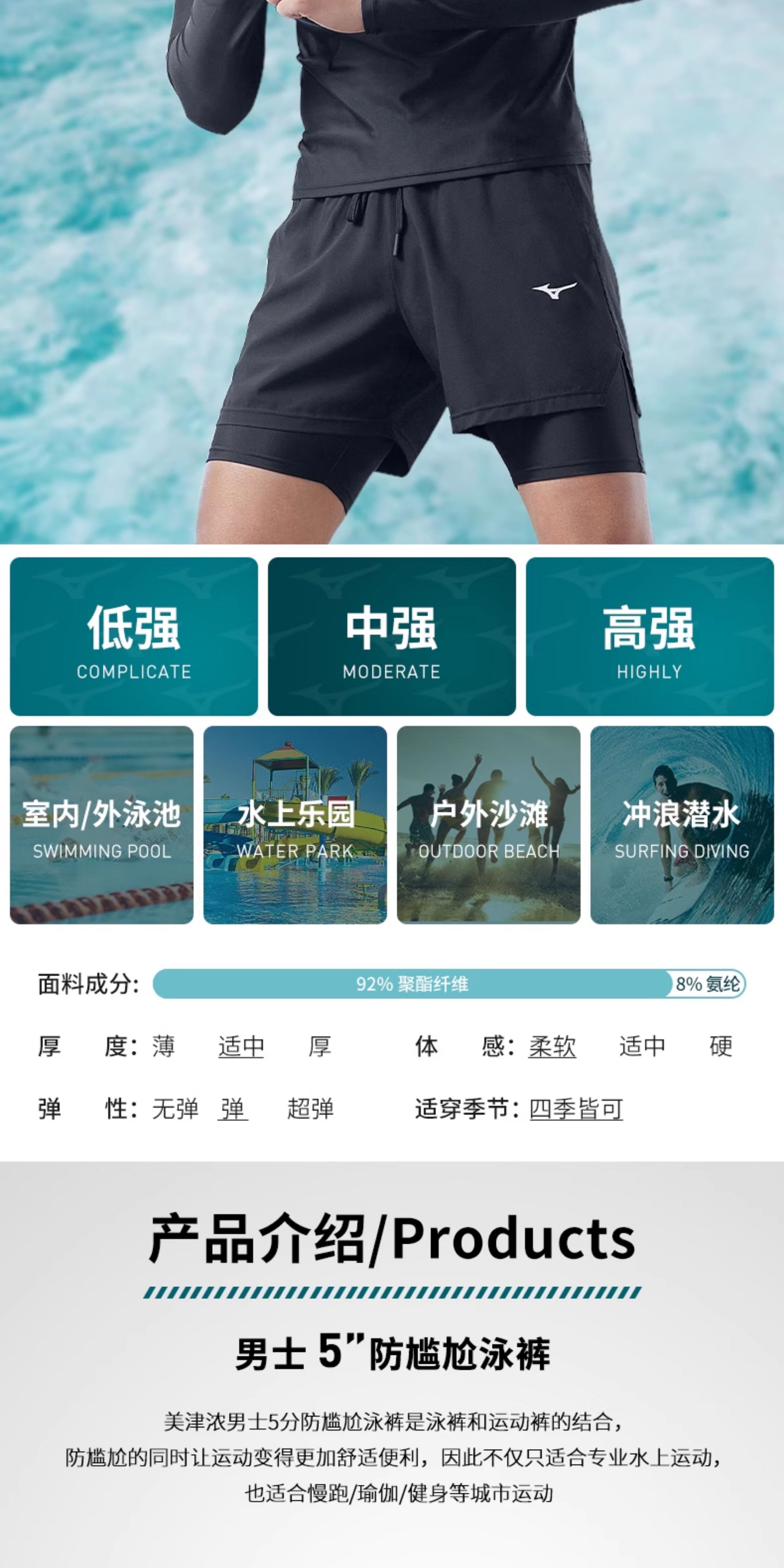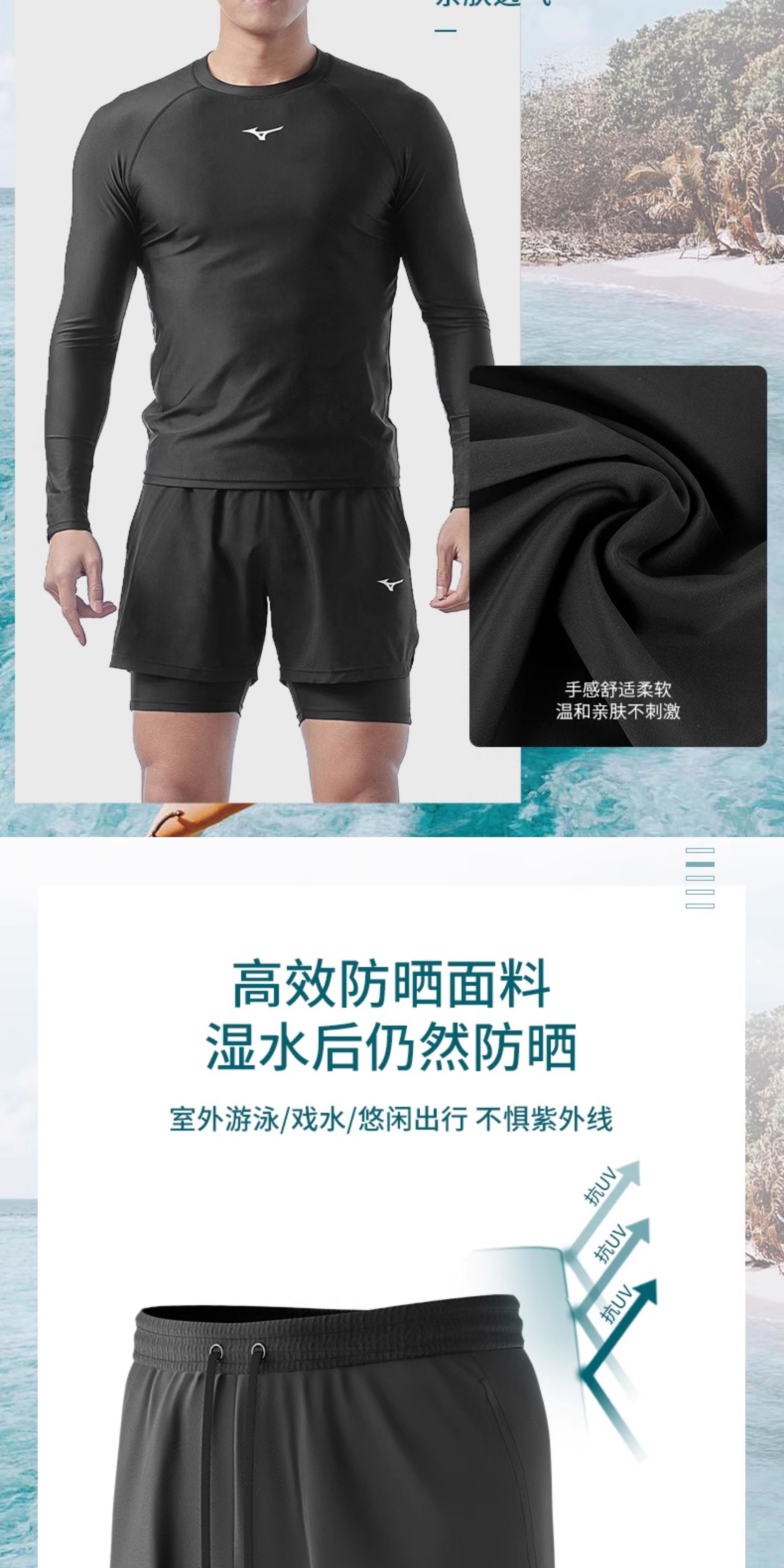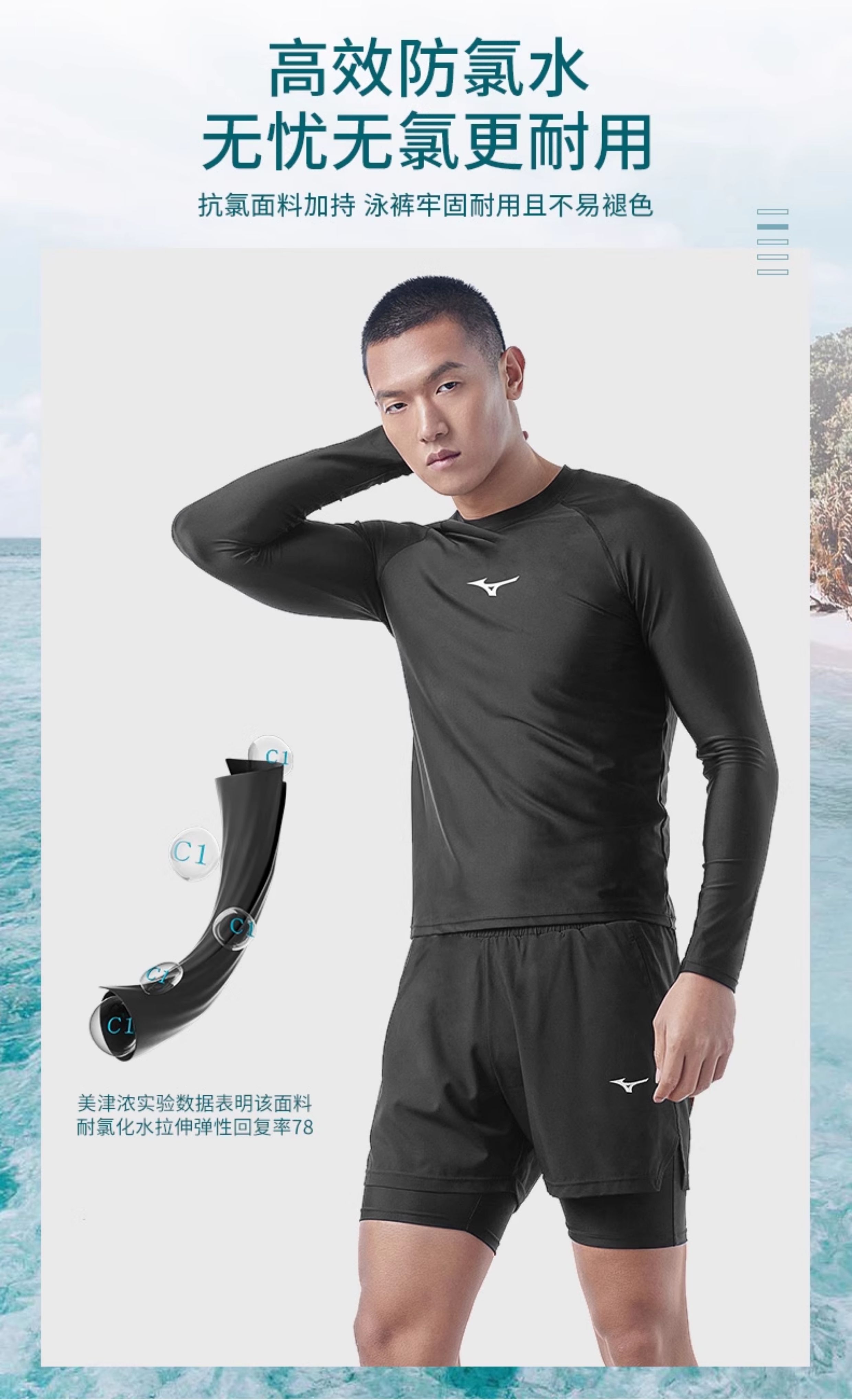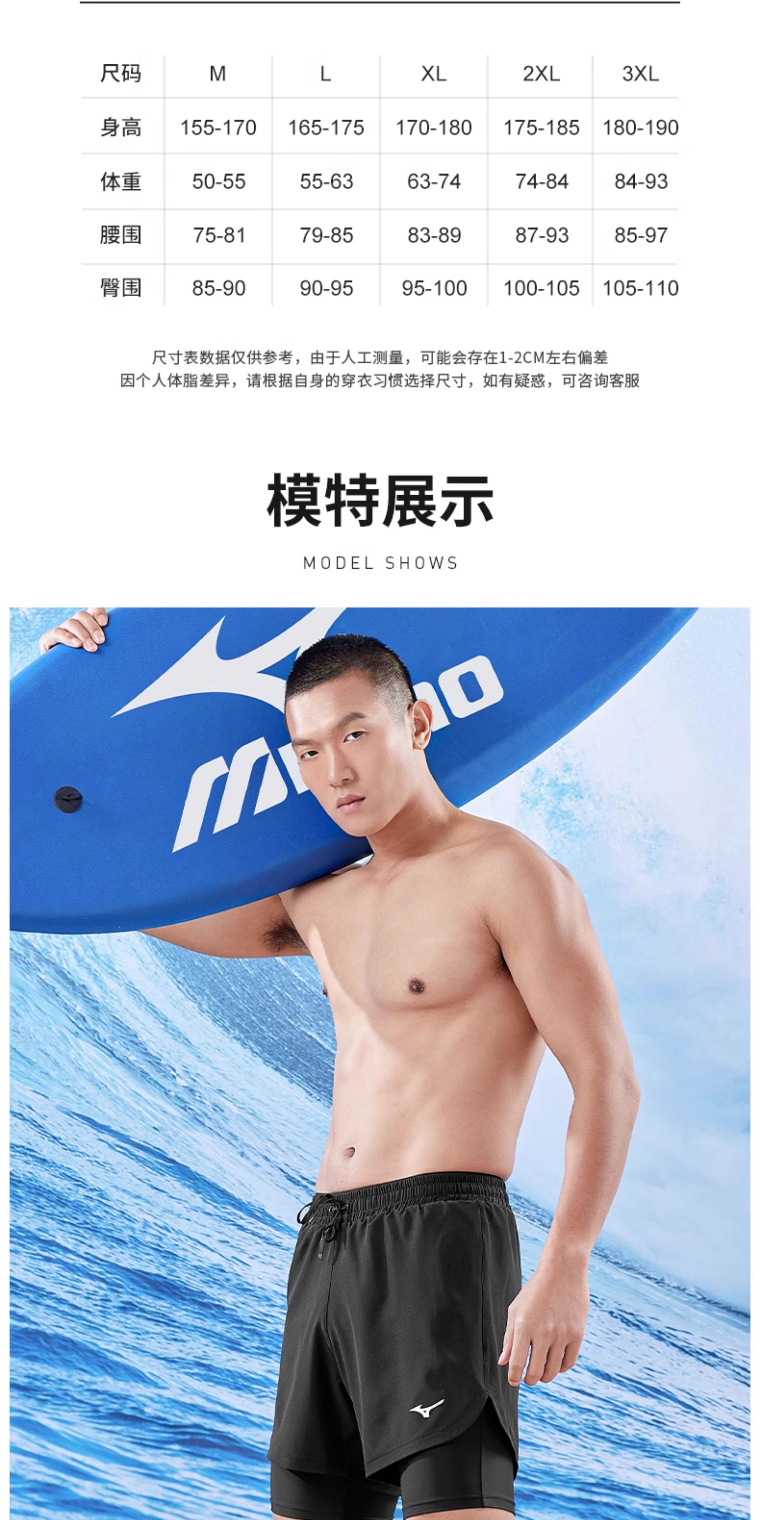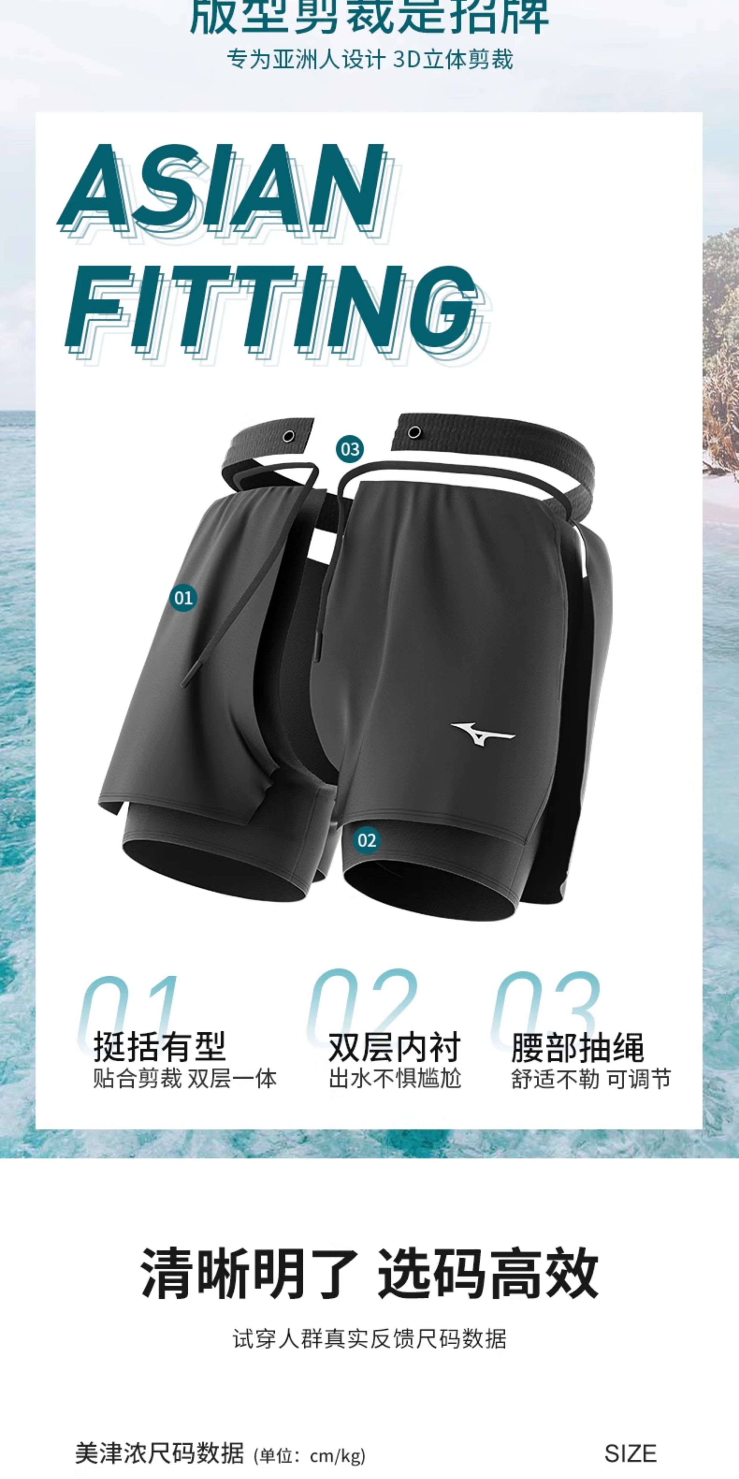 Mizuno Men's Swim Trunks Anti-Embarrassment Knee-Length Swim Trunks Swimming Goggles Swimming Cap Three-Piece Set Swimwear Full Set Swimming Equipment