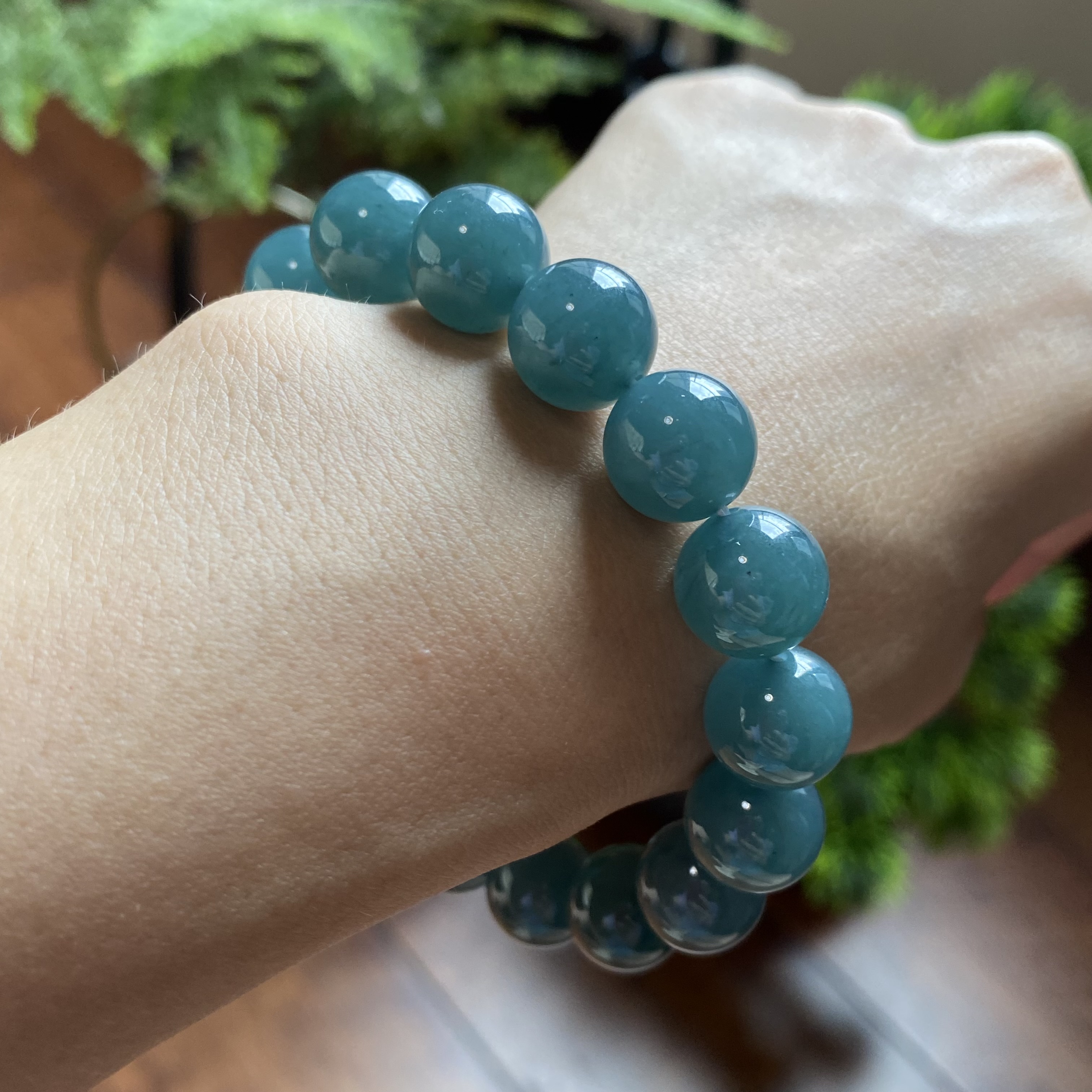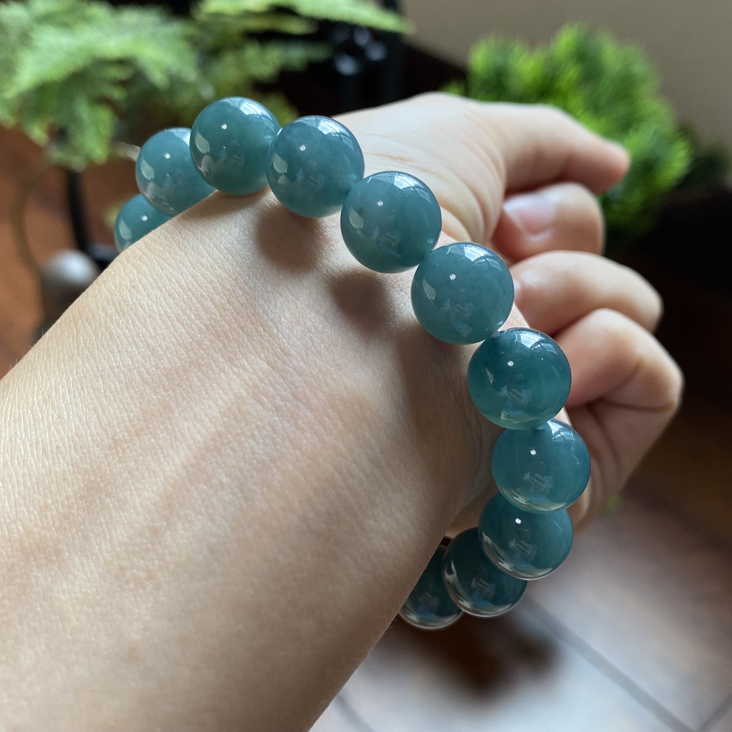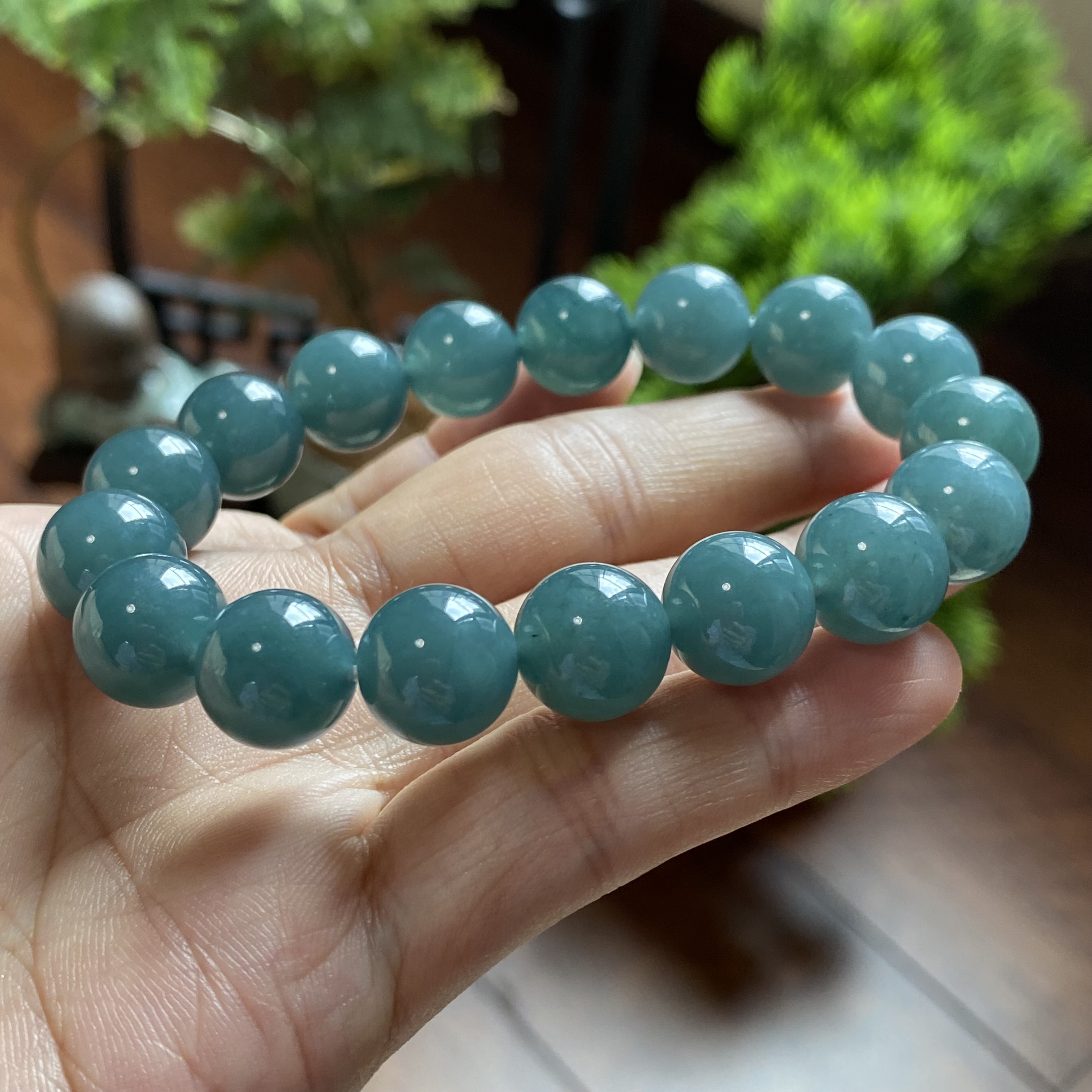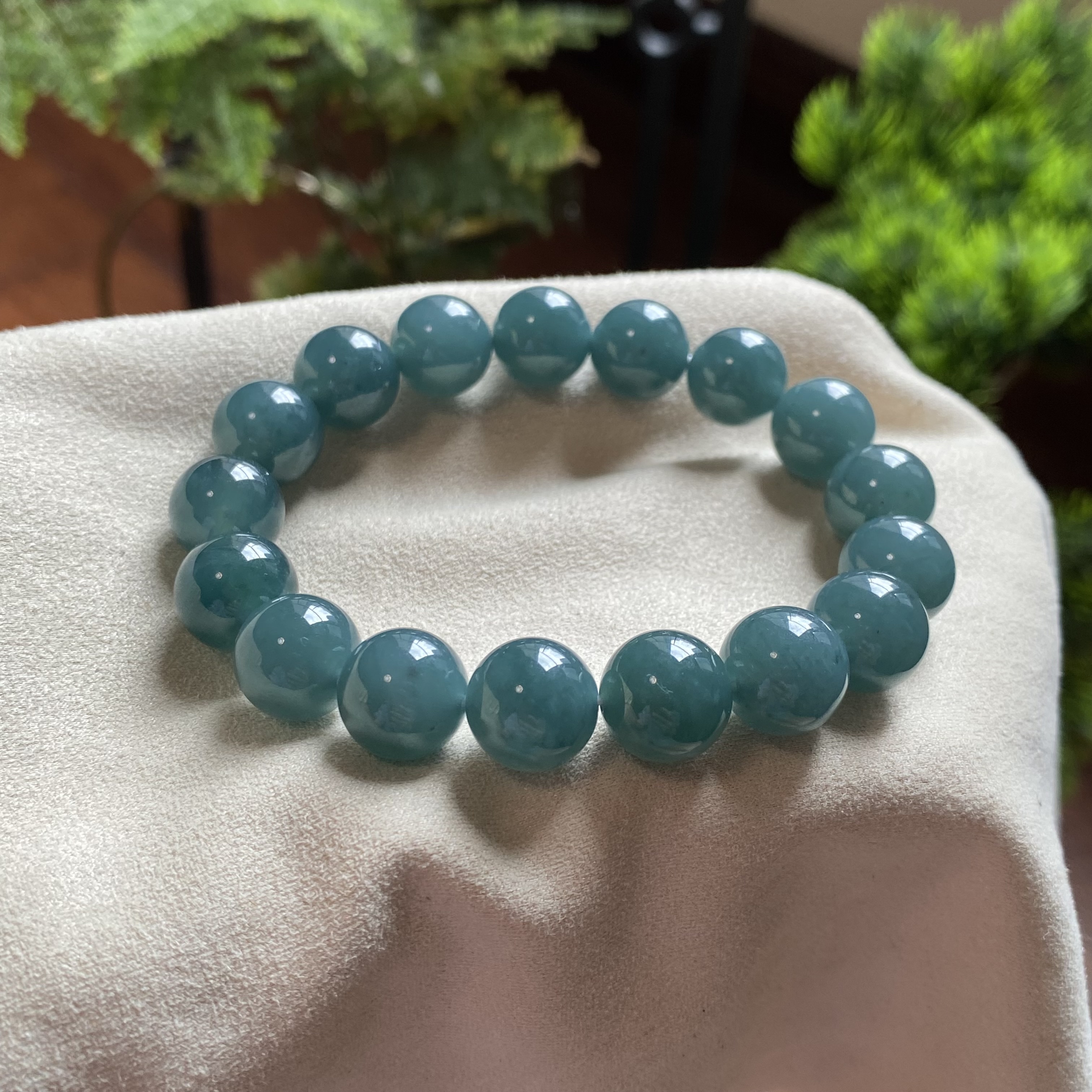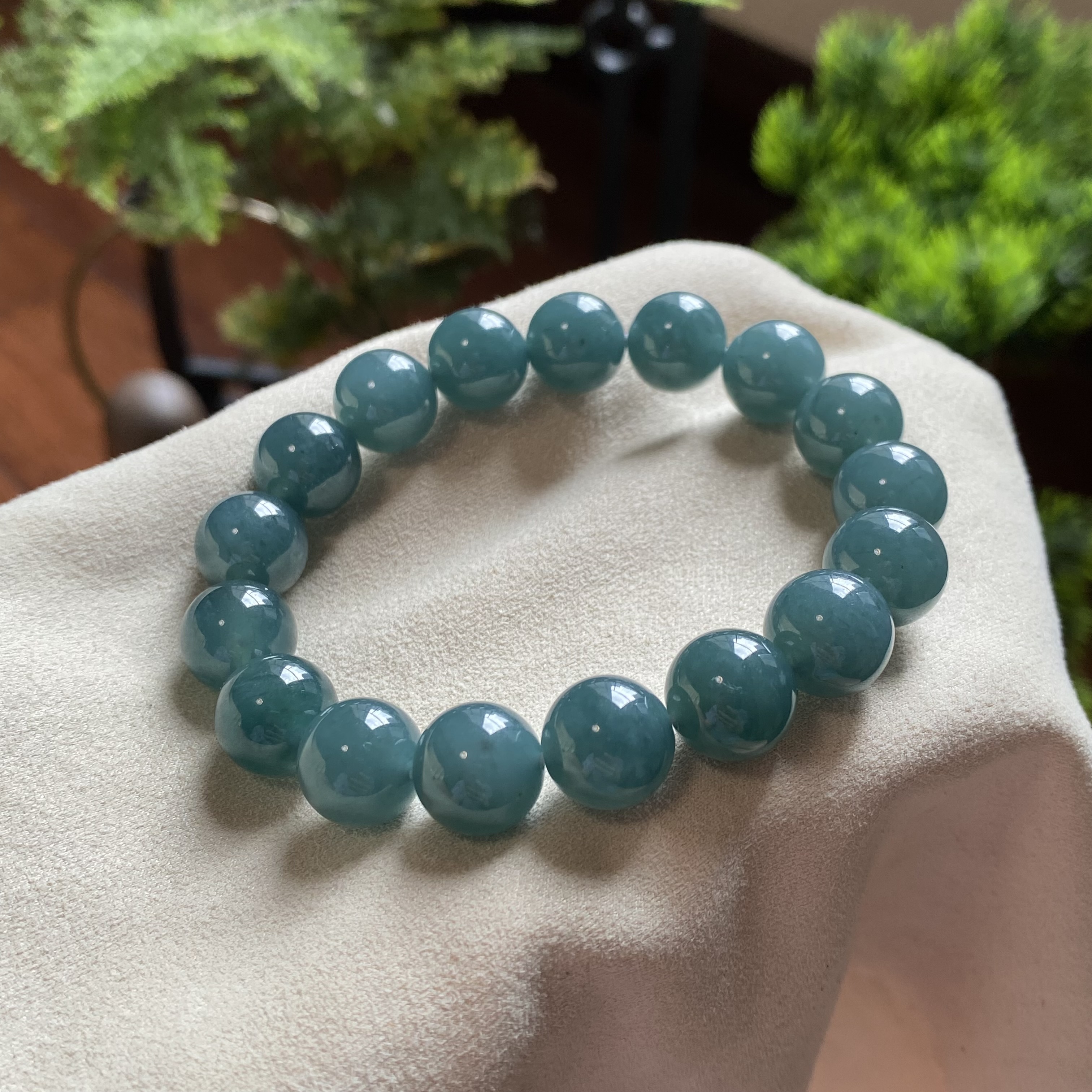 Natural Jade A-Grade Ice Type Dark Blue Water Round Bead Bracelet for Men and Women P 11.8