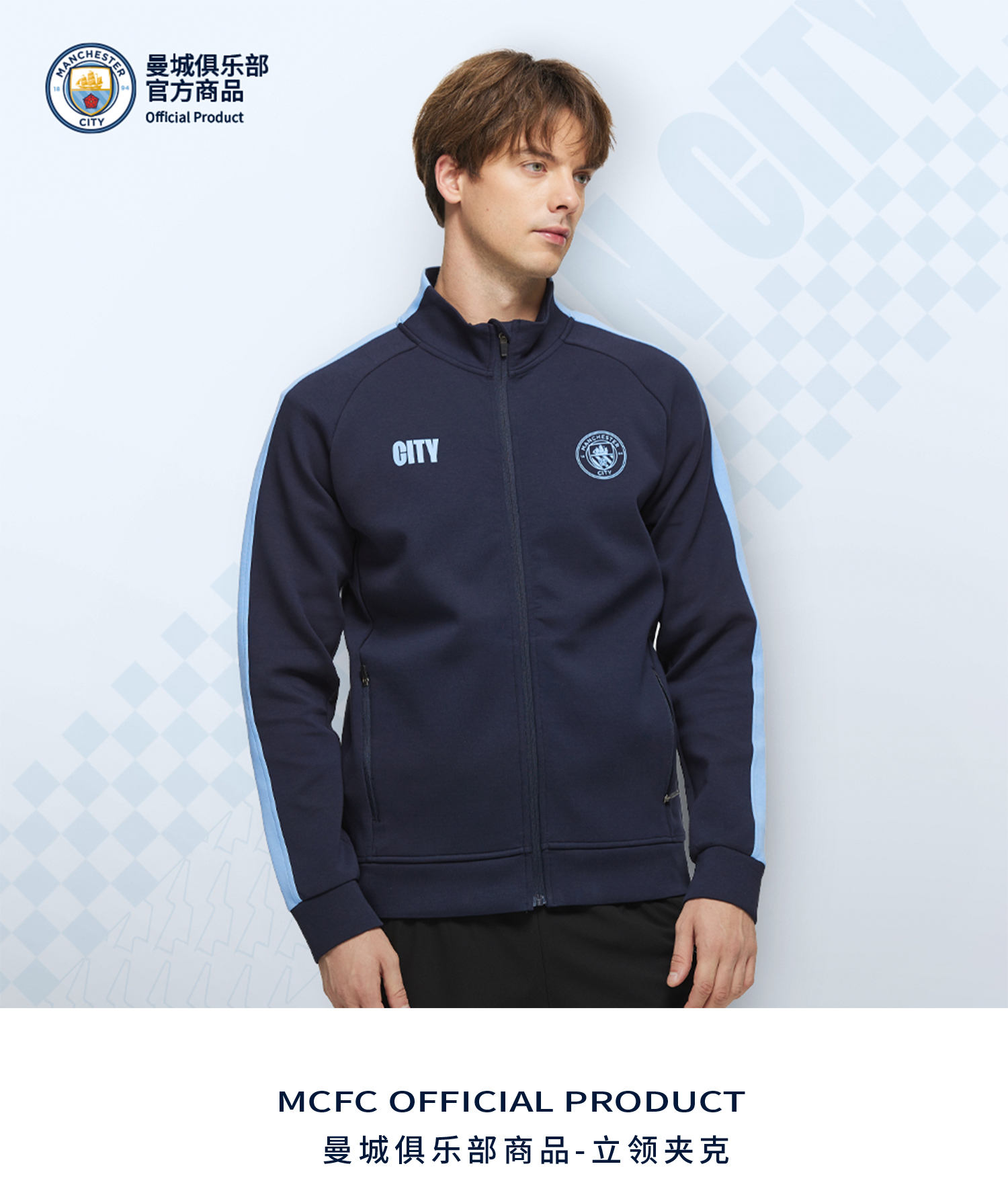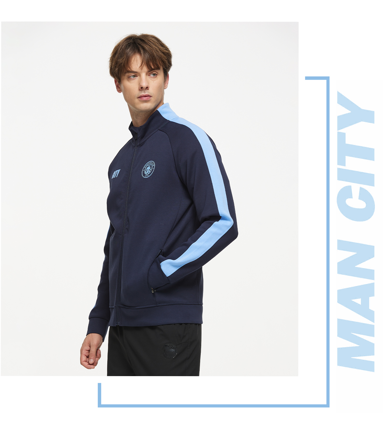 [Official Authentic Product] Manchester City Football Club | Team Emblem Style Blue Patchwork Stand-Up Collar Jacket Sports Coat Football