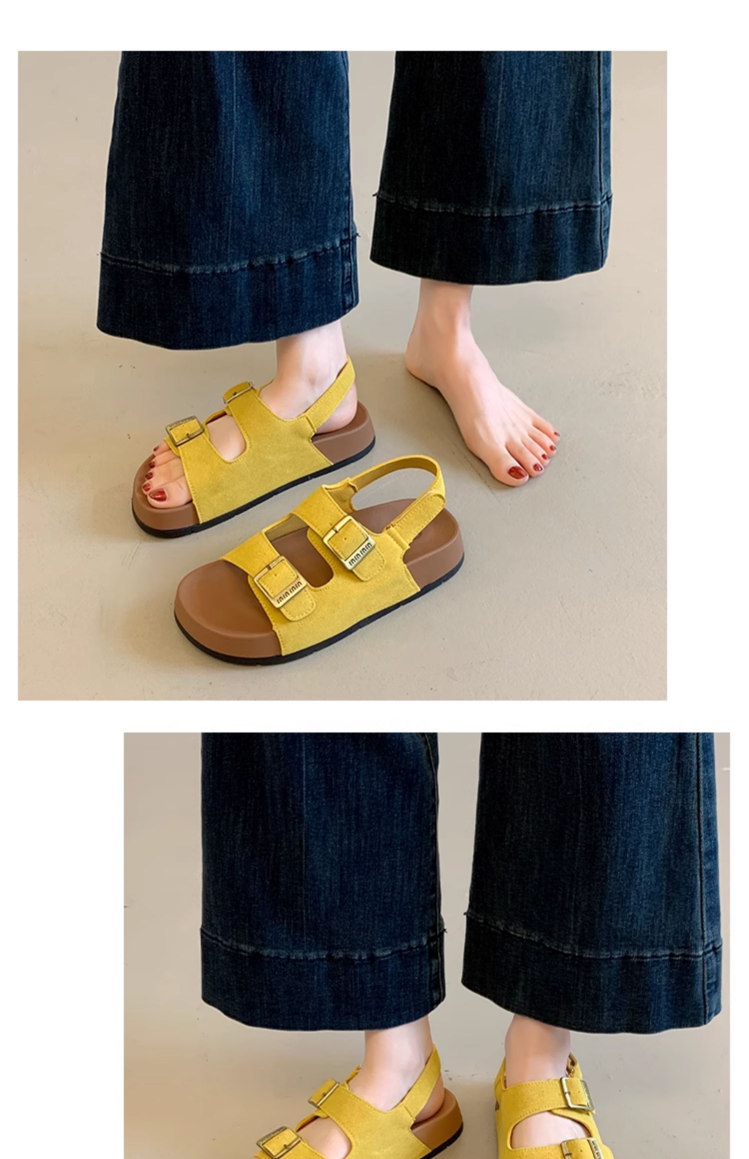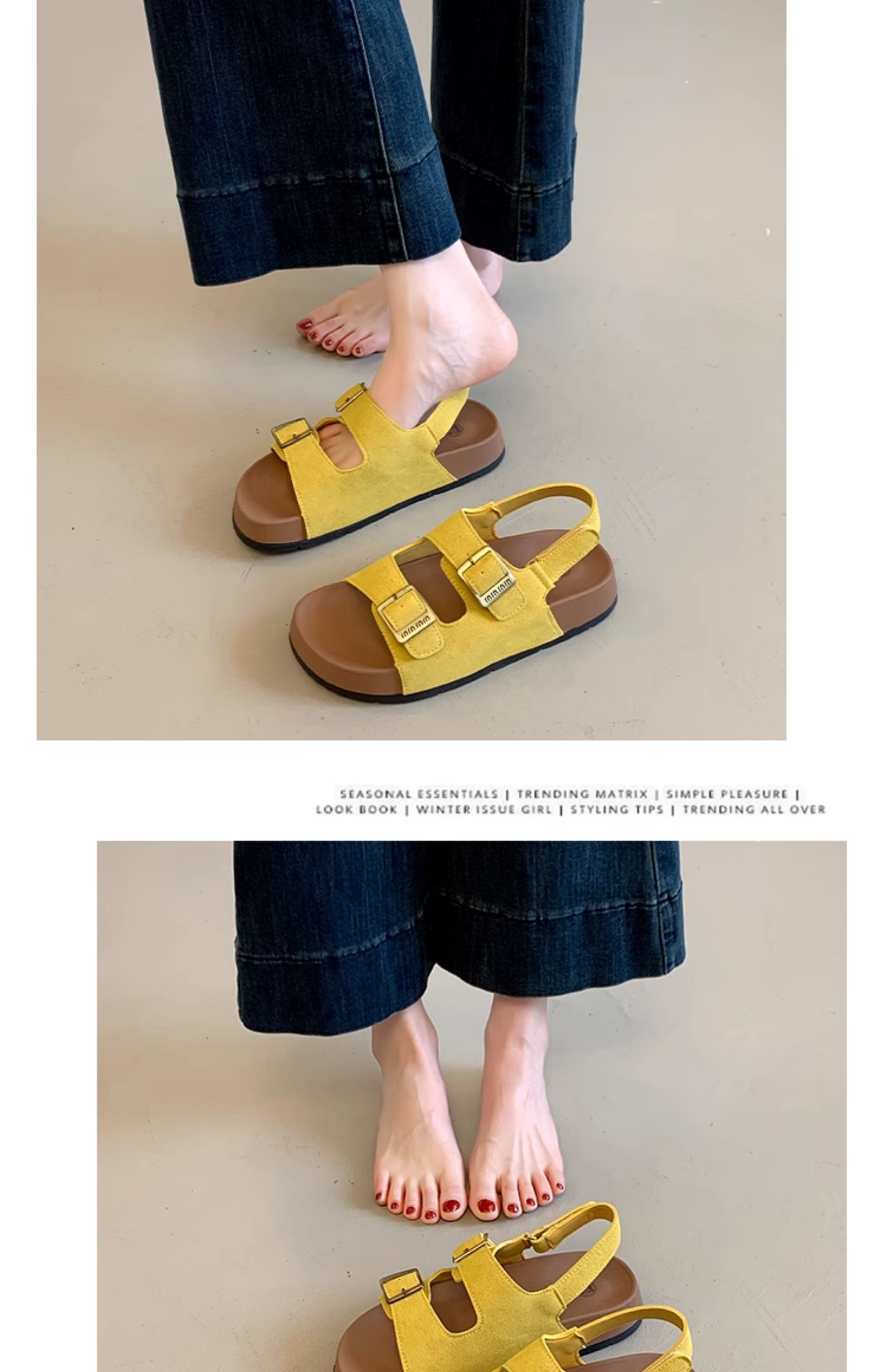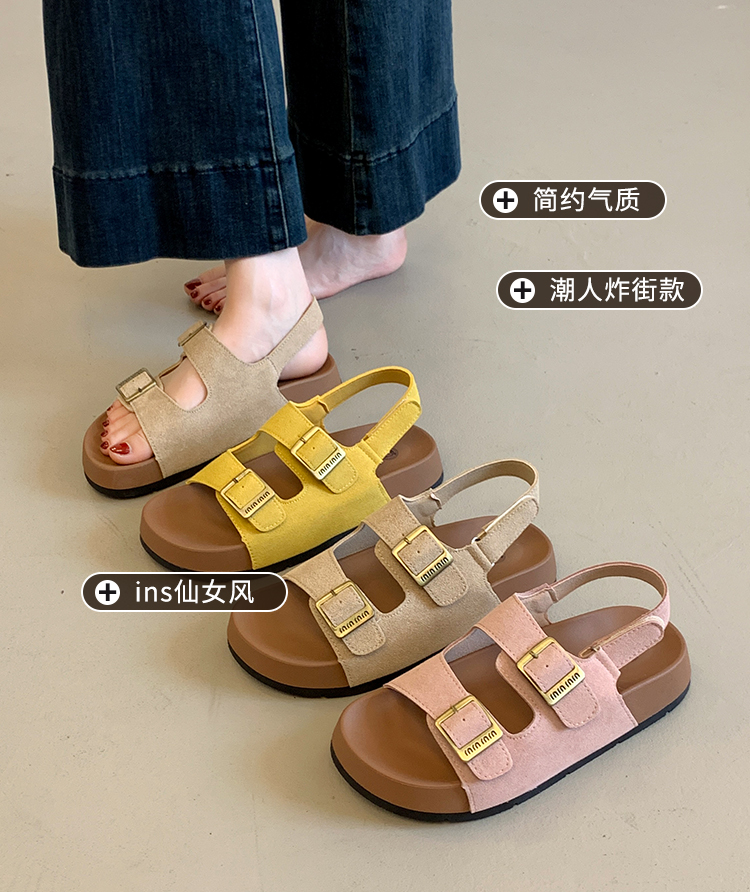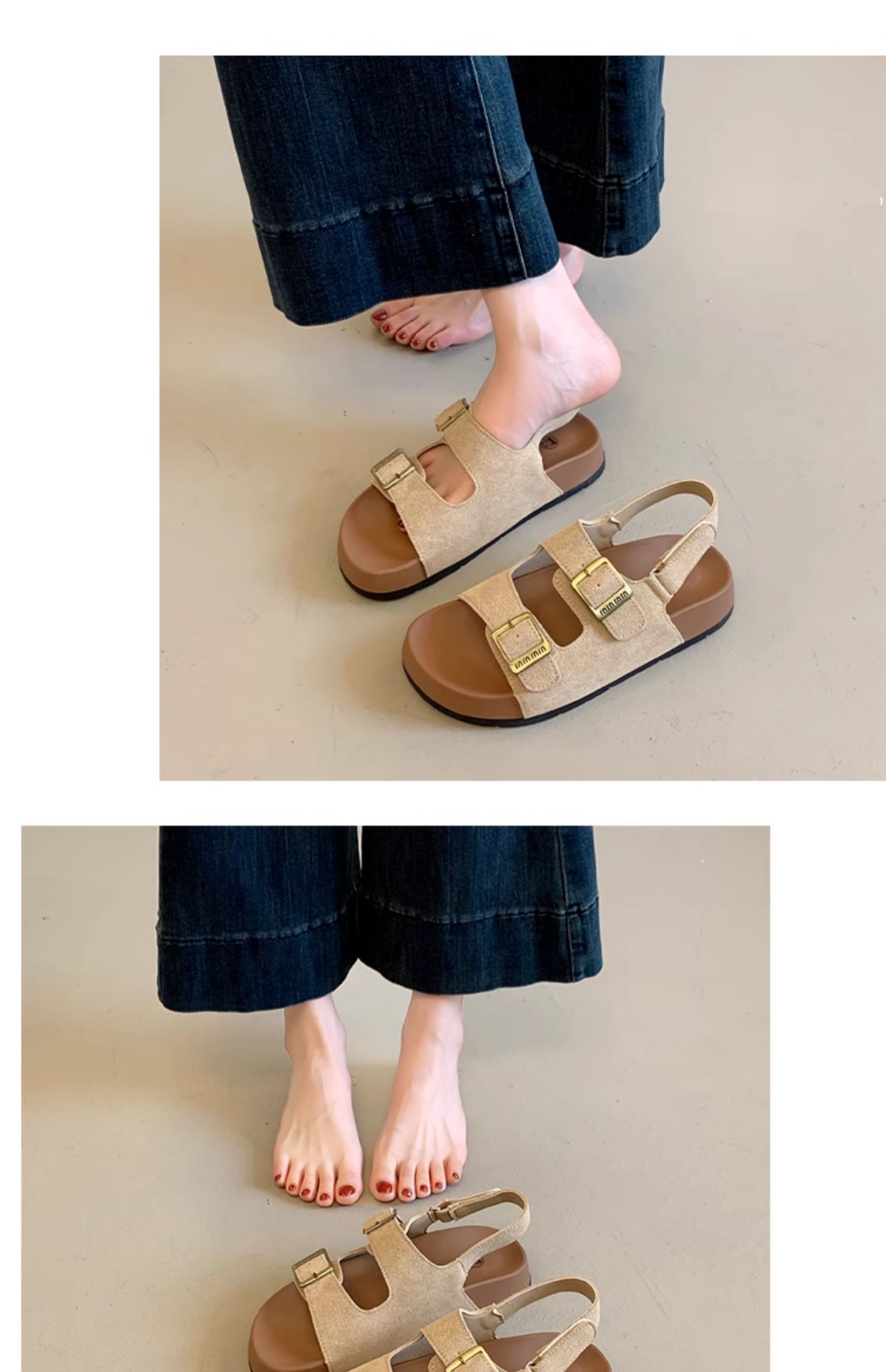 Velcro Thick-Soled Birkenstock Sandals for Women, Summer Outerwear, 2025 New Versatile Style, Suitable for Pregnant Women, Comfortable Beach Roman Shoes