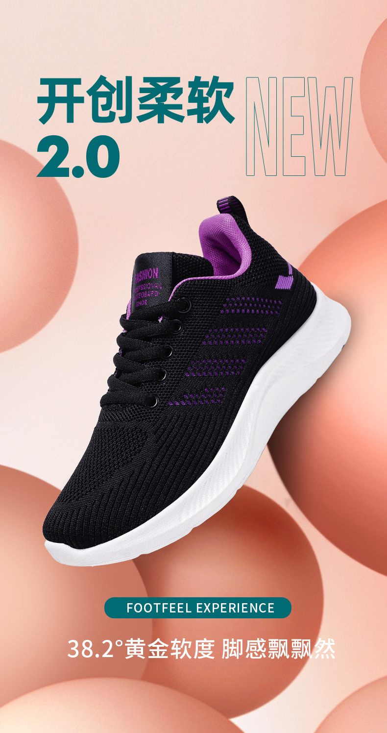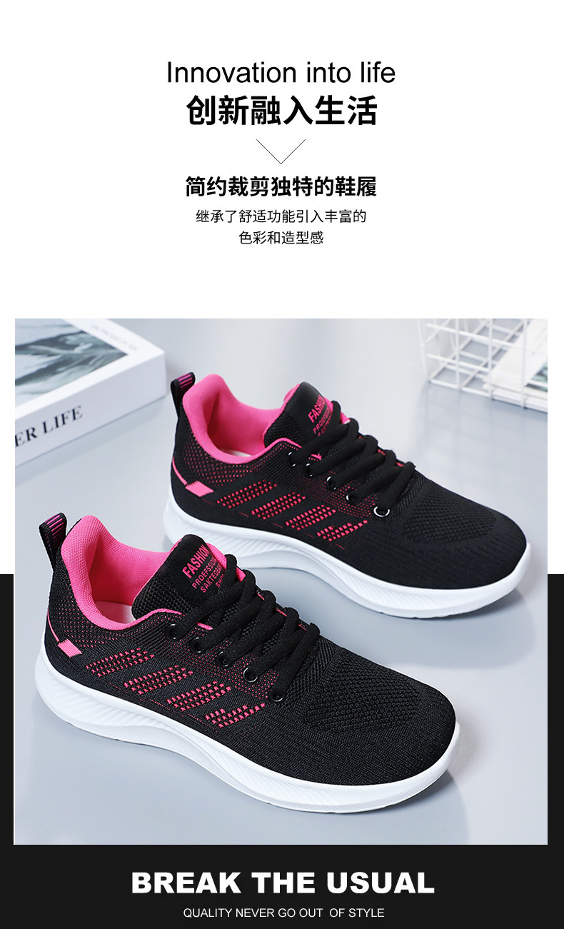 Women's Shoes 2024 Casual Soft-Soled Comfortable Non-Slip Sneakers Breathable Single Shoes Fly-Knit Mesh Shoes Running Shoes for Women