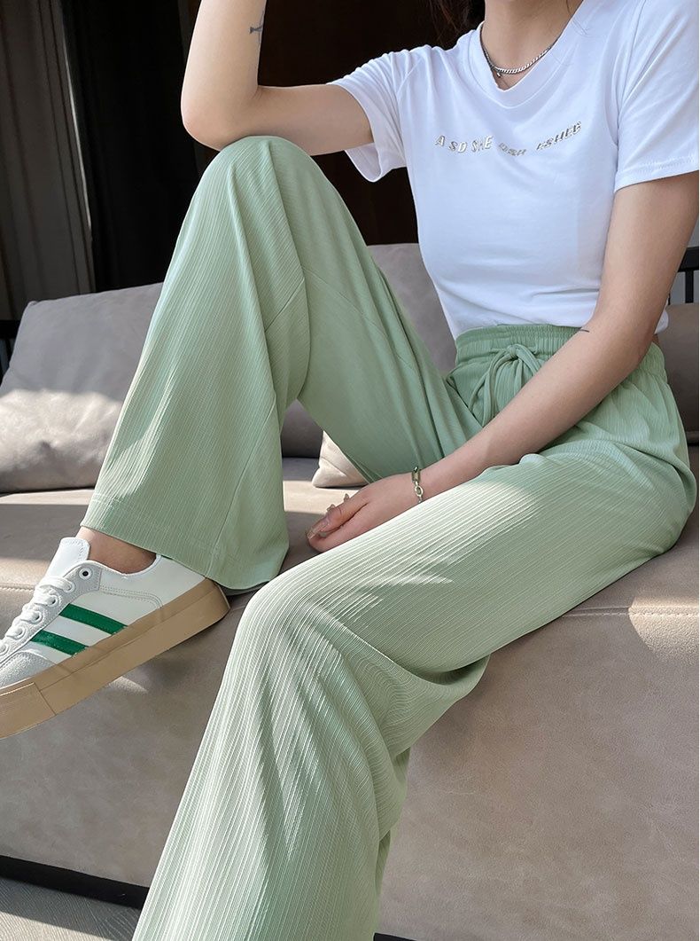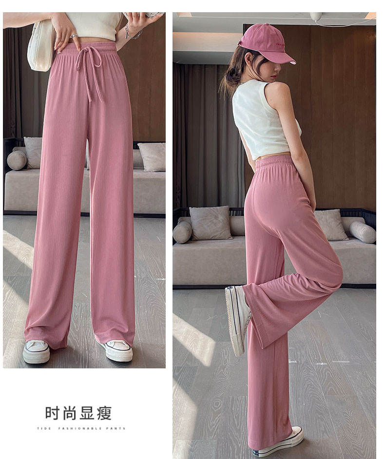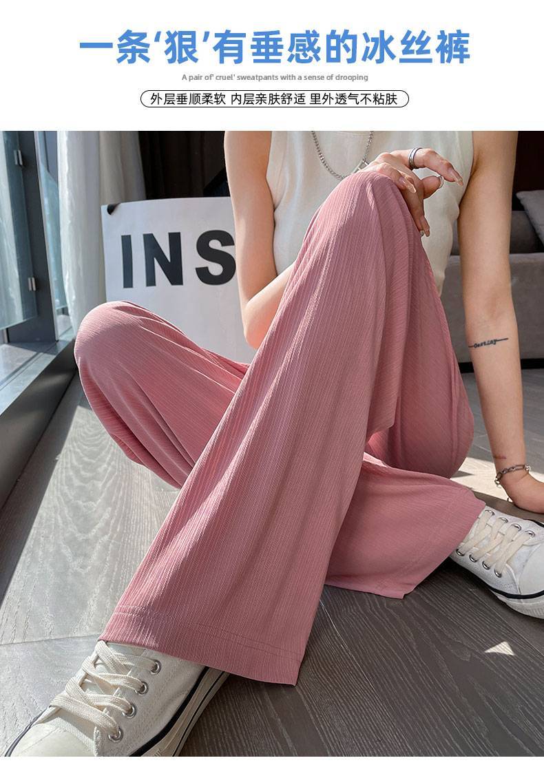 The Store Has Withdrawn the Discount on Genuine Women's Wide-Leg Pants from the Foreign Trade Mall, Summer Sun-Protective Pink Ice Silk Casual Pants