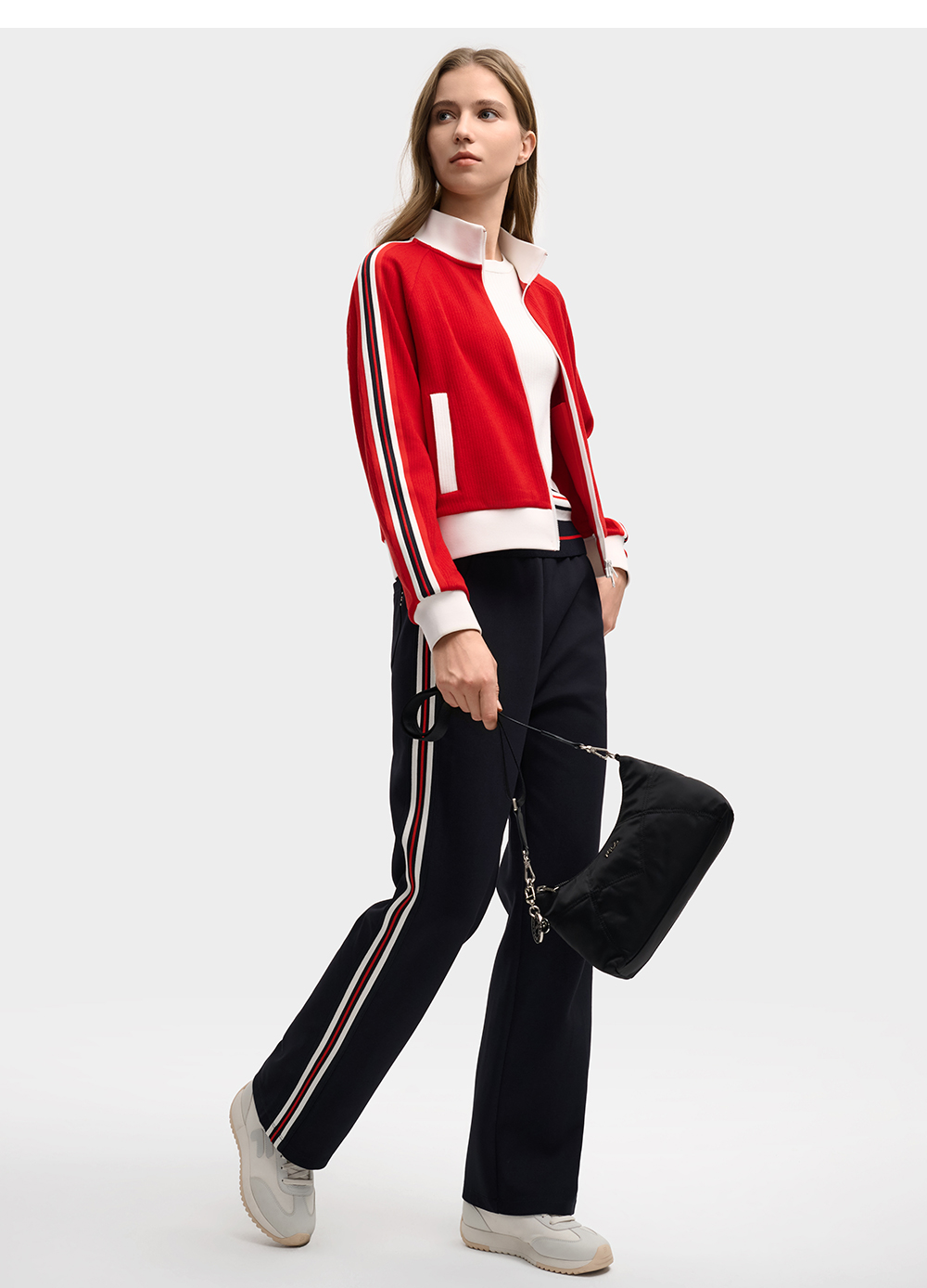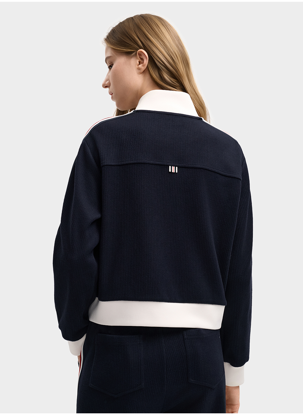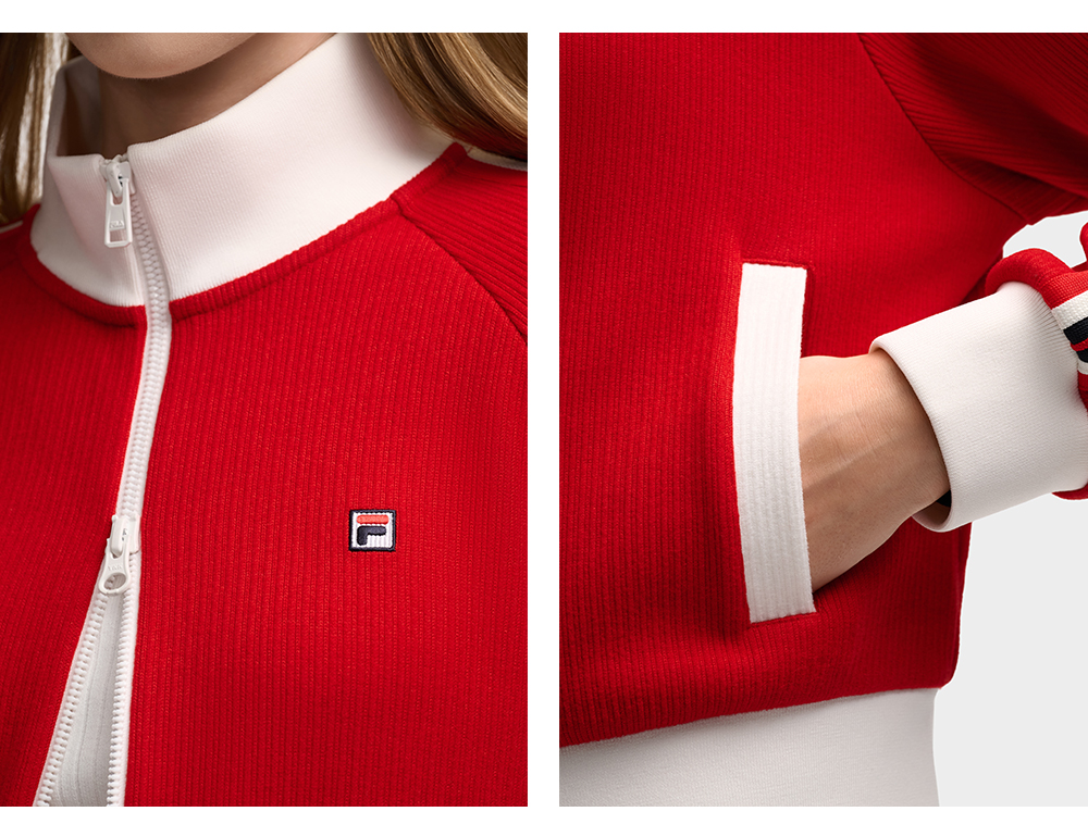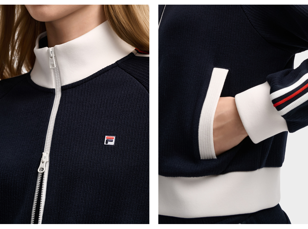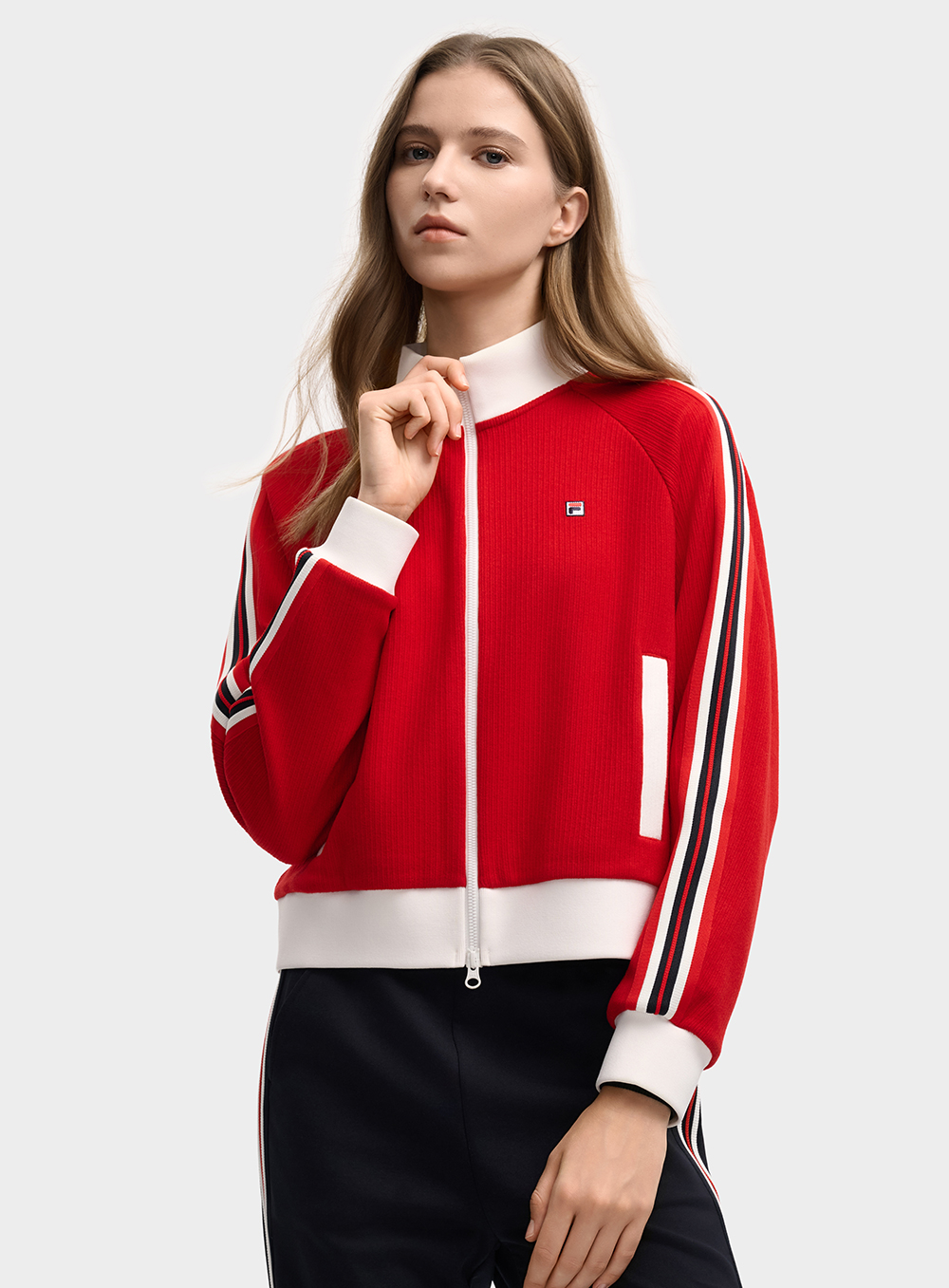 Fila Official Women's Knitted Long-Sleeve Jacket 2025 Winter New Casual Loose Color-Block Stand Collar Top