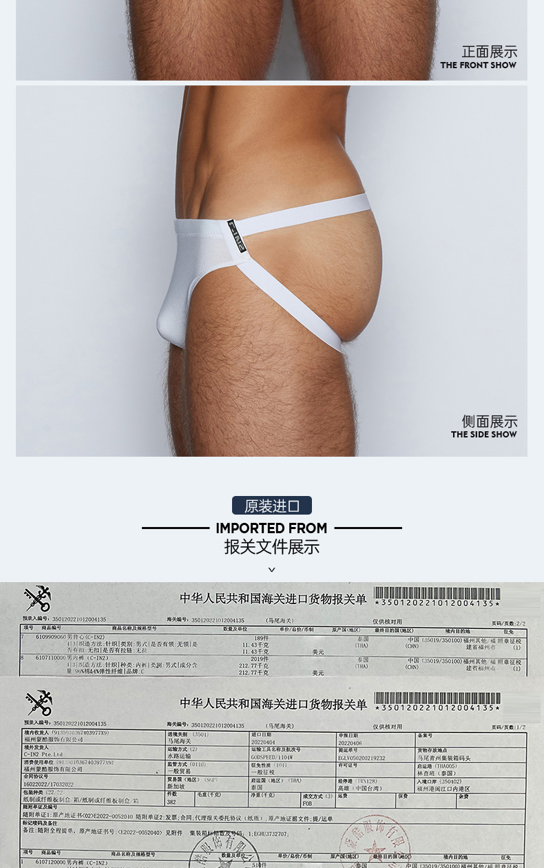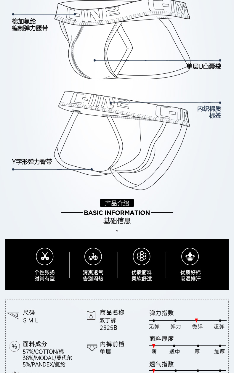 C-In2 Summer New Product Thong Underwear Cotton and Modal U-Convex Revealing Buttocks Lightweight Sexy Men's Double Thong 2325Ab