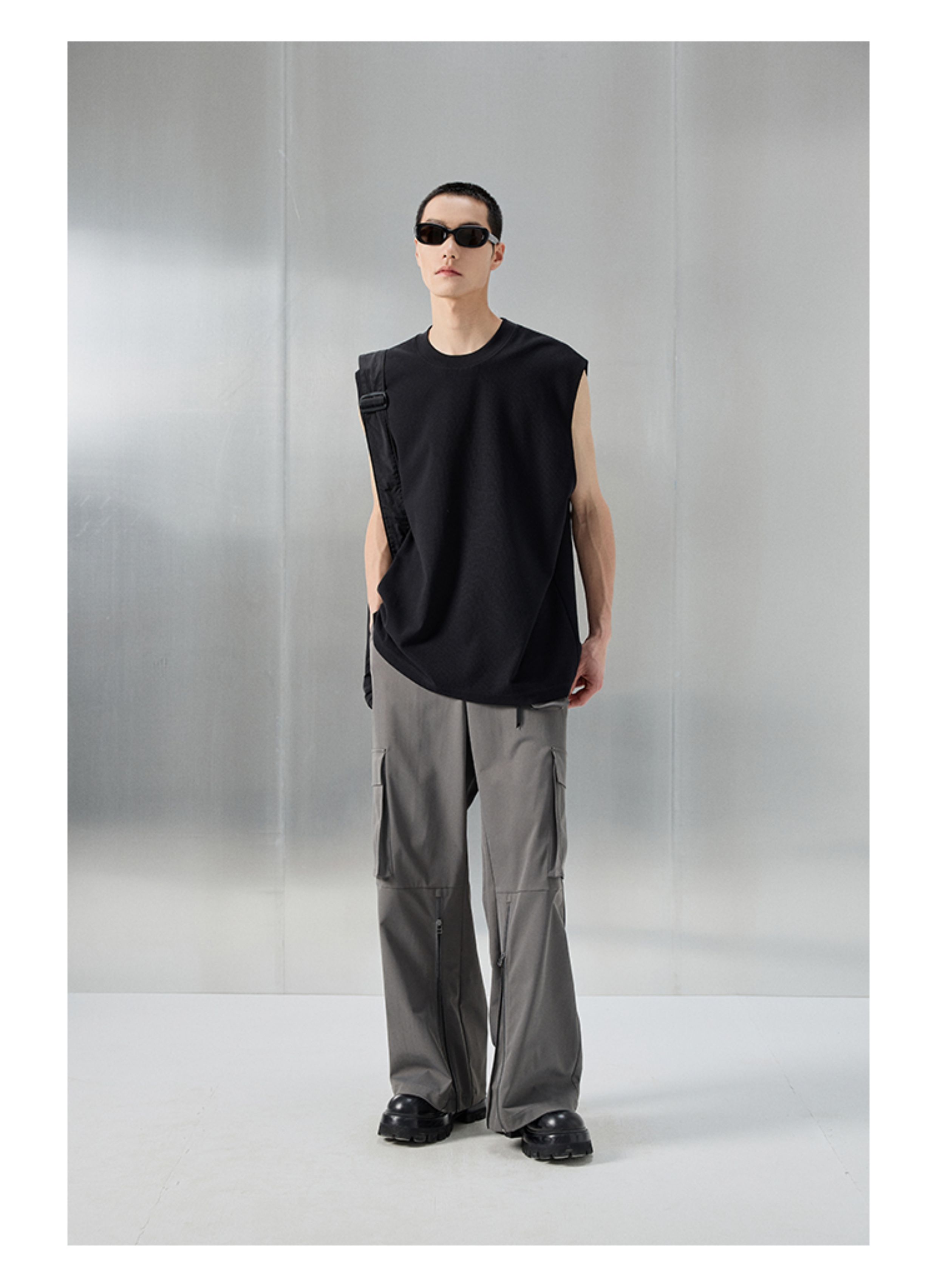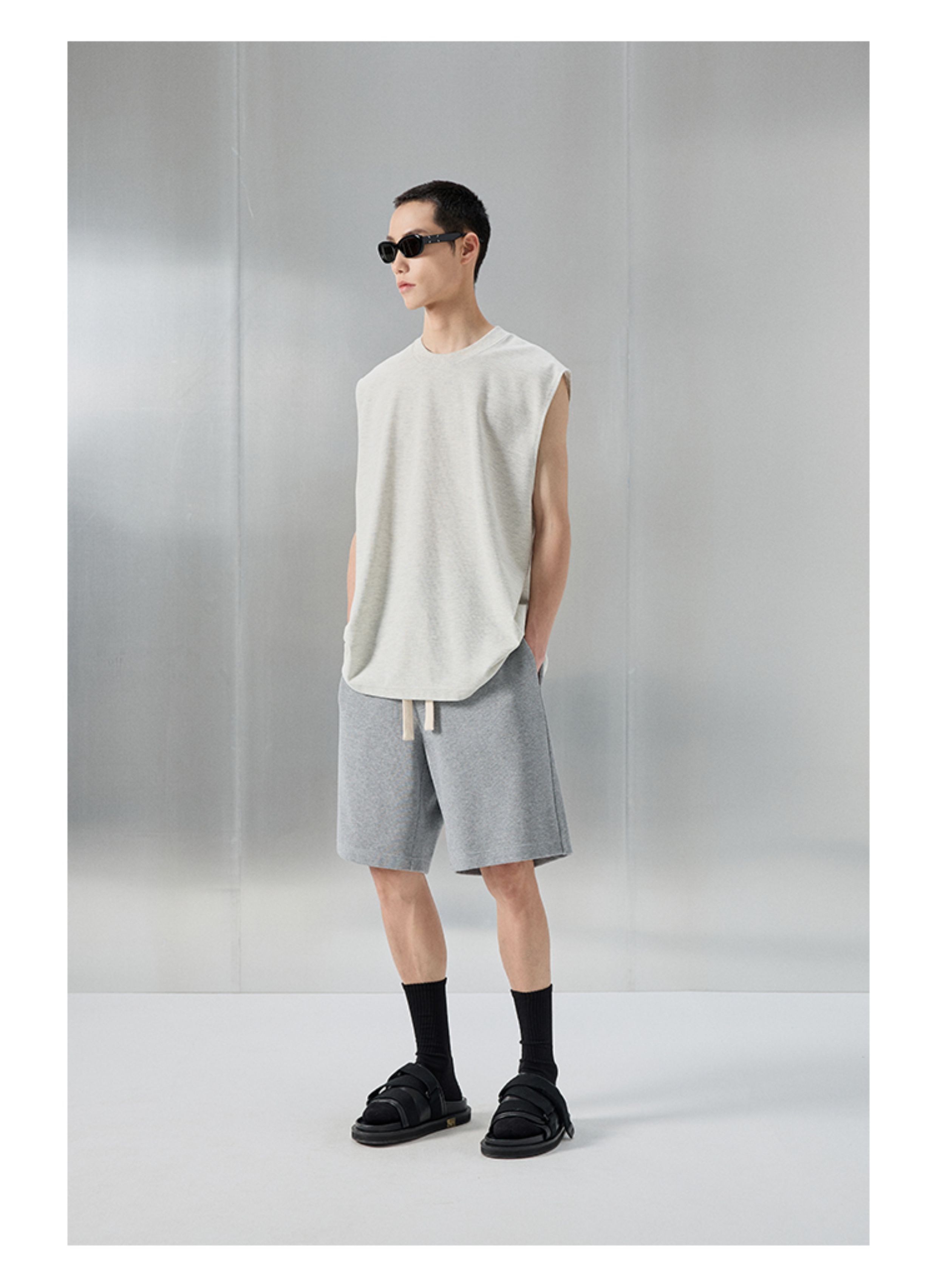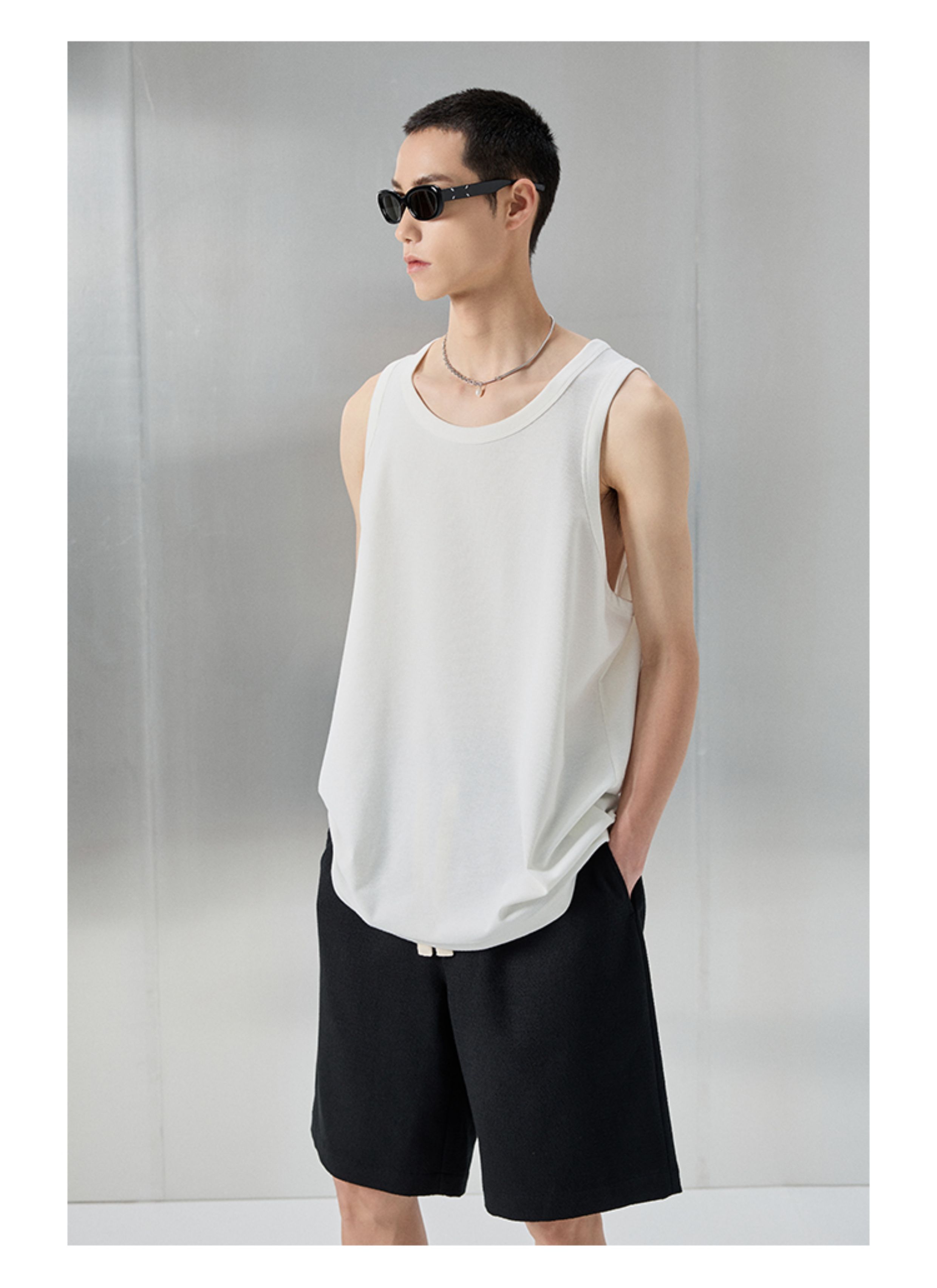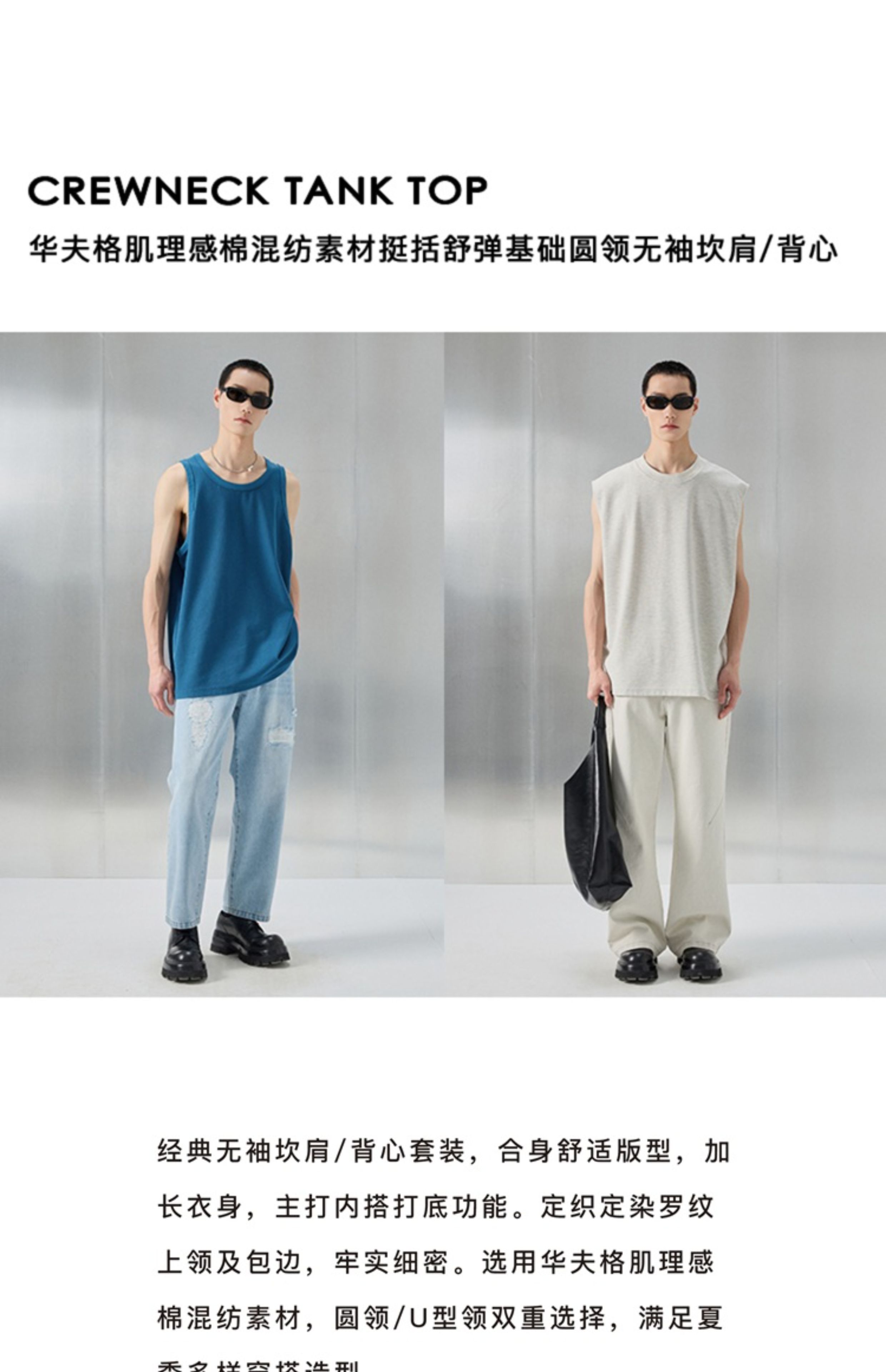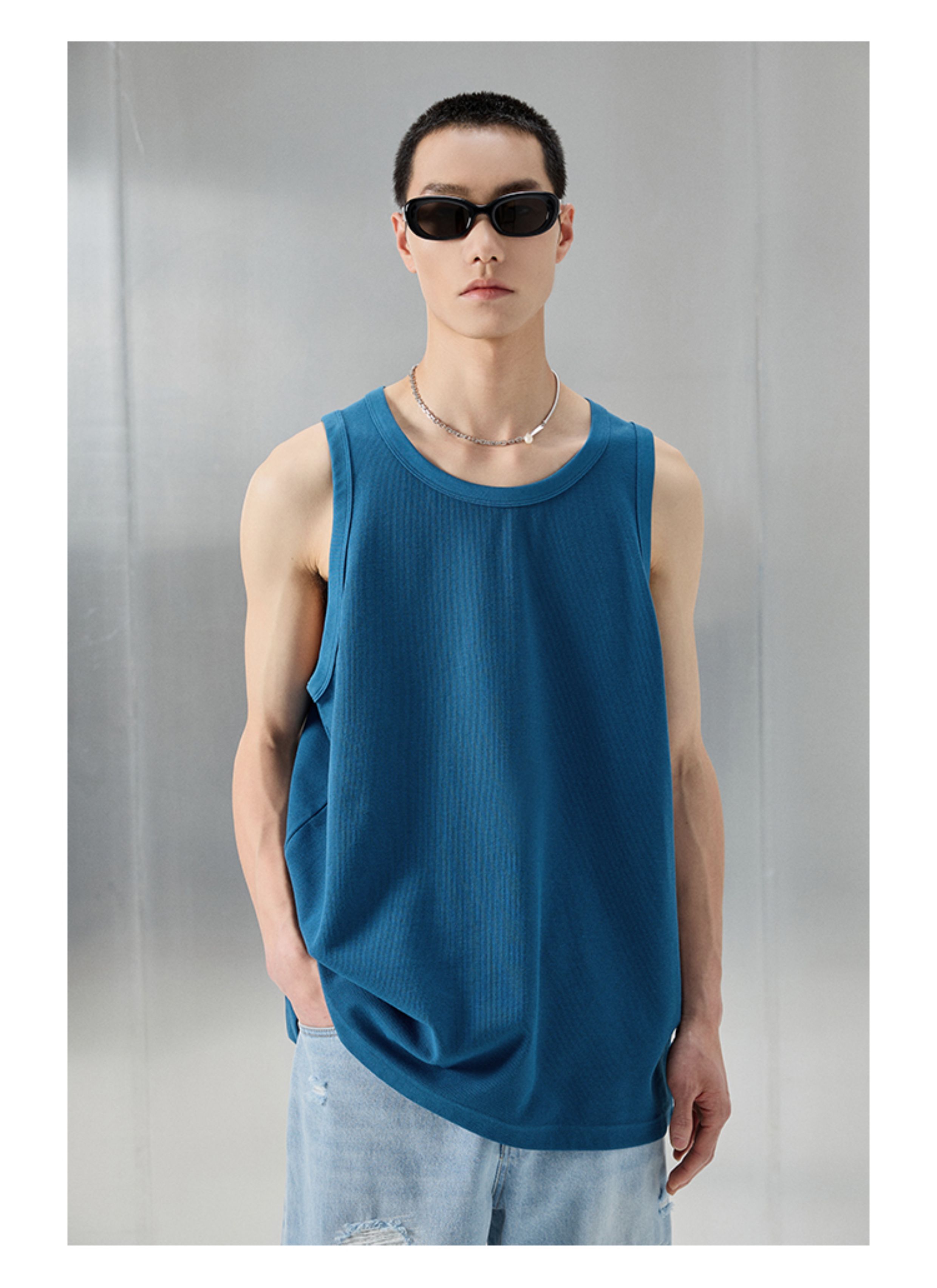 Nans Waffle-Textured Cotton-Blend Material, Crisp and Stretchy, Basic Round-Neck Sleeveless Vest