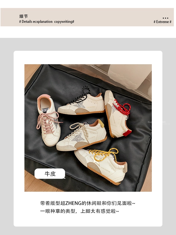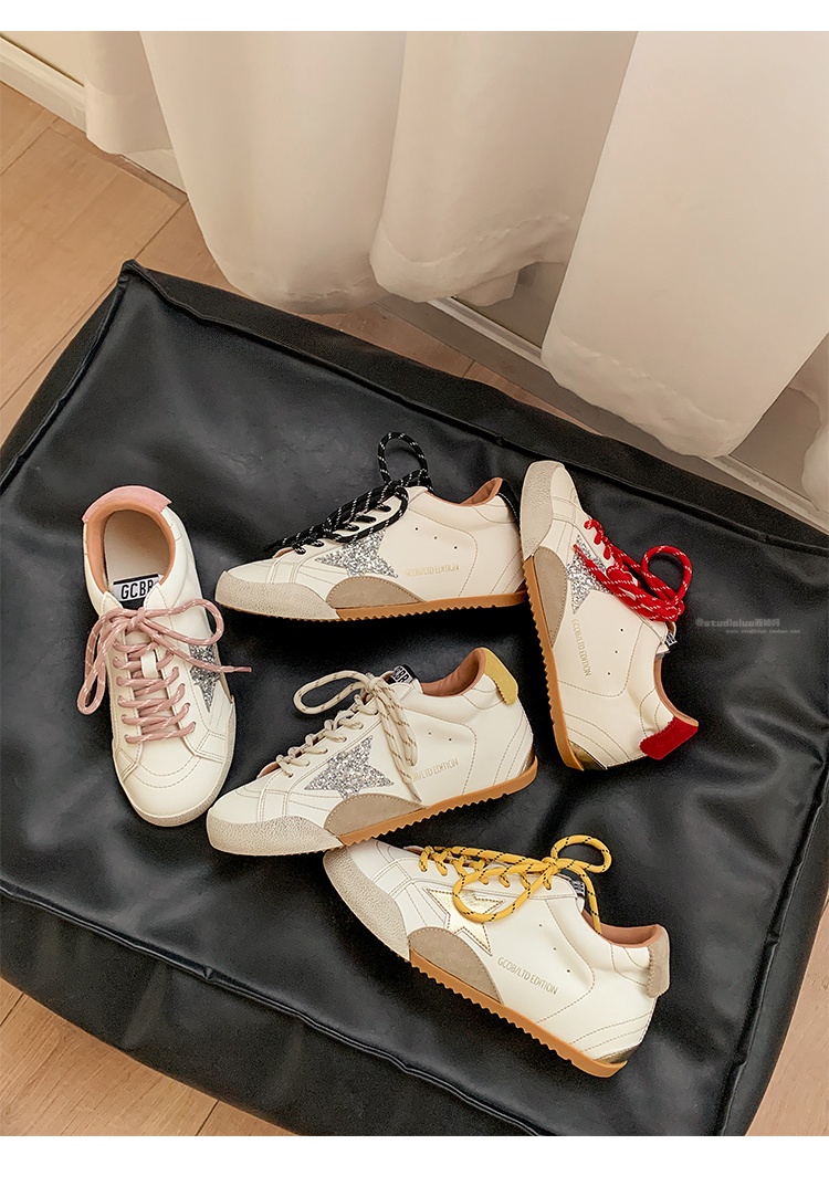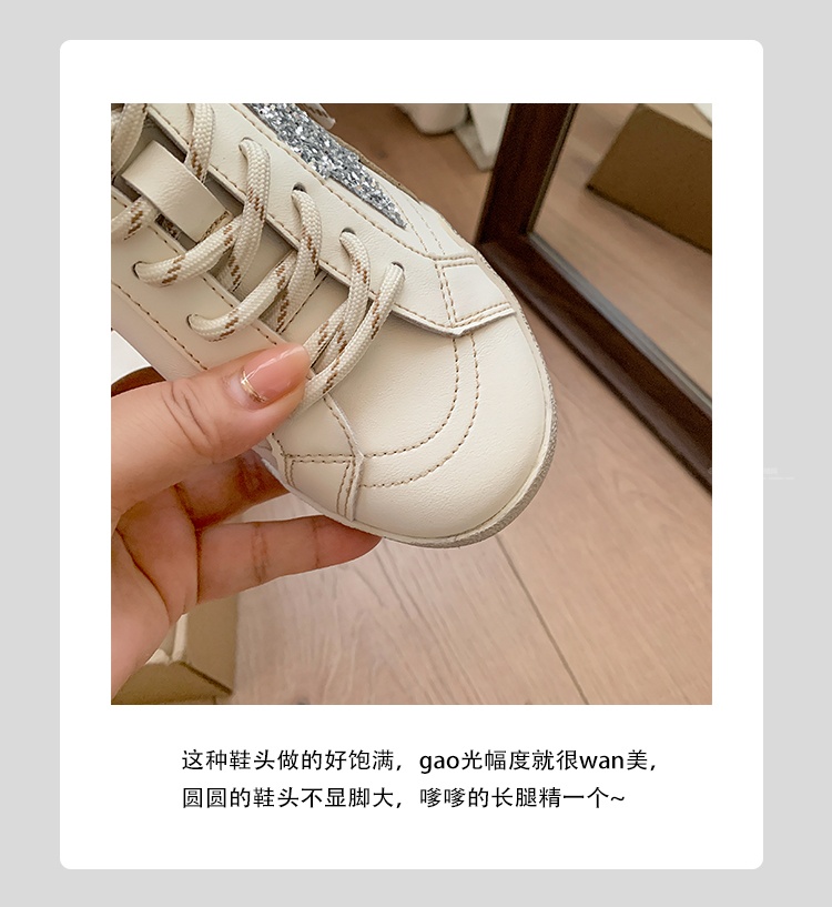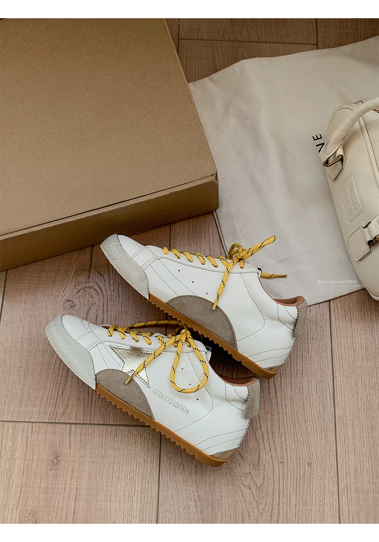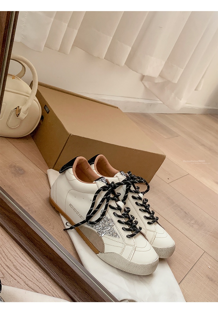 Hong Kong Thick-Soled Genuine Leather Star Shoes for Women 2025 New Versatile Lace-Up Casual Sports Sneakers White Shoes Dirty Shoes