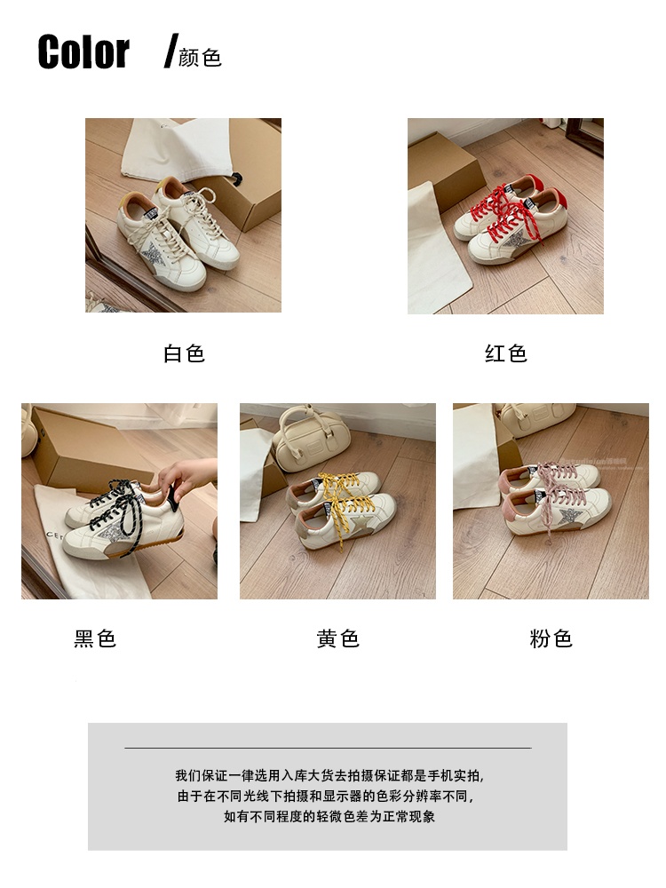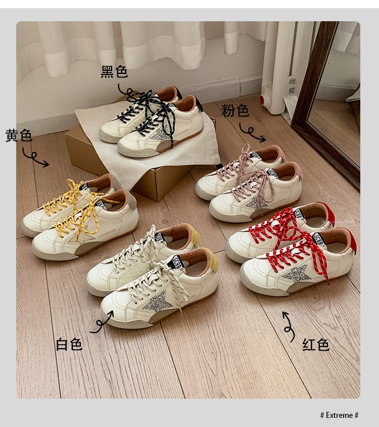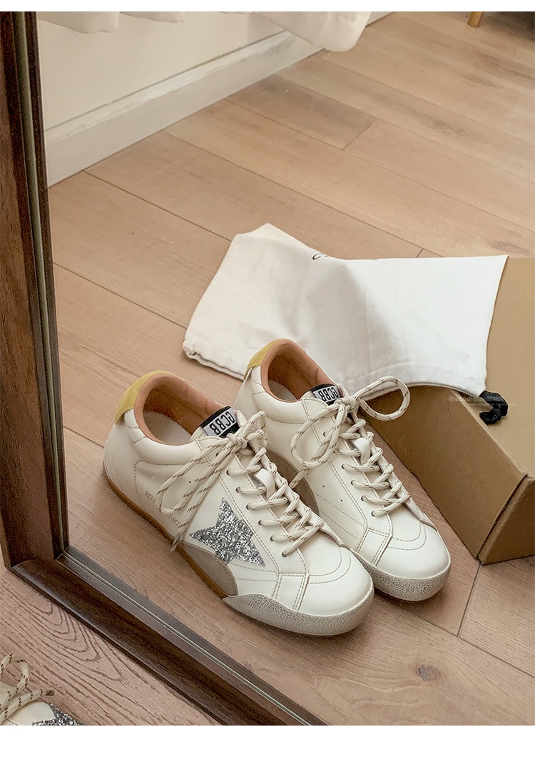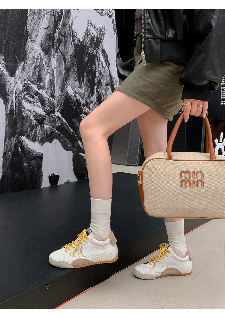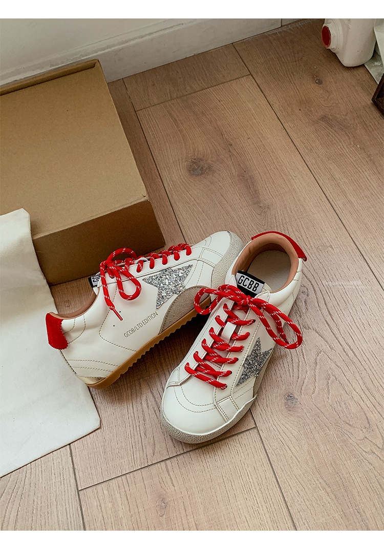 Hong Kong Thick-Soled Genuine Leather Star Shoes for Women 2025 New Versatile Lace-Up Casual Sports Sneakers White Shoes Dirty Shoes