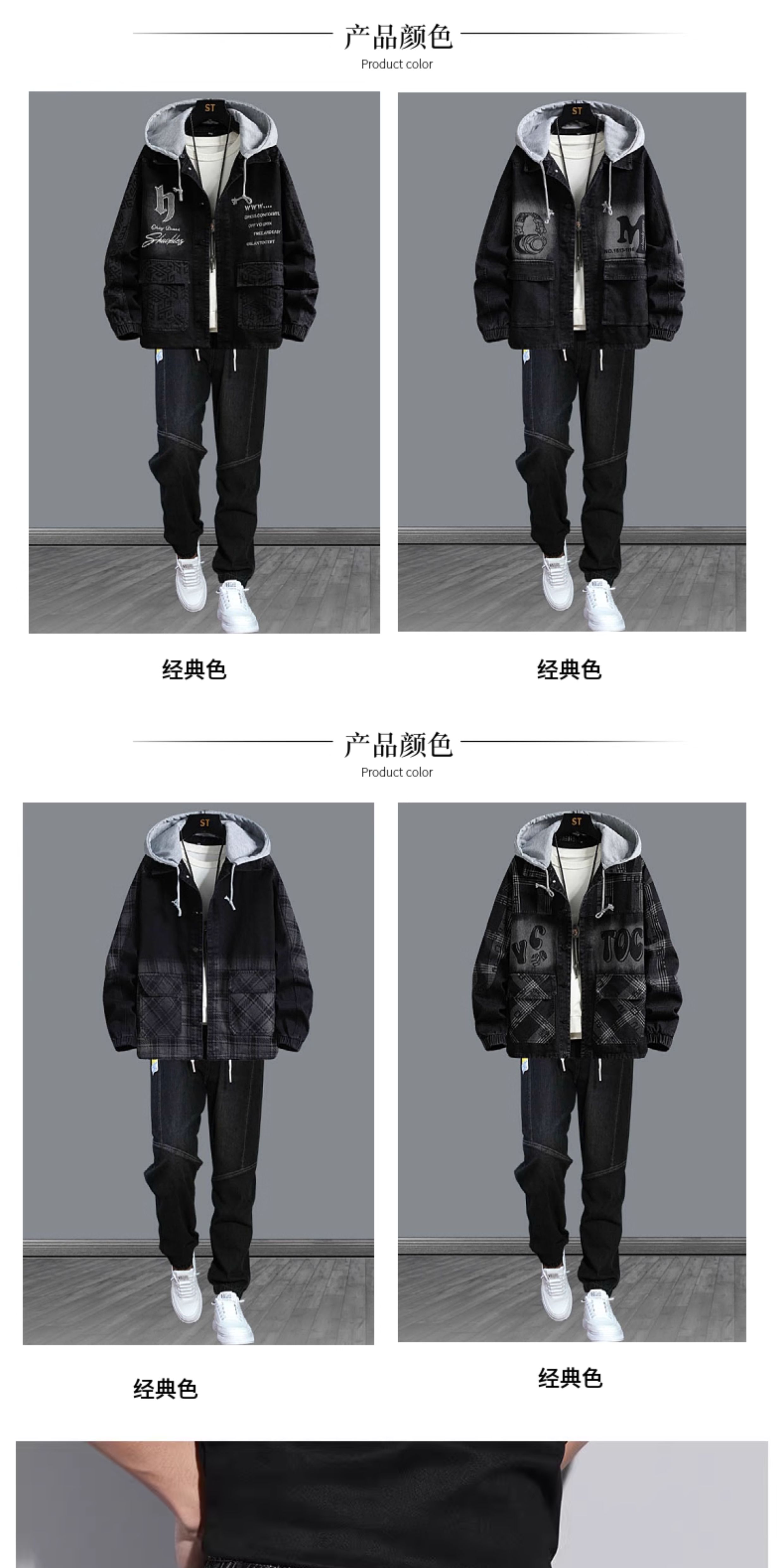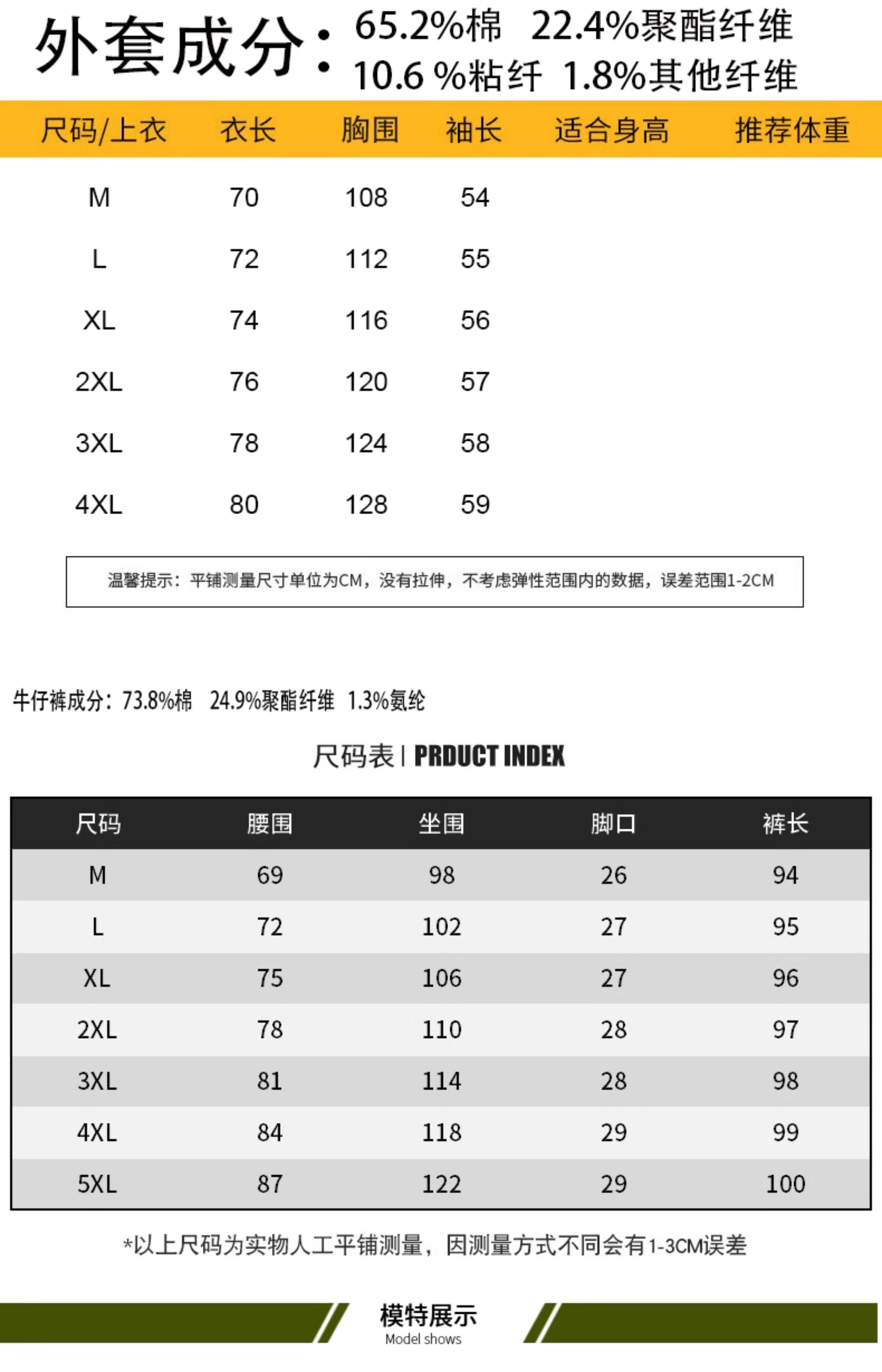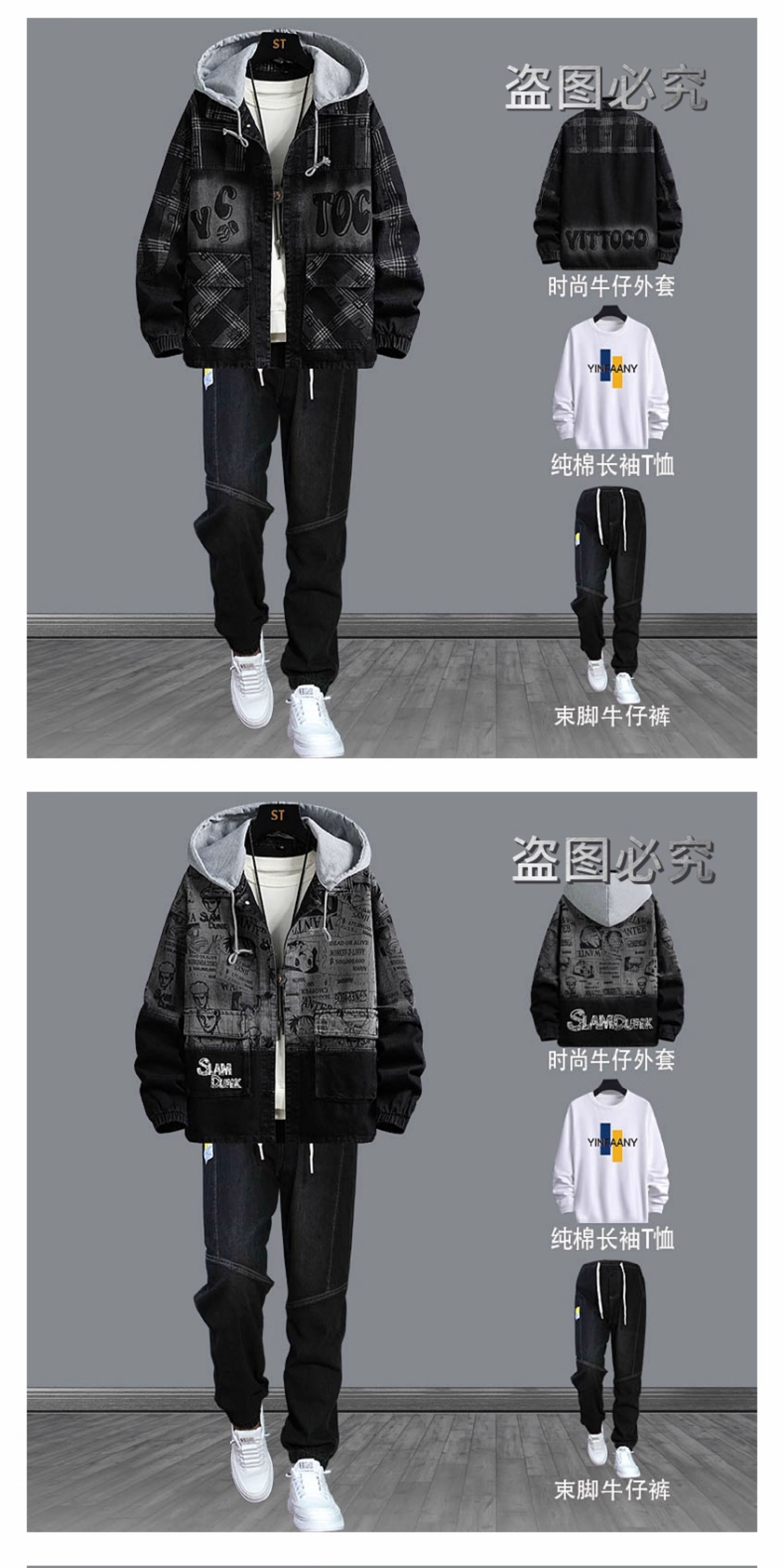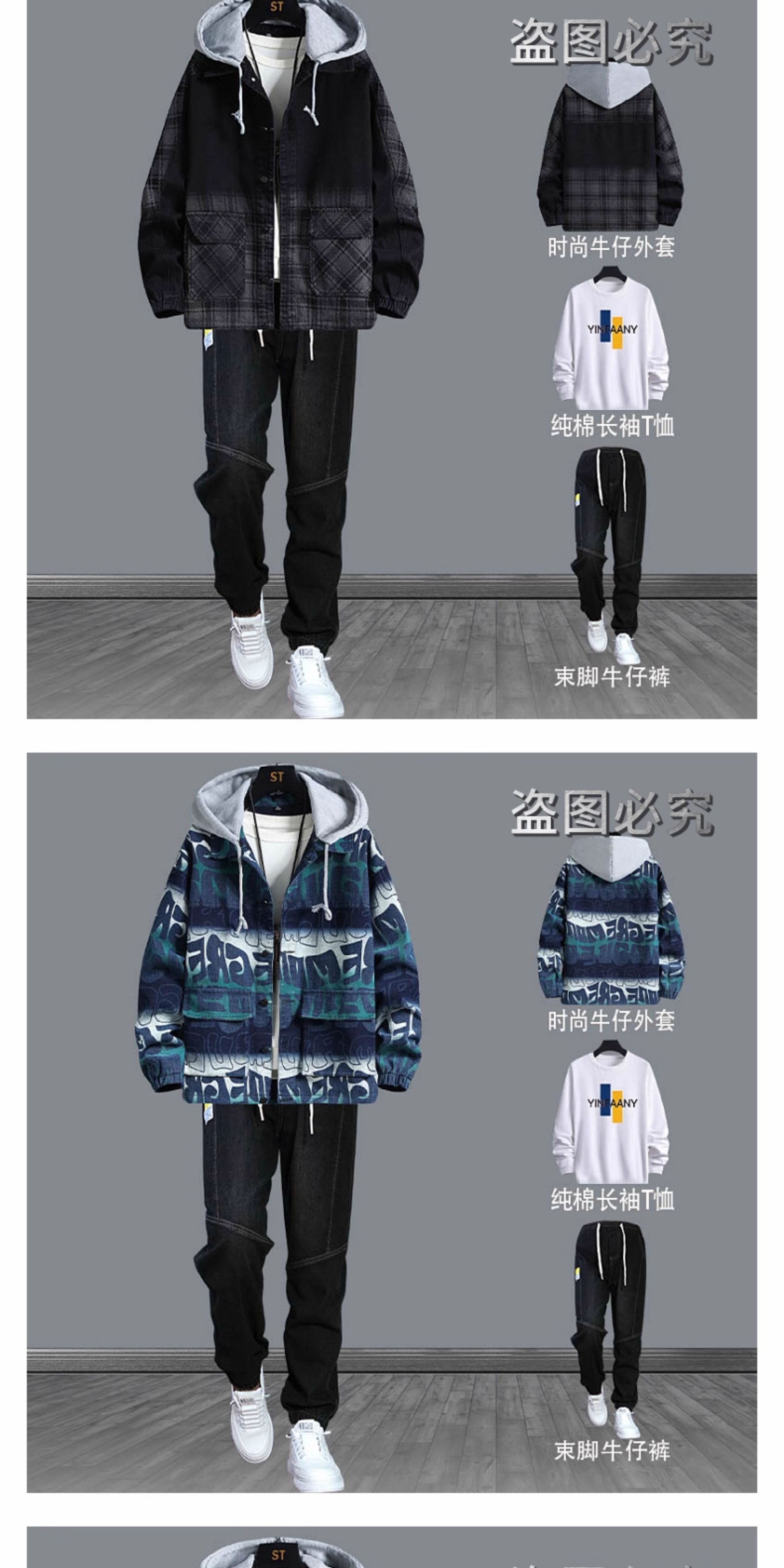 Teenage Denim Outerwear Set for Men, Spring and Autumn 2024 New Trendy Style, High School and Junior High School Students, Fleece-Lined and Thickened for Winter