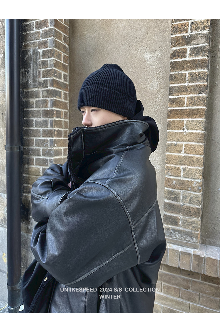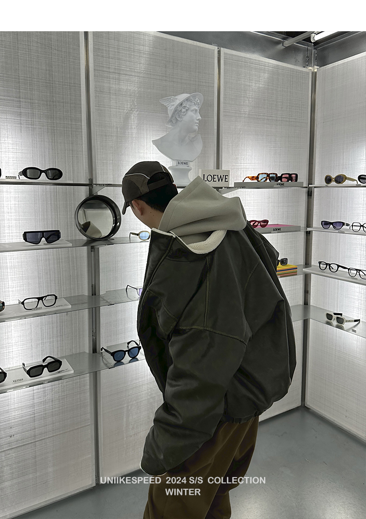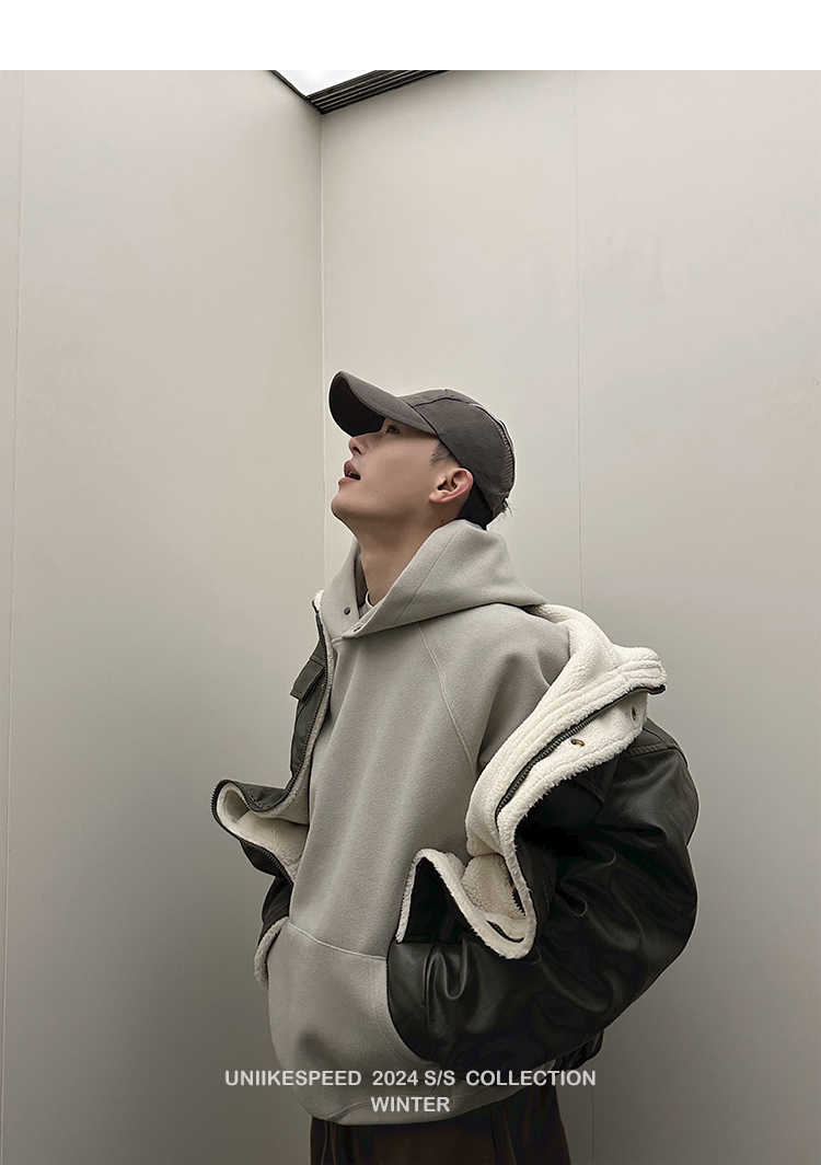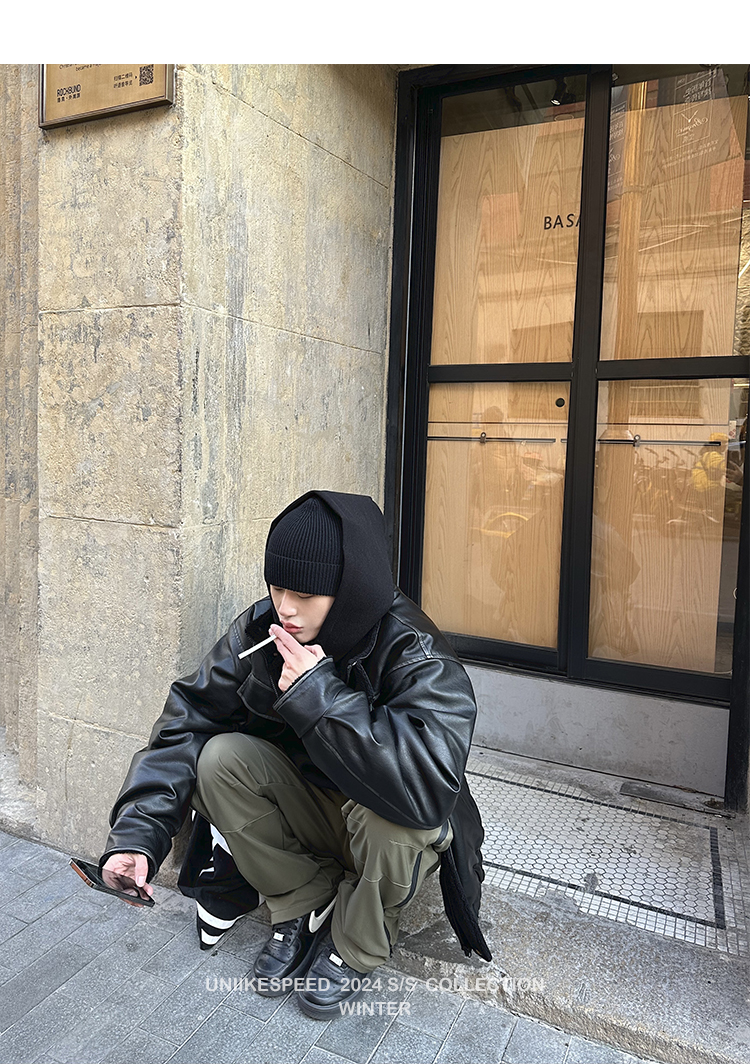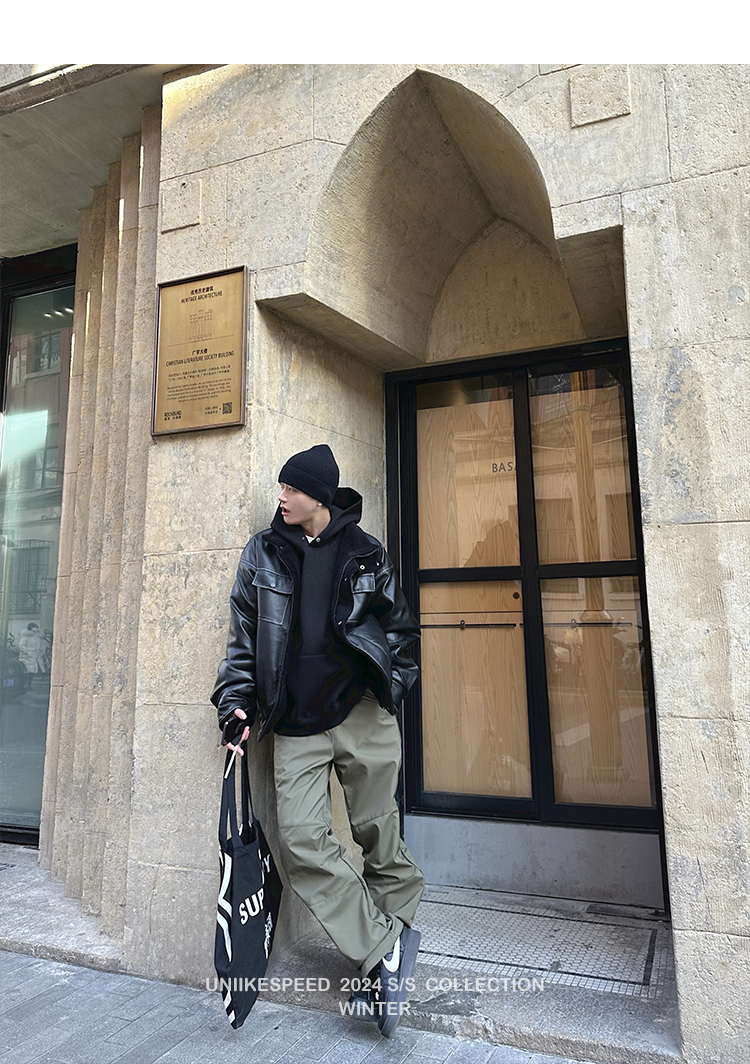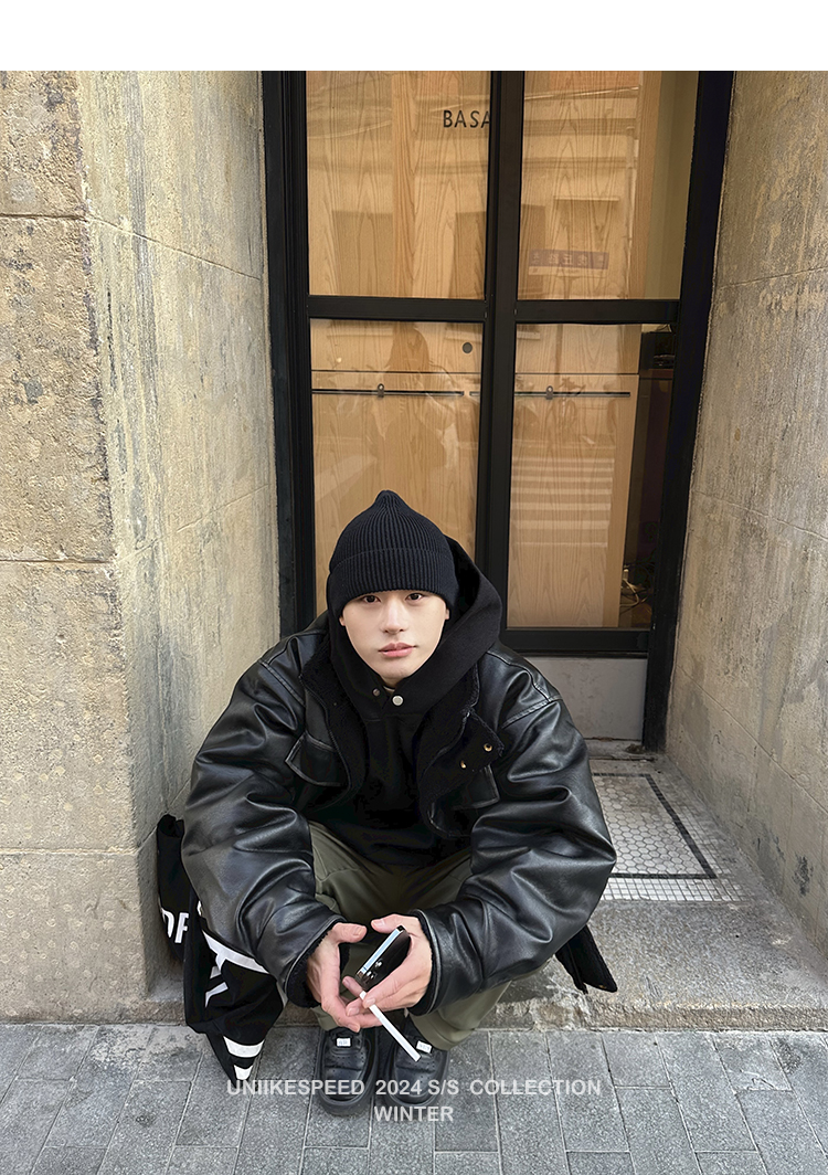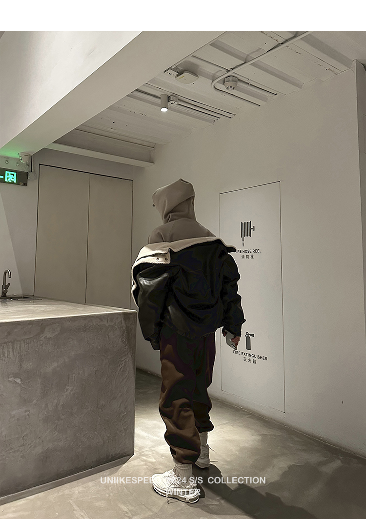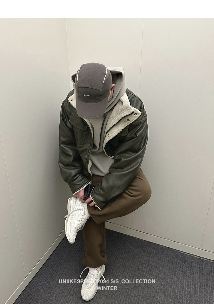 皮质的衣服本身就特别防风,内里全部都是厚实的羊羔毛,足够扎实!