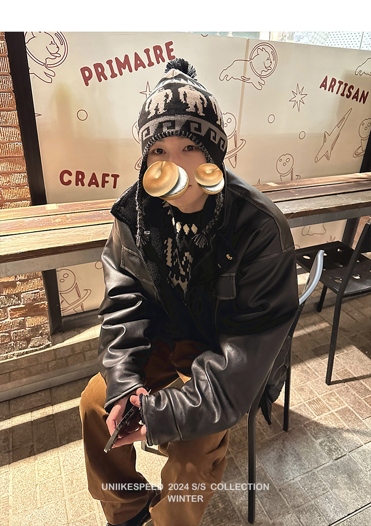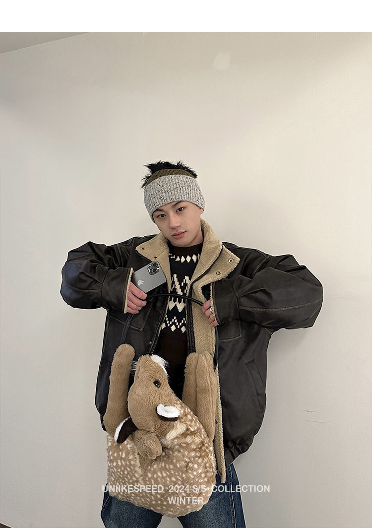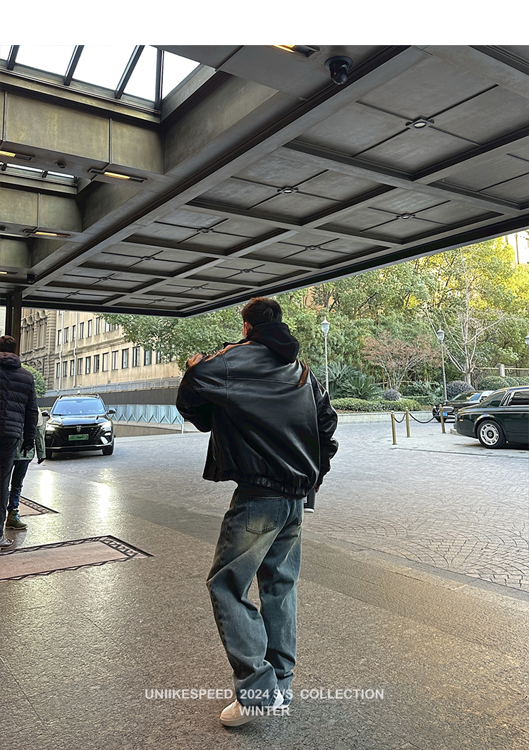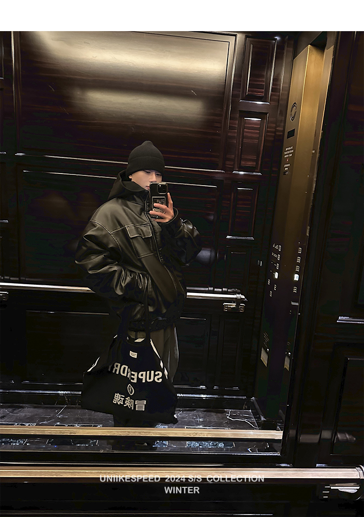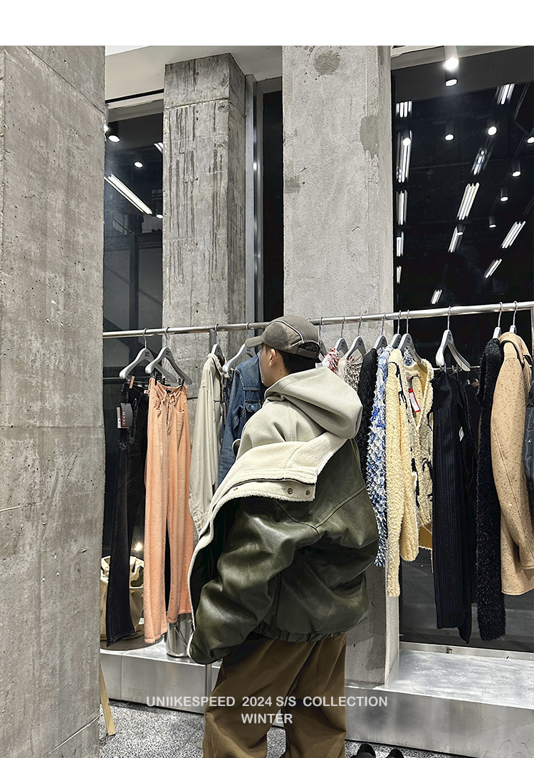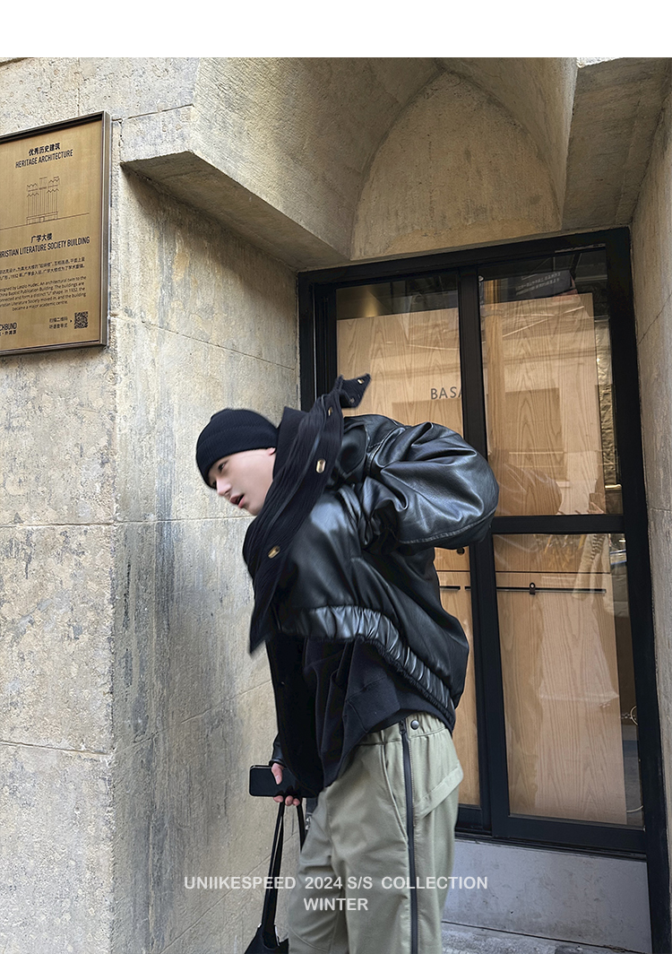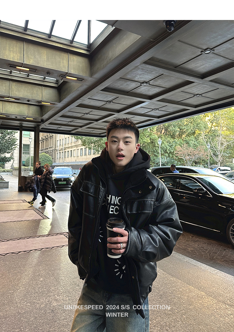 皮质的衣服本身就特别防风,内里全部都是厚实的羊羔毛,足够扎实!