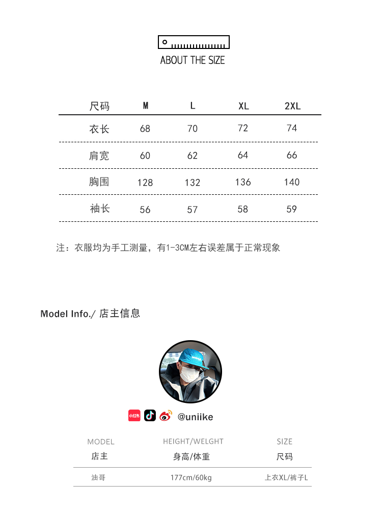 领口可以立起来,可以做到防风到下巴,下摆是有微弹力的,拉起来刚好可以切割身材比列!