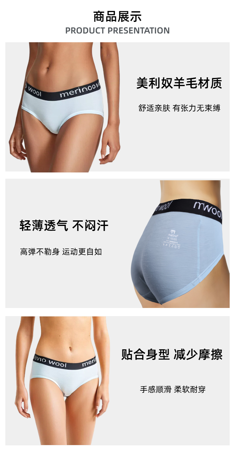 Kovt Outdoor Merino Wool Underwear Women's Mid-Waist Merino Hiking Triangle Quick-Drying Sports Underwear H58
