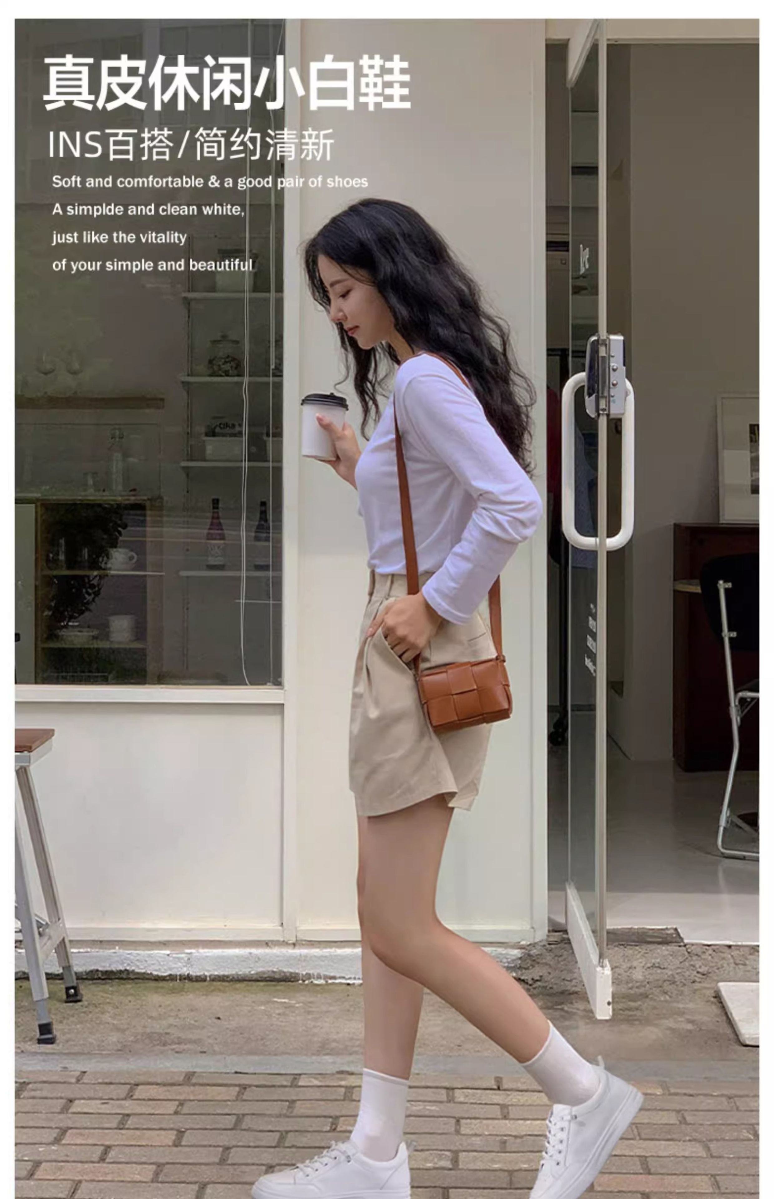 Hong Kong Genuine Leather White Sneakers for Women 2025 Spring/Summer New Versatile Casual Flat Breathable Shoes to Match Skirts Soft Cowhide Sneakers