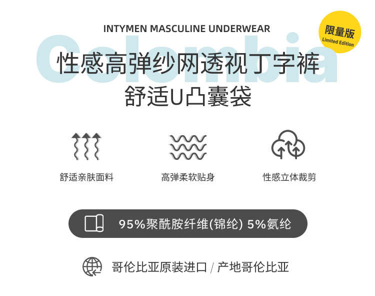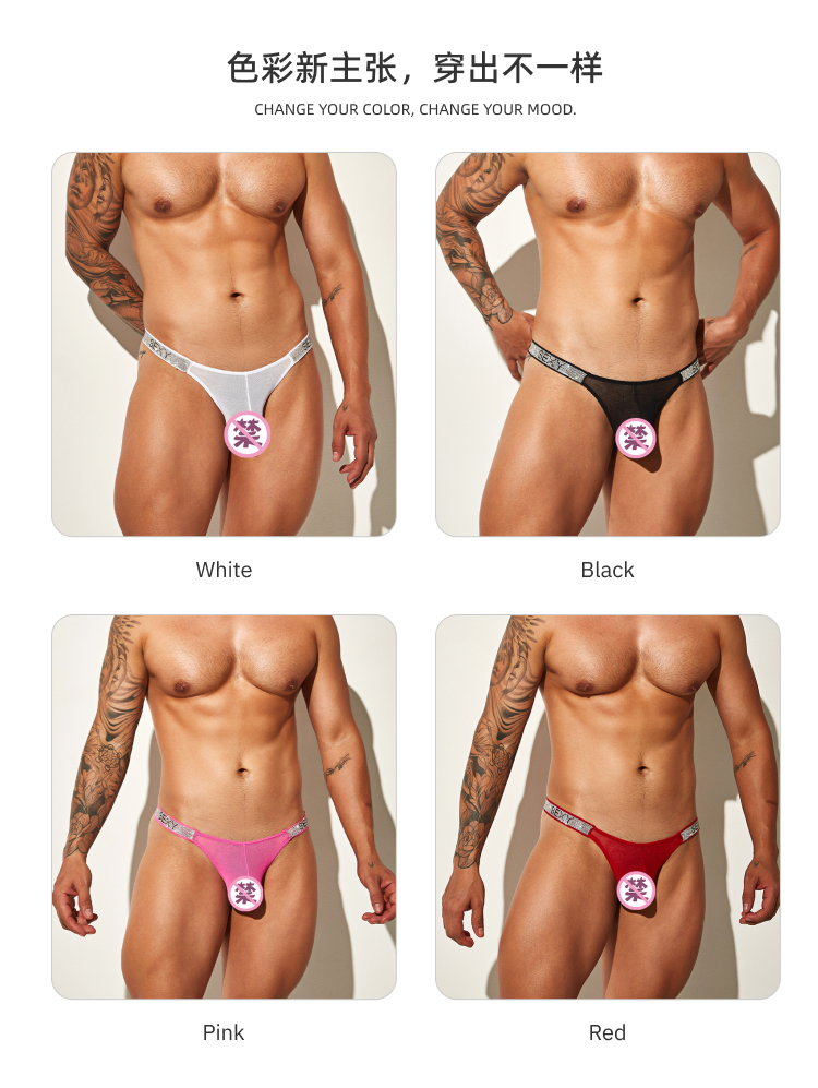 Intymen Sexy Gauze See-Through Men's Thong Single High Elastic Breathable U Convex Large Pouch Low Waist Slk005