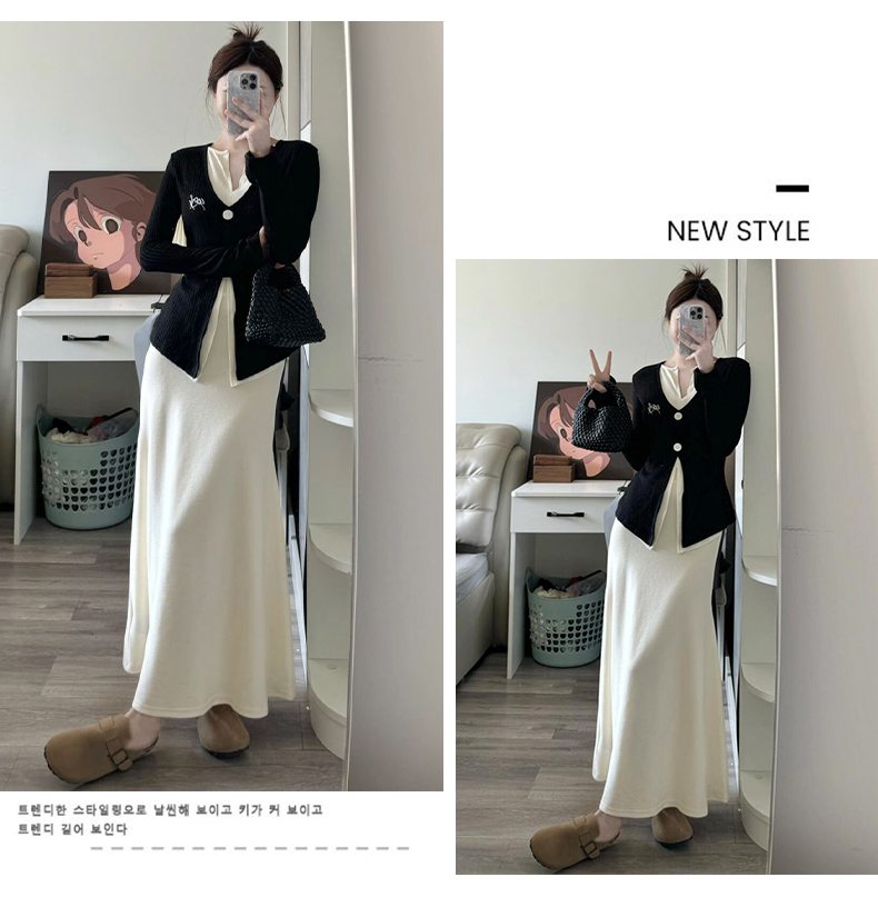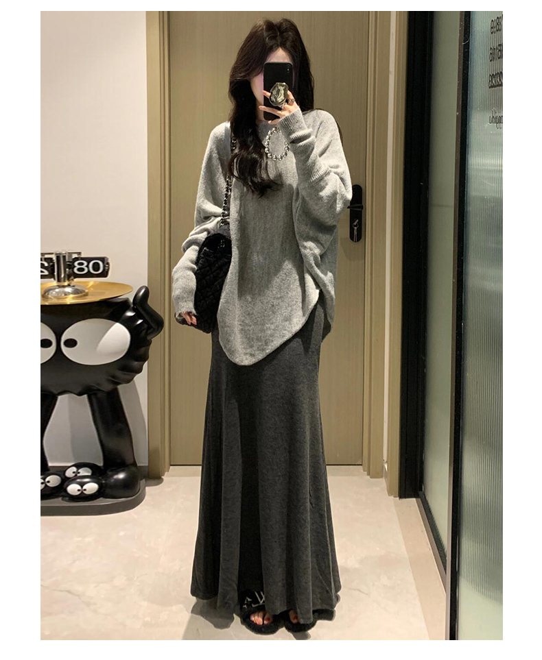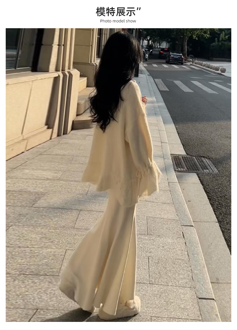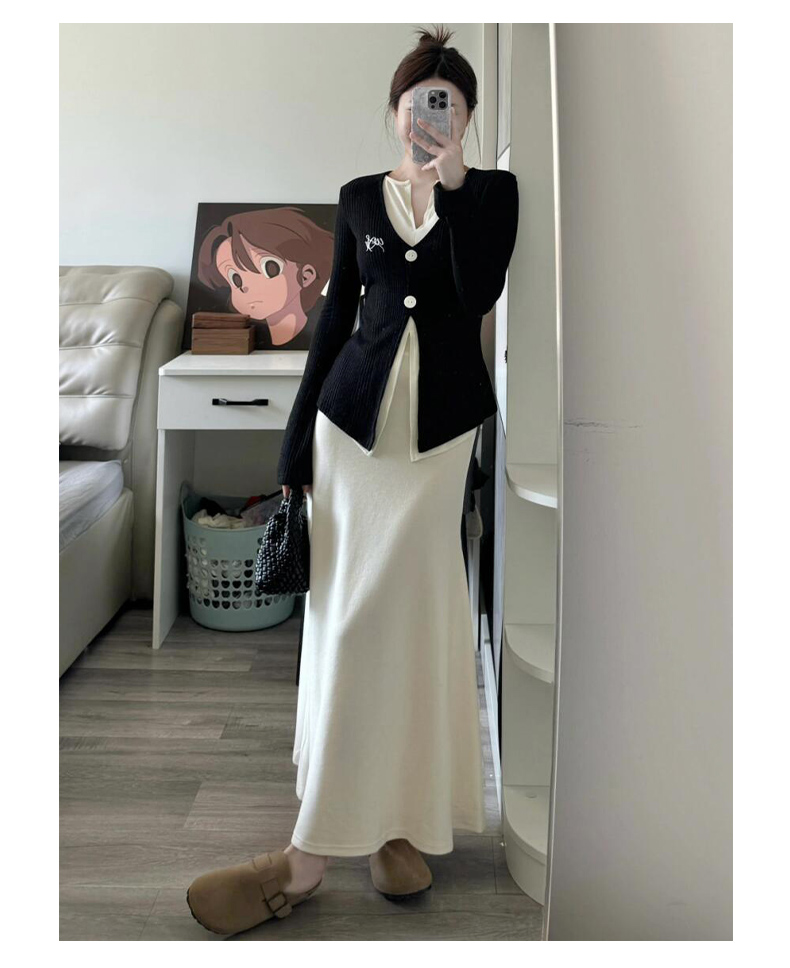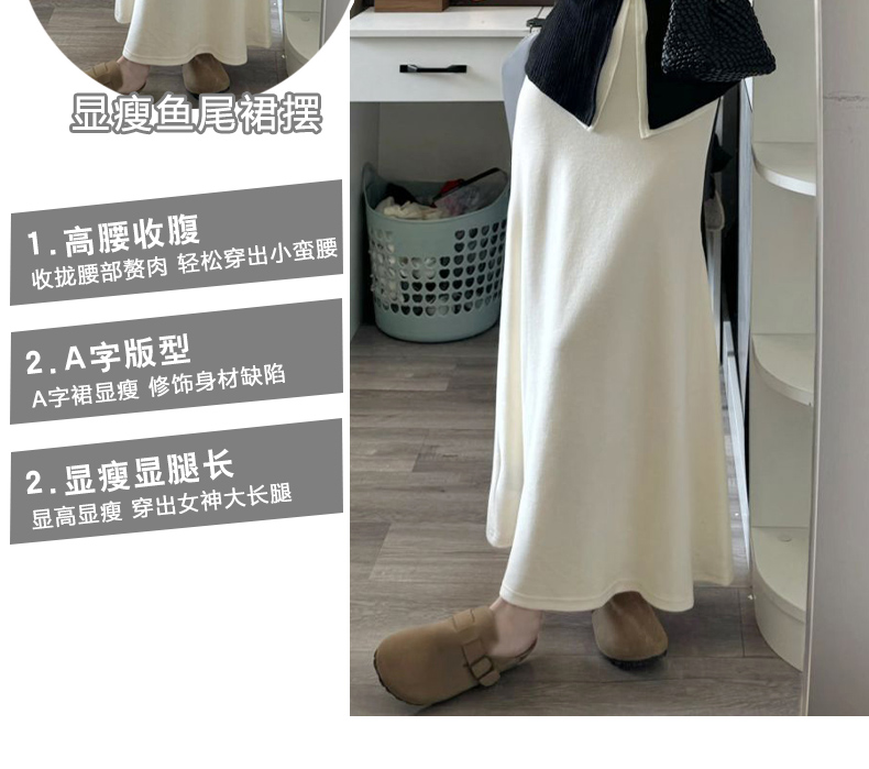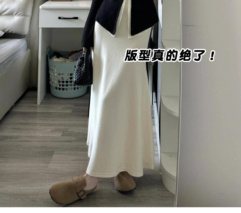 White Fishtail Skirt, Women's Autumn and Winter 2025 New High-Waisted A-Line Woolen Long Skirt, Slimming Knitted Pencil Skirt