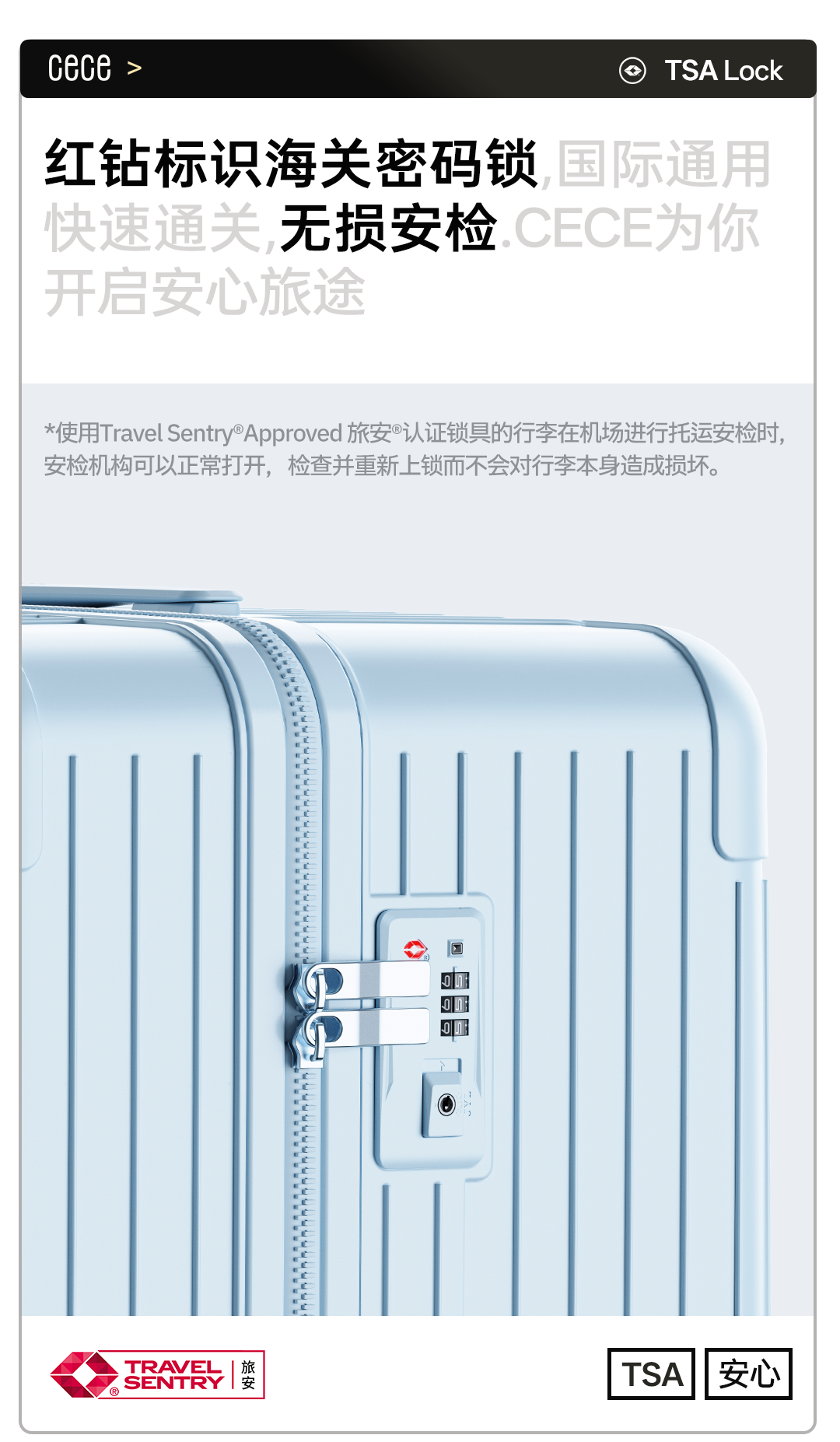 【New Product】Cece Large Capacity Deep Compartment Zipper Suitcase Lightweight, Strong and Durable Travel Trolley Leather Case