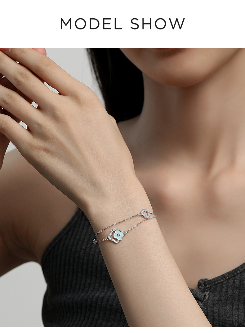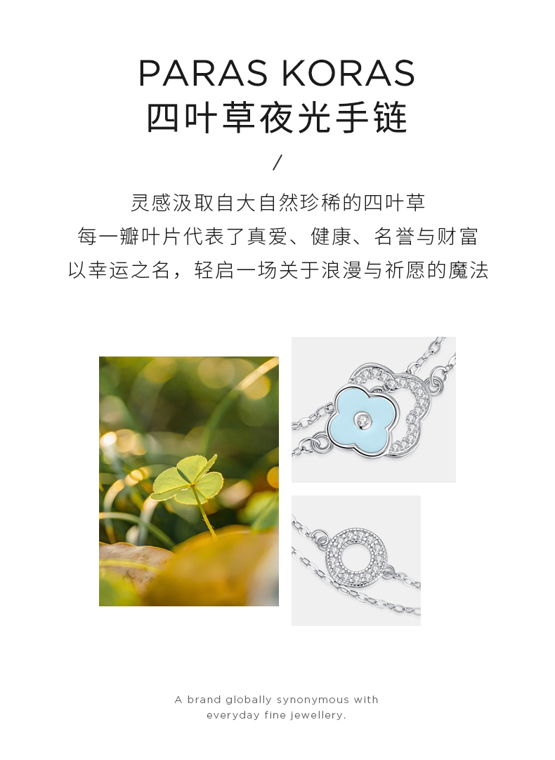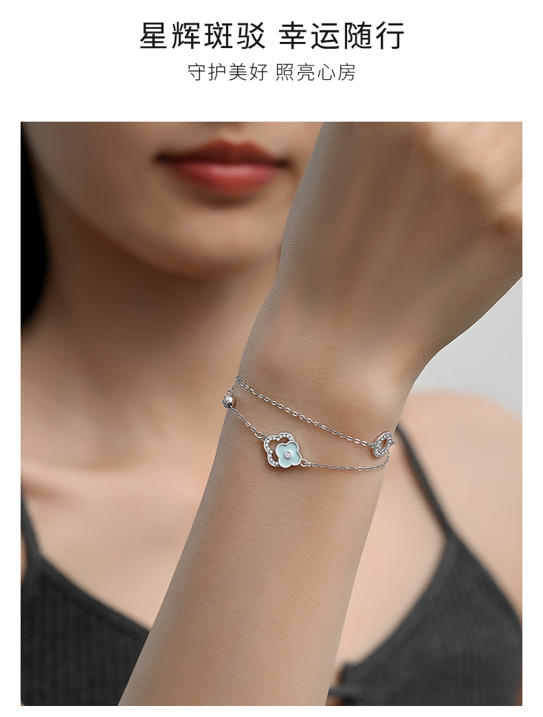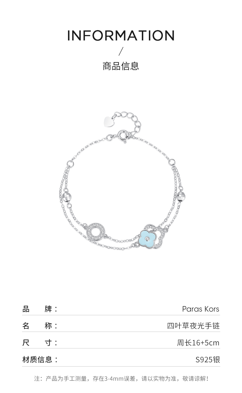 Paraskors Four-Leaf Clover Luminous Bracelet Lucky Light Luxury Niche Pure Silver Birthday Gift for Girlfriend
