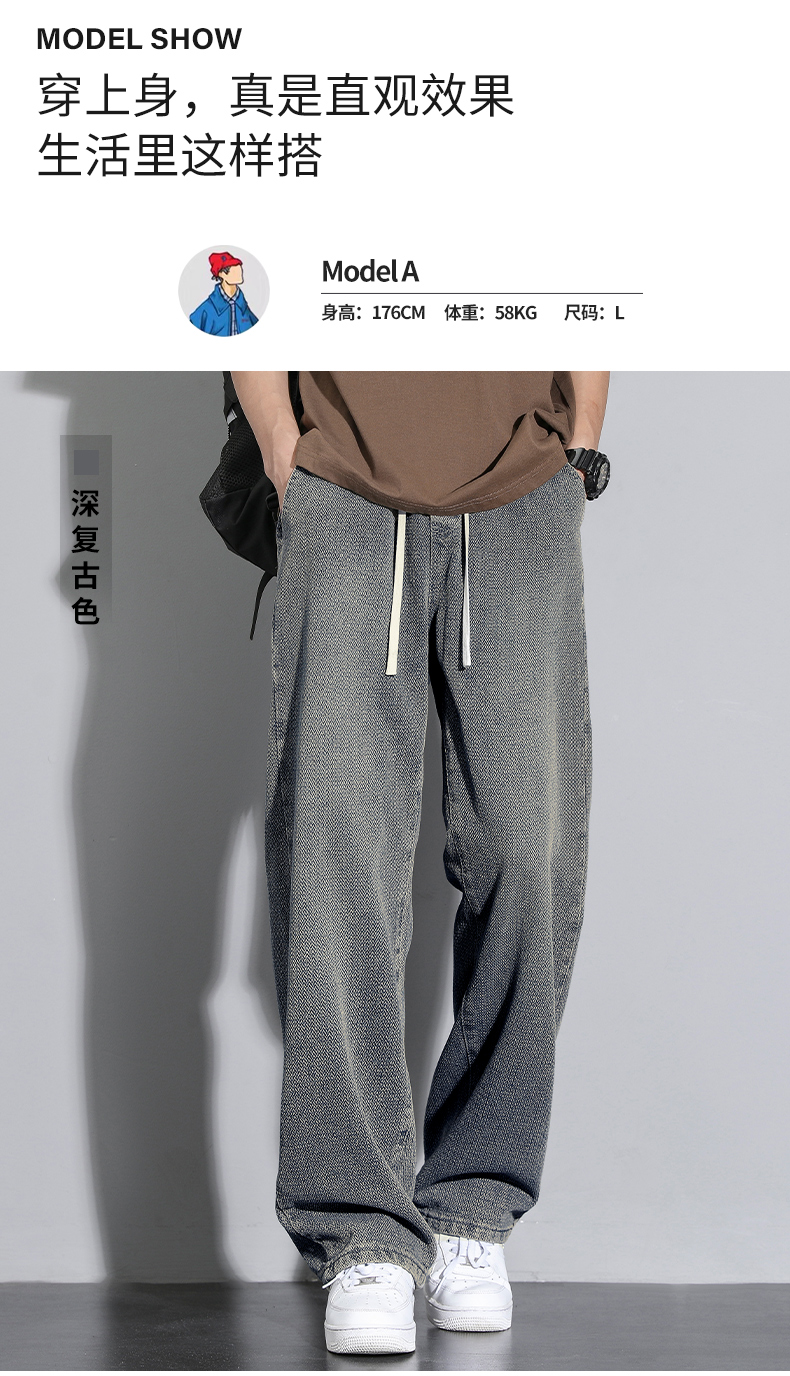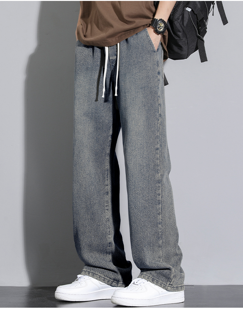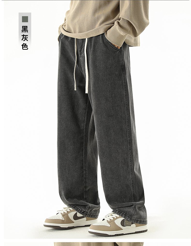 Paulfrank/Big Mouth Monkey Starry Sky Pattern Jeans Men's Autumn and Winter Fleece-Lined New American Style Straight Loose Wide-Leg Pants