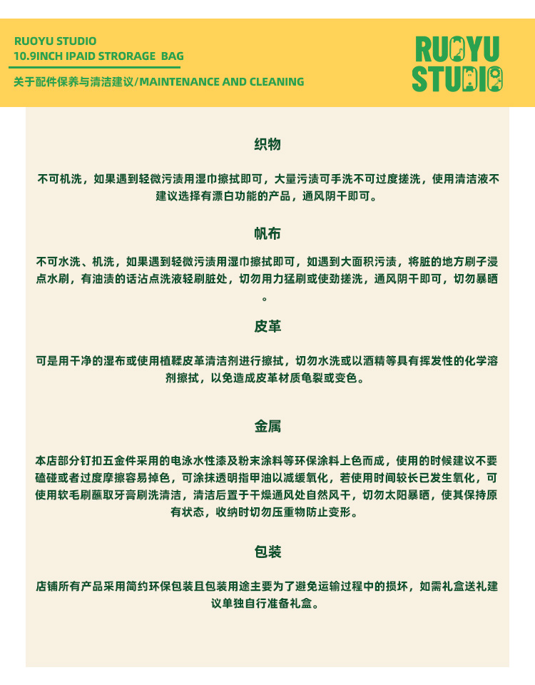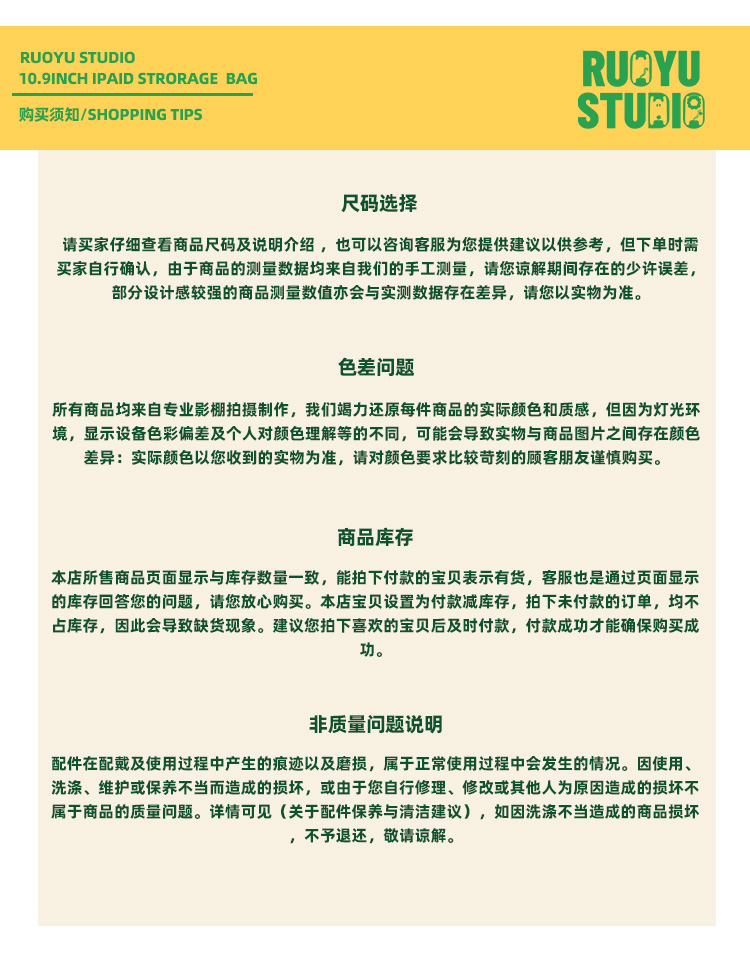 Ruoyustudio Ruoyu Workshop Original Design Storage Bag iPad Large Zipper Bag