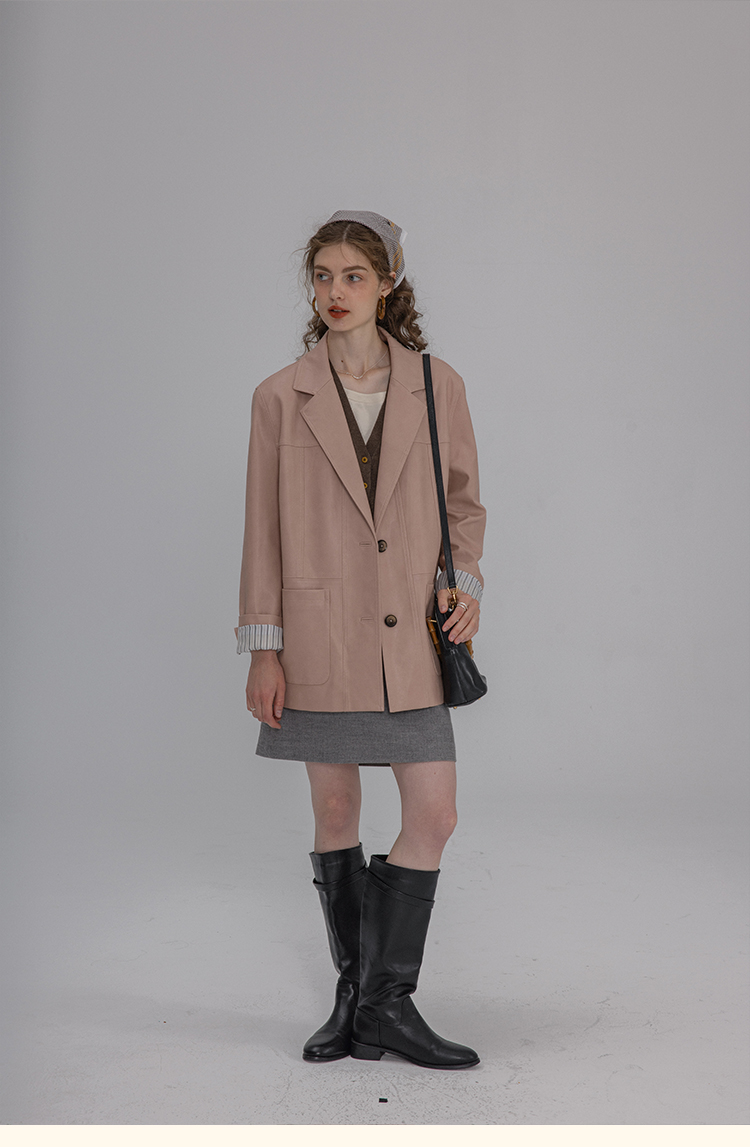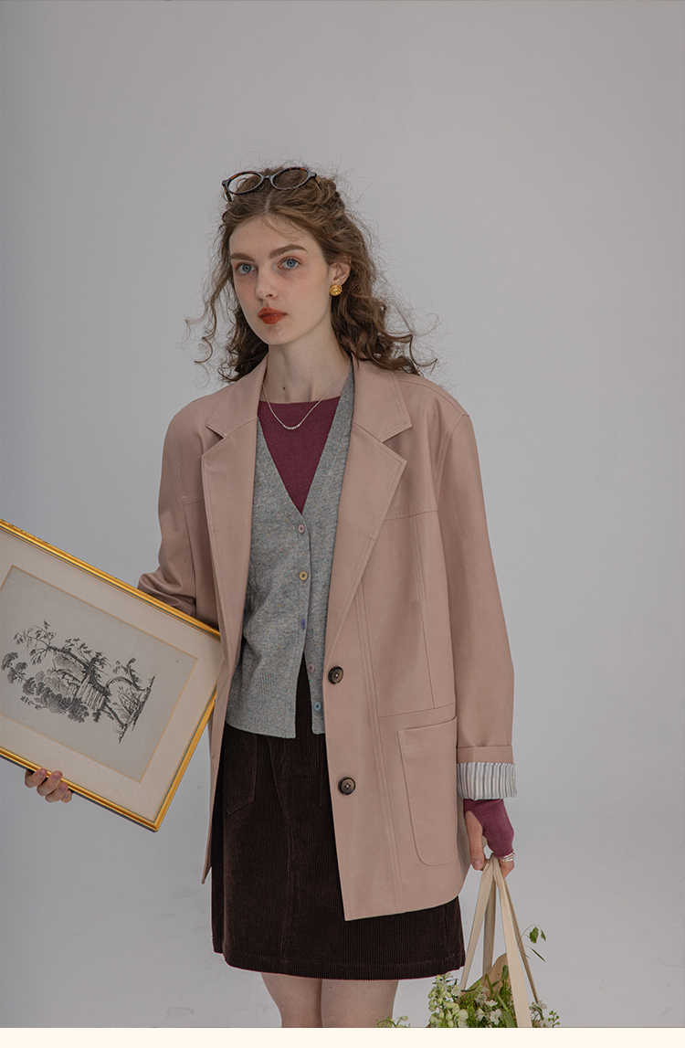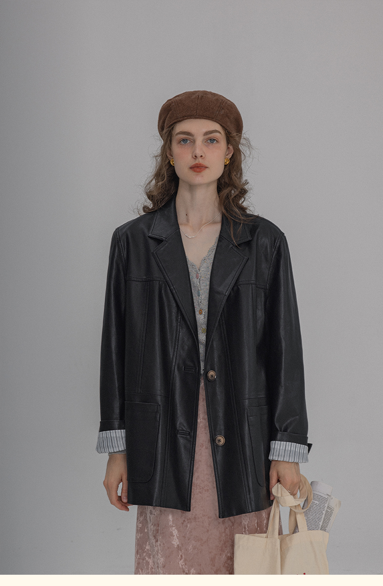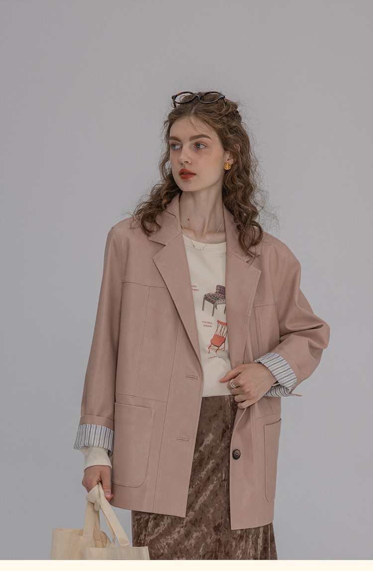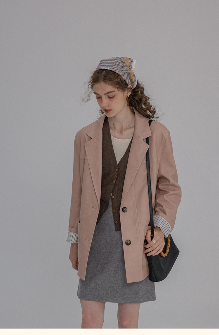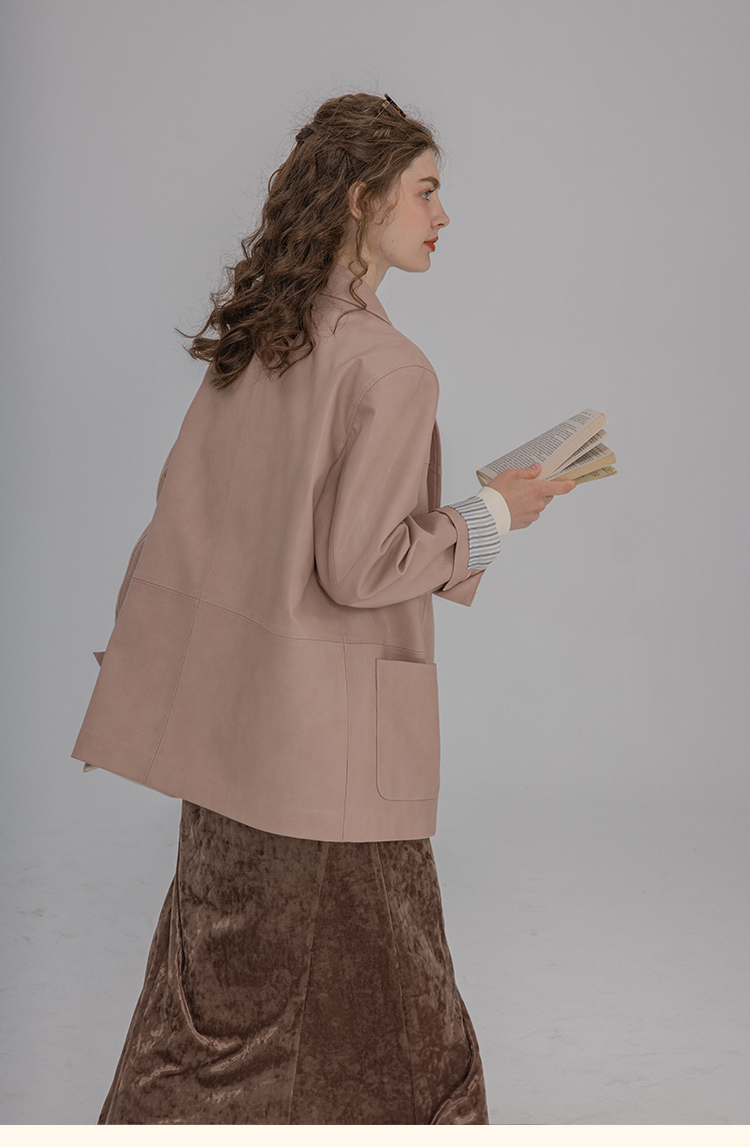 Dailyart “Black Pink-B” Matte Texture Suit Collar Eco-Friendly Leather Jacket